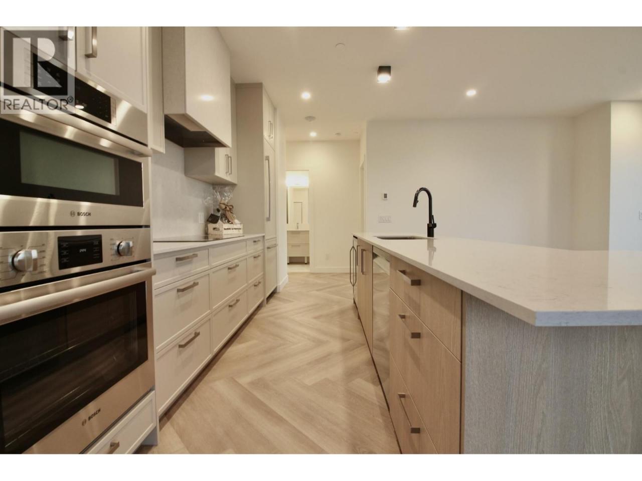 GST Paid. Experience stylish lakeside living in this beautifully appointed 2-bed, 2-bath corner condo in the trendy Movable Building on Lakeshore. Just steps to waterfront parks and all essential amenities, this home features a modern galley kitchen that opens seamlessly to the living and dining areas with a private sundeck. The kitchen comes complete with quartz countertops, undermount sinks, Bosch appliances, a convection cooktop, integrated Fulgor Milano fridge with matching door, and built-in wine fridge. The spacious primary suite offers a private deck with water views, a walk-in closet, and a luxurious 4-piece ensuite with dual sinks. The home is 1,049 sq. ft. of living space with the favourable California floor plan offering bedrooms at both ends. Additional highlights include two parking stalls (one oversized) and a secure storage locker. A perfect blend of comfort, convenience, and contemporary design—don’t miss this one! (id:6769)