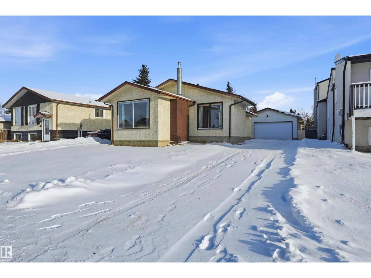 Great location and opportunity in Pollard Meadows with TWO KITCHENS and a SEPARATE ENTRANCE! Upstairs find a sunken living room with soaring windows, sizeable dining room and kitchen with ample space. 3 bedrooms upstairs with 4pc washroom & 2pc ensuite. Downstairs (side entrance) find a second kitchen, large living area with fireplace/feature wall, 2 bedrooms, den & full bathroom. Extra storage in utility room with washer and dryer. Updates include newer shingles (late 2022), most windows updated & new springs on garage door. Spacious backyard with mature trees, patio and garden bed to enjoy the warmer months. Plus massive garage offers plenty of extra storage and workspace. Oversized driveway for additional parking (or RV). Central vac roughed in too. Quick access to Anthony Henday, Millwoods Towne Center/transit, Gray Nuns Hospital, Millwoods Recreation Center, parks, schools and more. (id:6769)