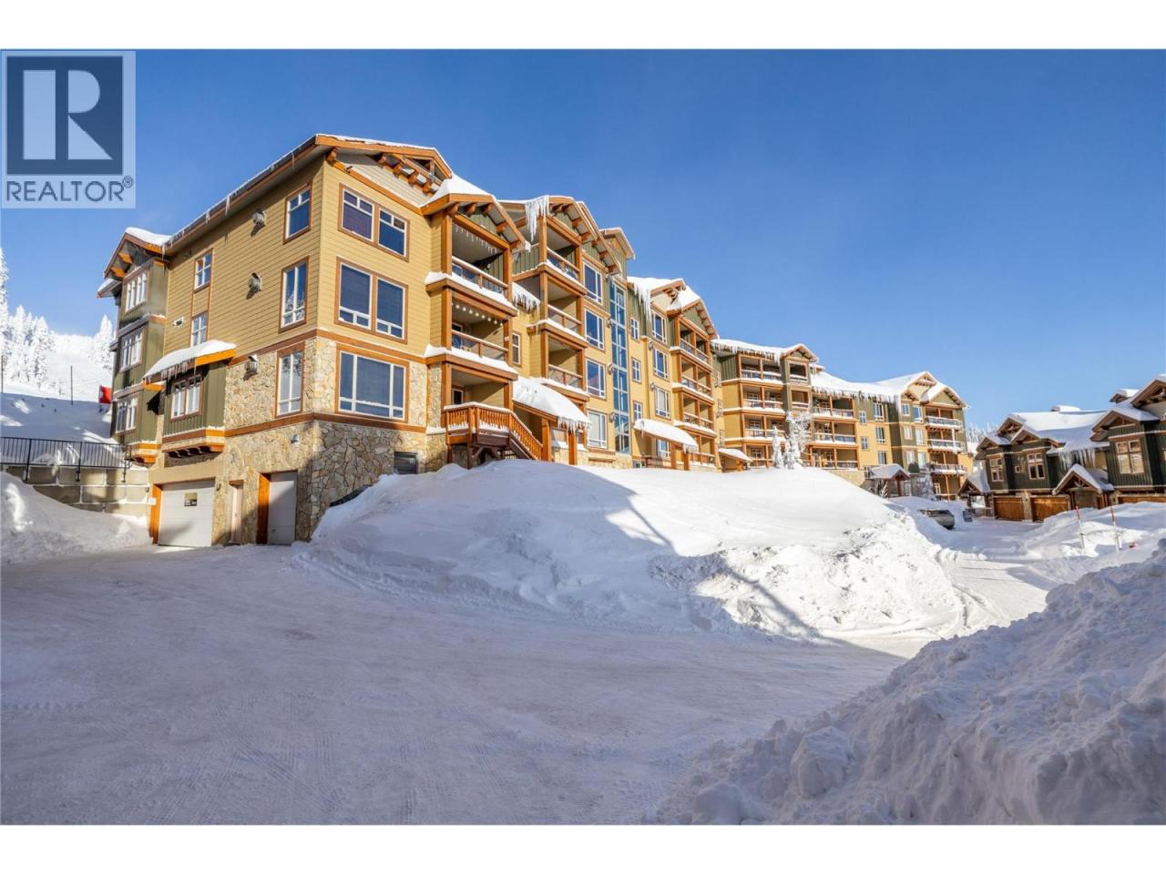 This beautifully appointed three bedroom, two bathroom condo boasts twelve foot ceilings and is fully furnished with exquisite furniture and decor, creating a cozy and inviting mountain retreat. Turn-key and year to go for this winter season. Located directly on the ""Sun Run"" with unbeatable ski access to four major chairlifts. Relax on your covered deck with a private hot tub overlooking the slopes, offering the perfect spot to unwind after a day on the mountain. Additional features include underground parking, making it easy to arrive and hit the slopes, in-unit laundry for added convenience, hardwood, granite, stainless appliances, maple cabinetry, beverage center with fridge, wine storage behind a custom iron gate, heated slate flooring in entryway and both bathrooms. GST paid and this unit has never been rented, it shows like new! Well run strata with full time building manager year round. Don’t miss this opportunity to own a piece of Big White’s finest ski-in/ski-out real estate! With direct flights from cities like Los Angeles, Toronto, and Montreal, and just an hour from Kelowna International Airport, Big White is more accessible than ever. Known for some of the best snow in North America, this resort offers a winter wonderland experience. Best of all, this property is fully exempt from the Foreign Buyer Ban, Foreign Buyers Tax, Speculation Tax, Empty Home Tax, and Short-Term Rental Ban, providing a rare opportunity for international buyers. LIVE WHERE YOU PLAY! (id:6769)