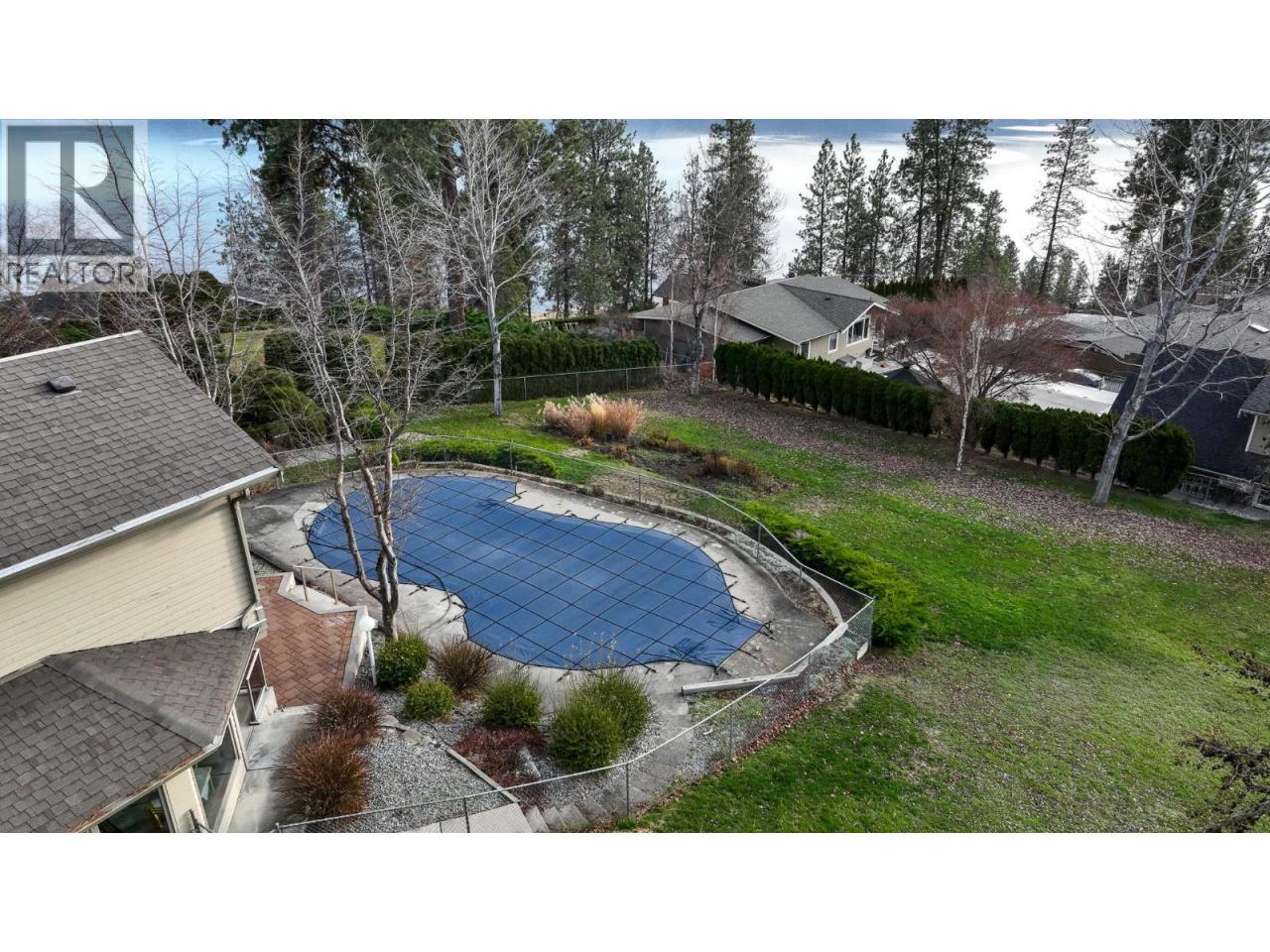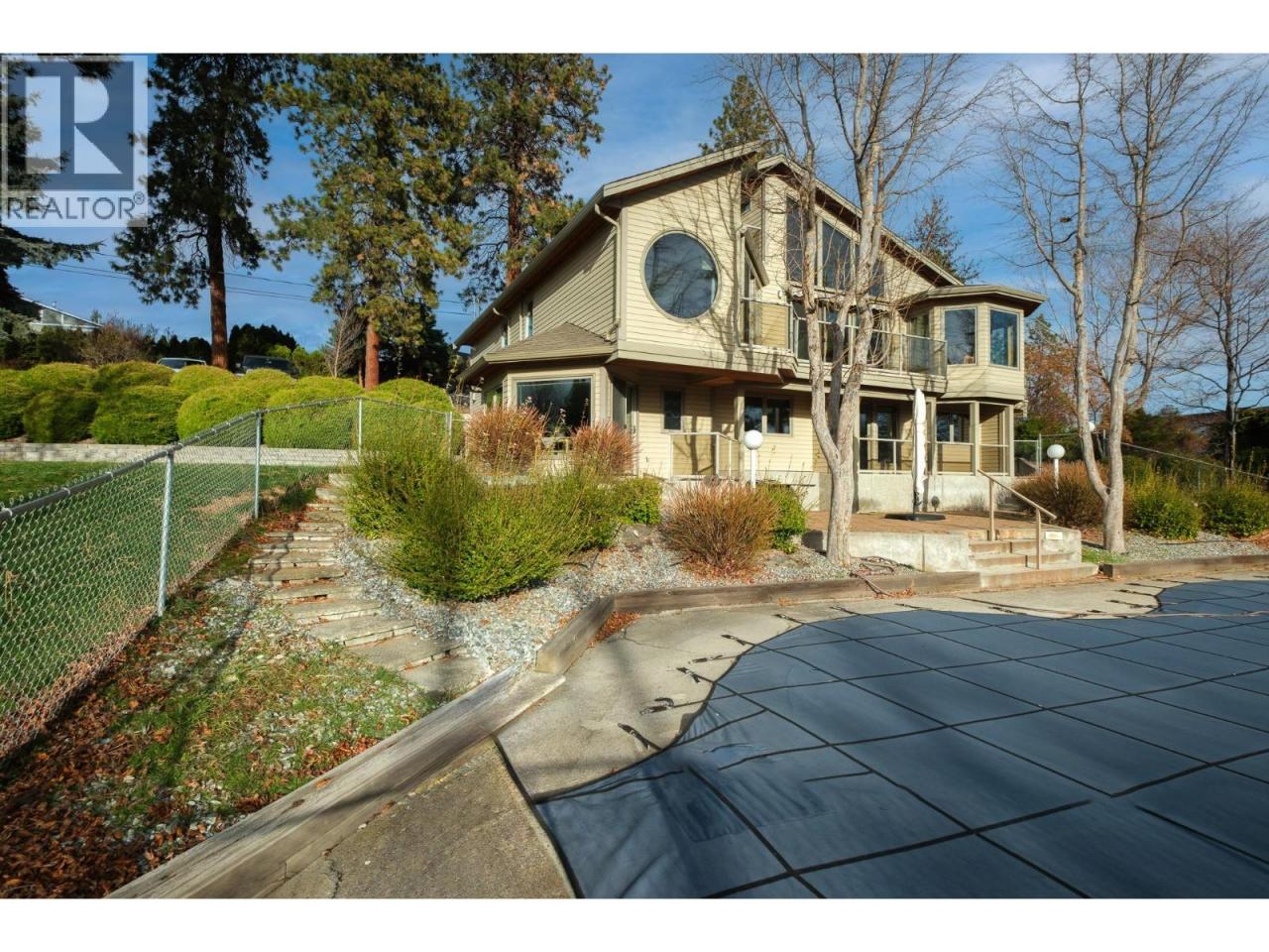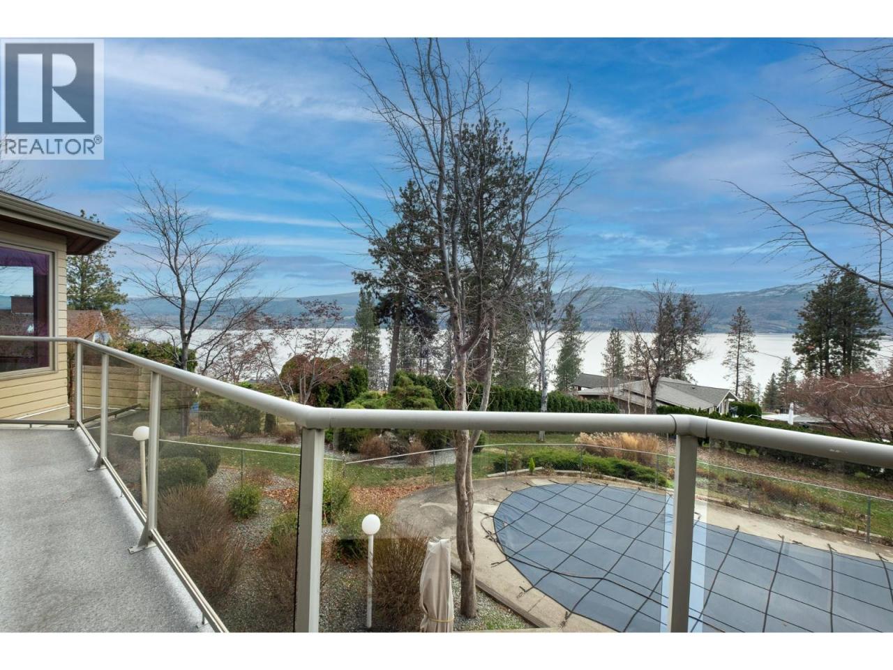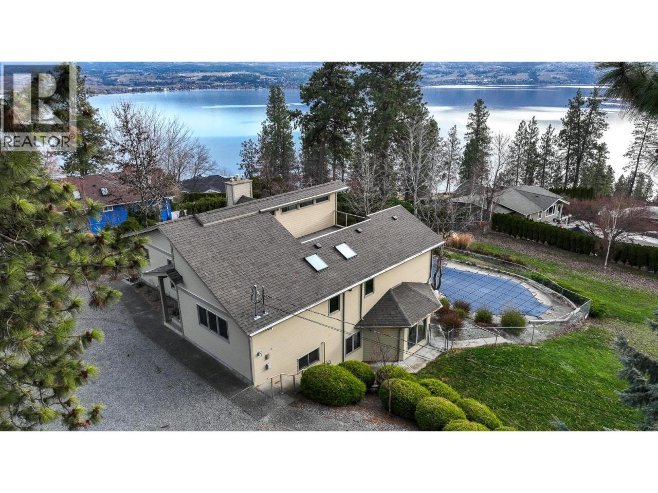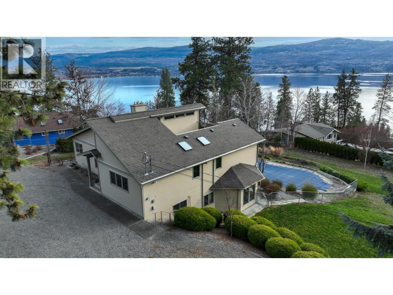 Tucked into a quiet cul-de-sac in the highly sought-after neighbourhood of Lakeview Heights just off the Westside Wine Trail, this exceptional West Coast-style residence offers sweeping lake views and sits on a rare .99 acre, private, resort-style property. A tranquil, serene family retreat or entertainer's dream, the over 3000 residence, flooded with natural light, features 2 main floor bedrooms and a bright loft office/play area above the open living space. Lower level is ready to rent out as a legal one-bedroom suite and as a bonus, a separate nanny suite in addition, providing flexible living options for extended family, summer house guests or additional rental income. Thoughtfully designed with comfort and functionality in mind, the home seamlessly blends spacious and comfortable indoor and outdoor living. Outside, this property truly shines. Enjoy summers gazing at the lake from the large, meticulously maintained, fenced yard with in-ground swimming pool. Mature landscaping includes six fruit trees, adding charm and nature's bounty to this serene setting. An oversized double garage with workshop offers ample space for vehicles, storage, and hobbies-made even more special with a complimentary lake view from the shop. Hurry and view this rare opportunity to secure a private, lakeview acreage in one of West Kelowna's most desirable neighbourhoods. This ""Unicorn"" property features both lifestyle & appeal today, combined with intriguing future potential to add density. (id:6769)