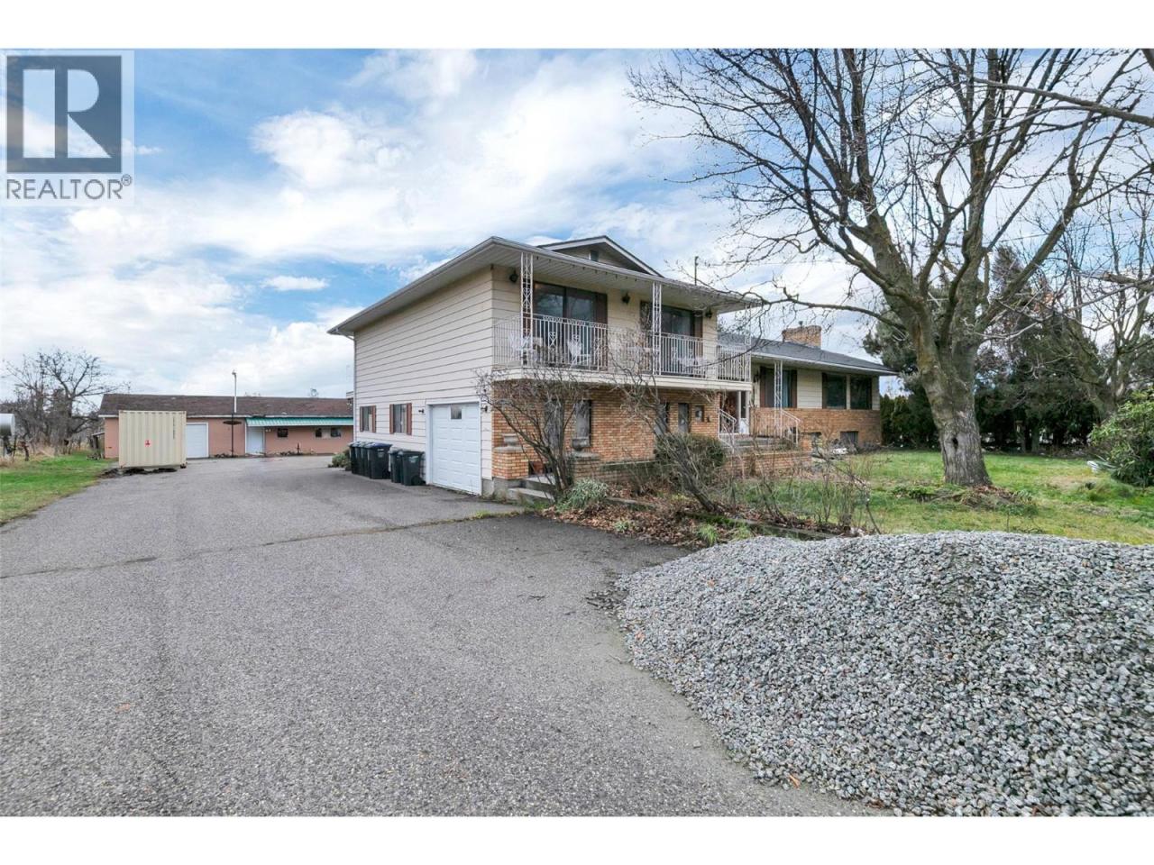 Set on 8.9 acres of flat, usable land in the desirable Smith Creek area of West Kelowna, this rare ALR-zoned property offers a unique opportunity for multigenerational living or a hobby farm lifestyle just minutes from town. The original 1977-built home is solid and well maintained, offering approximately 2,800 sq ft with 6 bedrooms and 4 bathrooms, providing ample space for extended family or flexible living arrangements. A standout feature of the home is the integrated indoor pool, surrounded by windows that flood the space with natural light and create a year-round recreational retreat. The pool is currently drained, offering a blank slate for the next owner to restore or reimagine the space to suit their needs. The land is thoughtfully laid out and fully usable, featuring an established apple orchard with irrigation, ideal for those looking to maintain an agricultural lifestyle. A1 zoning within the ALR supports a wide range of agricultural uses, while the property’s dual driveway access enhances functionality and ease of access. Multiple outbuildings, including a shop, storage, and garages, provide excellent space for equipment, vehicles, hobbies, or farm operations. The property is serviced by municipal water with a septic sewer system. Offering space and versatility, with a subtle mountain outlook and close proximity to schools, shopping, and amenities, this is a rare opportunity to secure a substantial acreage in one of WK’s most sought-after rural areas. (id:6769)