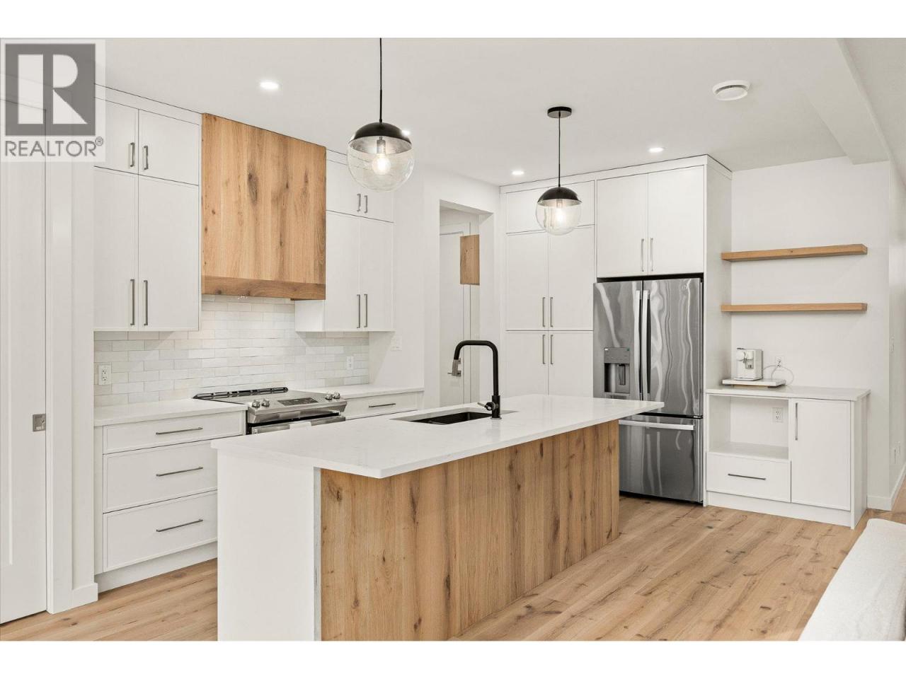 Welcome to this beautifully crafted brand-new home in The Orchards, one of Kelowna’s most beloved new family communities. The backyard extends beyond the fence line into a protected natural area, creating a quiet, private backdrop where kids can play & evenings feel calm & connected to nature. Just steps from DeHart Park & close to elementary, middle & high schools, as well as the Shops at The Ponds, this is a location designed for an easy, family-focused lifestyle. Inside, the main level is bright & welcoming with an open-concept living, dining & kitchen space made for gathering. A classic palette of warm wood tones, crisp white cabinetry, black accents & stainless-steel appliances feels timeless & inviting. Hardwood flooring flows throughout, complemented by striking tile backsplashes in the kitchen & in every bathroom. A practical mudroom with storage off the double garage & a spacious main-floor laundry—ideal for extra pantry space—add thoughtful everyday functionality. Upstairs, you’ll find three bedrooms plus a loft-style family area, perfect for movie nights or homework time. The primary suite is a true retreat, featuring dual vanities, a luxury walk-in shower & his-and-hers closets. The unfinished lower level invites your vision—create a legal one-bedroom suite, guest space, gym, office, or family room. With a separate side entrance and plumbing & wiring already in place, the builder can customize the space to suit your lifestyle for an additional cost. Come & look! (id:6769)