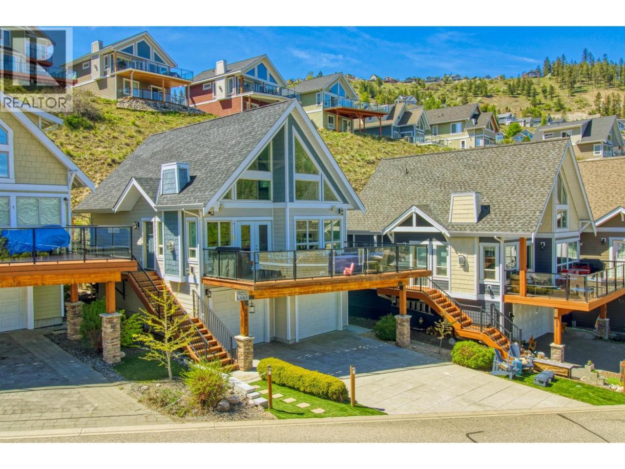 Beautifully presented La Casa Cottage CLOSE TO LAKE & Marina with LARGE DECKS front & rear, LAKE VIEW from front deck & living/dining area. SHORT TERM RENTALS ALLOWED, offered Fully Furnished & Turnkey ready for you or your guests. High Quality finishes & Appliances throughout. Lots of space to relax with 3 Bedrooms plus Den plus Finished Basement Rec room. Large PRIVATE REAR DECK to catch or escape the Okanagan Sun depending on the time of day, accessed from both Main floor bedrooms & walk around from entry landing . Garage/basement Rec Room accessed inside from Main floor. Easy care grounds with concrete driveway & synthetic lawn. Easy Short Walk or golf cart ride to the beach & marina. La Casa Resort is Freehold ownership, open YEAR-ROUND for you or VACATION RENTAL guests to enjoy (La Casa is unaffected by recent Air bnb restrictions). You choose whether to keep for yourself, rent out some of the time or use an on-site company if you want a 'hands-off' investment. La Casa Resort Amenities: Beaches, sundecks, Marina with 100 slips & boat launch, 2 Swimming Pools & 3 Hot tubs, 3 Aqua Parks, Mini golf, Playground, 2 Tennis/Pickleball Courts, Volleyball, FirePits, Dog Beach, Upper View Park and Beach area Gated & Private Security, Owners Lounge, Owners Fitness/Gym Facility. Grocery/liquor store on site plus Restaurant. (id:6769)