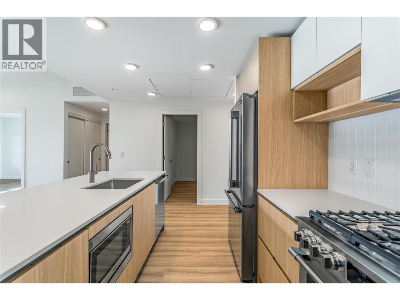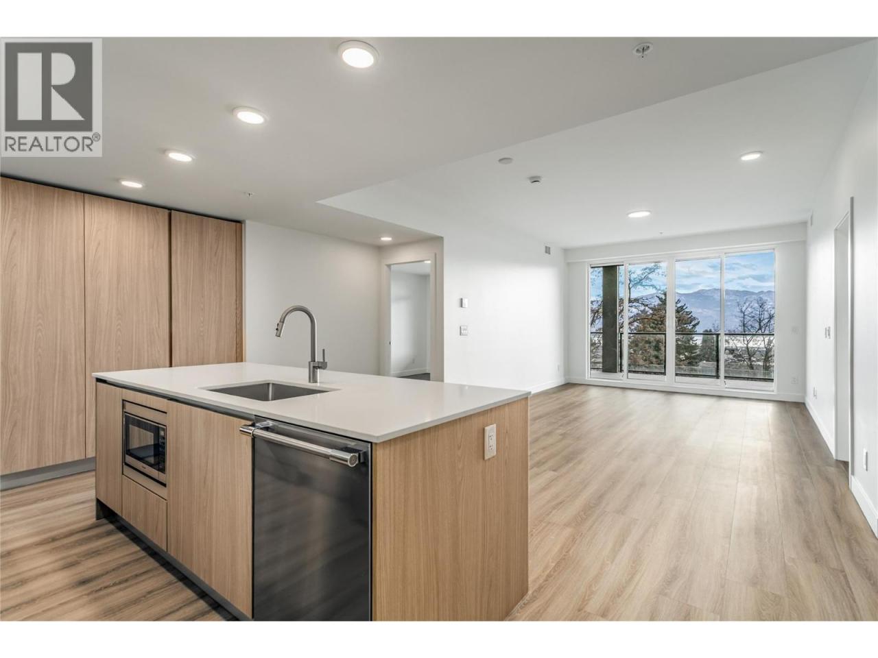 Luxury 2 bed 2 bath brand new move-in-ready condo at Lakeview Village Residences in Lakeview Heights is 1069 sq. ft. with an additional 307 sq. ft. deck. This is a great floorplan with views towards Mount Boucherie Winery and Okanagan Lake from your large deck. No neighbours above and exceptional deck space to watch the world go by. Elevated modern & cozy interiors featuring warm whites and oak accents. 9"" smooth finish ceilings provide a spacious, light and airy feel. Custom designed Veneta Cucine cabinets imported directly from Italy with an oversized island that's extra deep to accommodate comfortable counter seating. Spa inspired, custom designed ensuite with Italian vanities that include built in vanity mirror lighting and accent shelving. Heated floor in the ensuite. This is one of four units at the top of the two storey wing, facing the lake. Amenities include a heated swimming pool, hot tub, health club, roof top & community gardens, indoor greenhouse, dog wash station, and walking trails through neighbouring vineyards. You are a short walk from the shops at the Lakeview Village Mall, including Nesters Supermarket, liquor store, and various other stores and offices. The West Kelowna Wine Trail, nearby, with wineries, brewpubs and restaurants plus biking , beaches and golf nearby. It's just a short drive to all the amenities of downtown Kelowna and West Kelowna. One indoor parking spot. (id:6769)