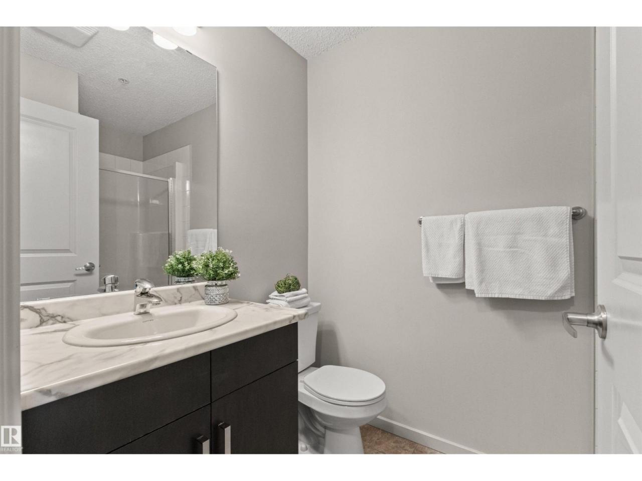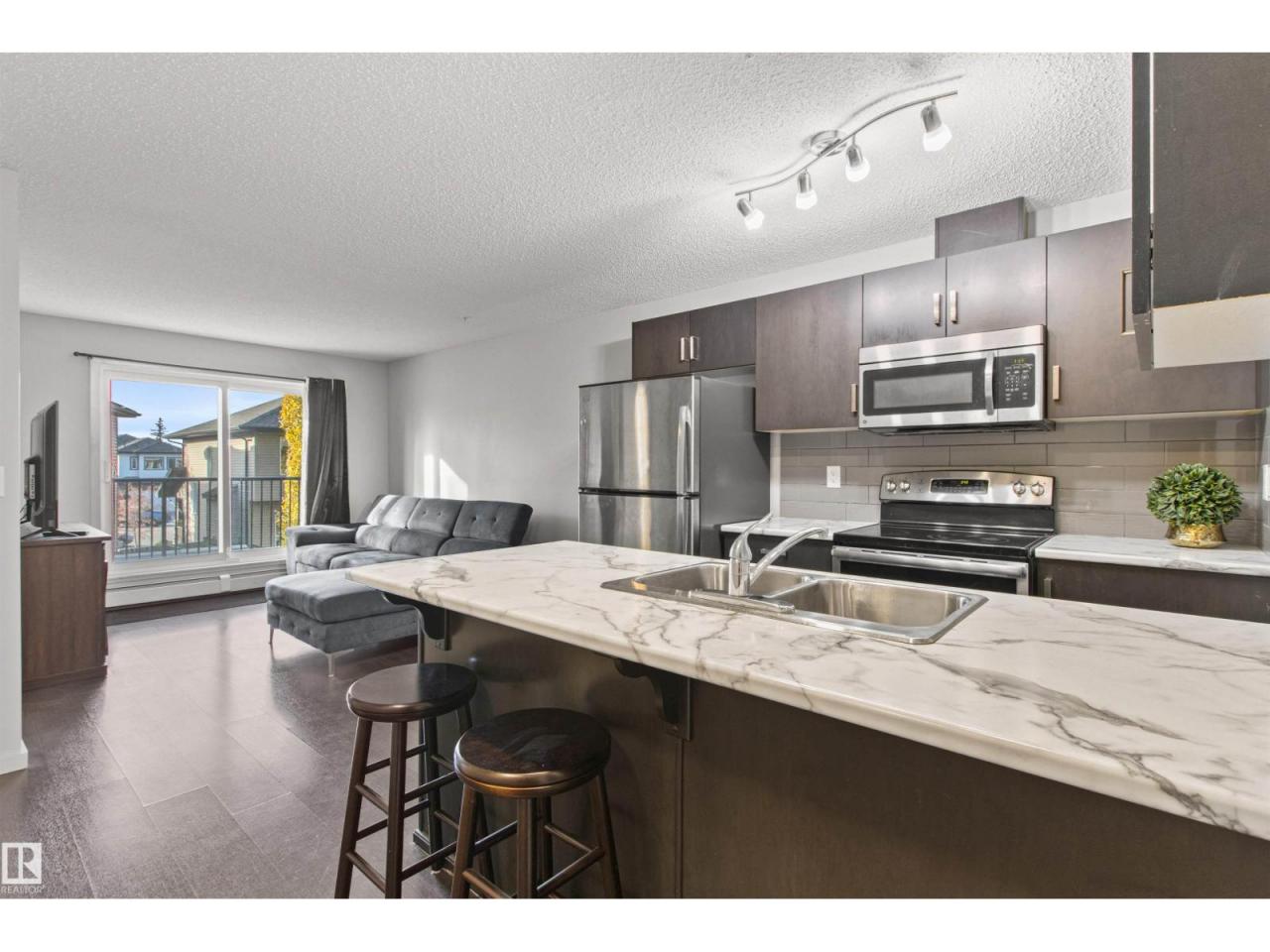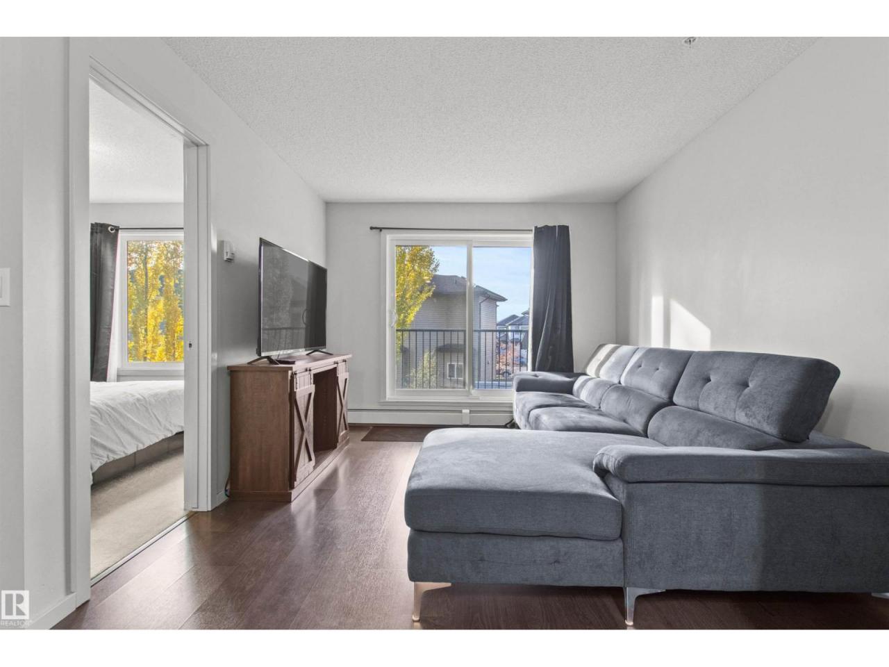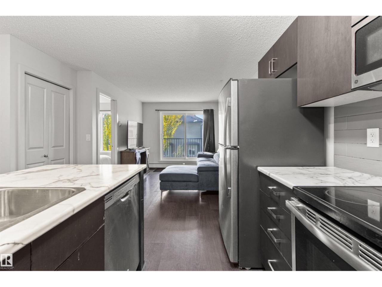 Loads of value in this newer 2 bedroom 2 bathroom condo in Charlesworth! Featuring an open concept main living space with both bedrooms and bathrooms on opposite ends of the unit. All appliances including in suite laundry are included. A sunny west facing balcony overlooking residential and perfectly positioned so your noting even directly facing a house. Low condo fees of $366 that include heat and water. This unit is complete with one energized surface parking stall. Close to amenities, transit and easy access to the Henday. (id:6769)