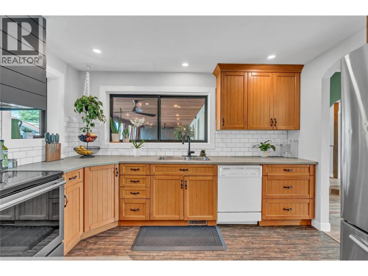 New Year and this move in ready home is waiting for you. Centrally located in Summerland, beautifully updated & brimming with charm. From the moment you arrive, the curb appeal sets the tone for the style & comfort inside. Offering 6 bedrooms & 2 bathrooms, the layout provides incredible flexibility with 3 bedrooms (or optional den) on the main & 3 more upstairs, including the spacious primary suite w/walk-through closet, ensuite with separate shower & soaker tub, direct access to a large private deck, where you can enjoy the view of Giants Head Mountain. The welcoming foyer leads to a bright family room, dining area, & kitchen complete with butler’s pantry & a convenient new pass-through window to the back patio. New windows through the home offering natural light. Laundry & back yard access are also on the main floor. The new covered outdoor cement patio is a true highlight, complete with areas to lounge, & entertainment. The fenced back yard is spacious, paved for parking enjoy the newer hot tub. Versatile garage space, half storage, half converted gym/office with its own ductless system. Updates include siding, roof, windows, doors, insulation, flooring, paint, fence, HVAC 2021 & that fabulous covered back patio addition. Landscaped property with new lawn front and back. Move-in ready, this home offers space for everyone to enjoy, indoors and out, all in a walkable, bike-friendly, central location; all you need to do is move in and enjoy. Plenty of parking in front of the home or in the fenced back yard. Check o with access from the quiet street. Check out the listing website https://snap.hd.pics/10816-Victoria-Rd-S and book your private showing today. (id:6769)