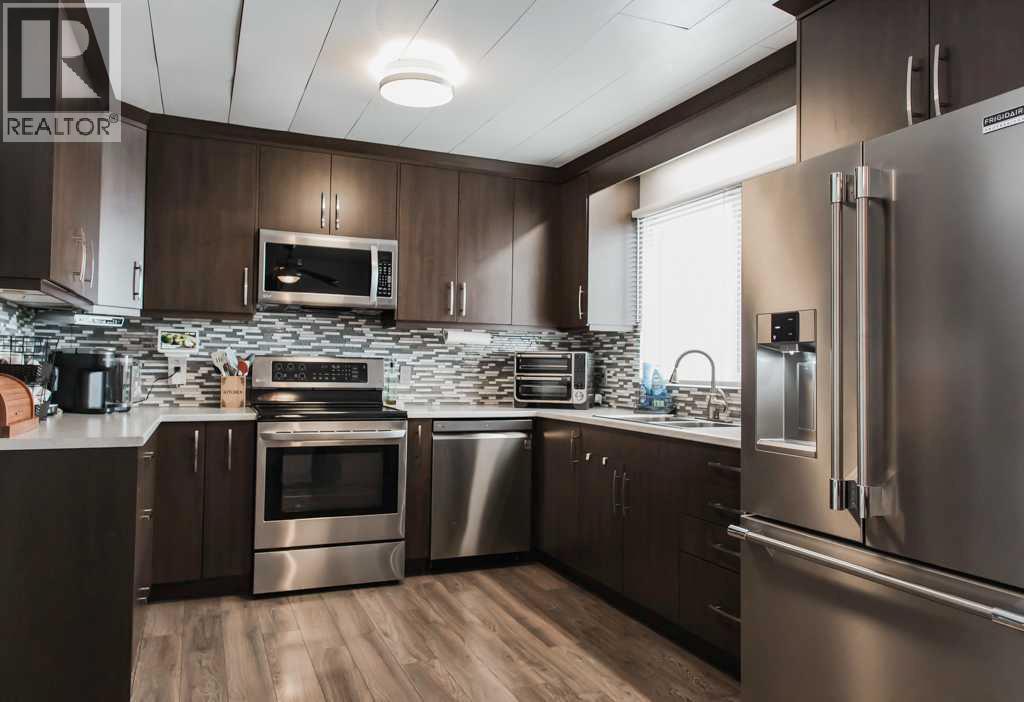 Updated 4-bedroom, 2-bath home in Spirit River featuring both an attached garage and a bonus heated 20’x32’ detached double garage with back alley access. This beautiful property sits on a large, treed lot tucked away at the back of town and perched on a rise, offering peaceful surroundings and scenic views of the Peace River Valley. Over the years, the home has seen numerous updates including a modern kitchen with soft-close cabinets and drawers, new flooring in 2020, and shingles, siding, and windows completed approximately 10 years ago, with more recent improvements such as a basement bathroom and hot water tank in 2021 and central air conditioning added in 2024. The main floor offers a spacious layout with three bedrooms, a large bathroom featuring double sinks and direct access from the primary bedroom, convenient main-floor laundry, a bright oversized living room with a large front window, and the updated kitchen ideal for family living or entertaining. The fully finished basement includes a large rec room, an extra-large bedroom with a walk-in closet, an updated bathroom with a custom tile shower, a storage room, and a pellet stove that provides efficient backup heat for northern Alberta winters. The attached garage is 16’ x 29’ and insulated, complemented by a large front driveway, while the impressive 32’ x 20’ heated detached double garage offers additional parking, storage, or workshop space. The oversized treed lot features a concrete patio, a gas line for a BBQ, and the privacy of having only one direct neighbour, and to top it off, high-speed fibre optic internet makes this home an excellent option for remote work or home-based businesses. (id:6769)