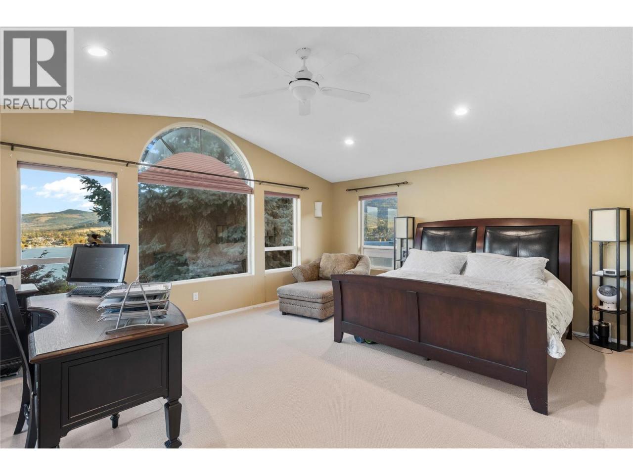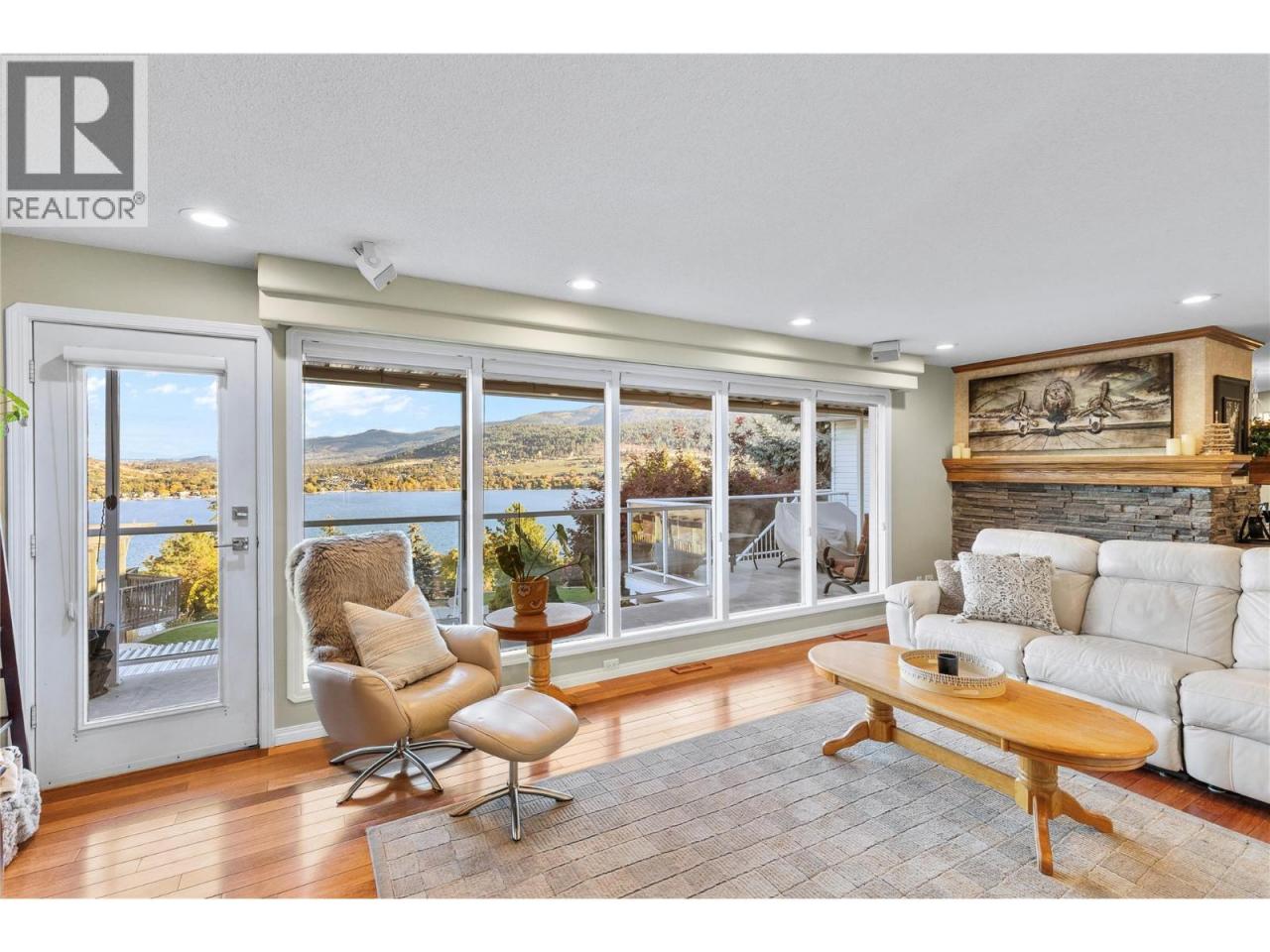 Unobstructed Kalamalka Lake & mountain views define this exceptional 4,430 sq.ft. Coldstream residence, situated on a private .67-acre cul-de-sac lot in one of the area’s most desirable locations. Thoughtfully expanded & updated, the home blends timeless architecture w/ modern comforts. Designed as a rancher w/ a walkout basement, the layout is ideal for both living & entertaining, featuring 2 primary suites on the main level, open-concept living & dining areas that capture the views. The lake-view kitchen is anchored by a centre island & premium appliances, including a Sub-Zero refrigerator, gas range, wall oven, & warming drawer. The fully developed lower level offers a 2nd kitchen, family room w/ gas fireplace, bedroom, full bath & walkout access to the saltwater pool, covered BBQ & entertaining area — with space & potential to create a full outdoor kitchen. Each of the 4 spacious bedrooms enjoys its own ensuite, generous closets & built-in organizers. Mature landscaping, fruit trees, double garage, RV parking & generous driveway complete the property. Numerous updates include the bedrooms, bathrooms, pool, roof, & mechanical systems, while still offering opportunities to personalize select finishes. A short walk to Kal Lake, beaches, lakeside pub & café, college & track facilities; minutes to golf, skiing, the Okanagan Rail Trail, schools, Vernon & Kelowna International Airport. A rare offering combining privacy, lifestyle, entertaining & enduring value for families. (id:6769)