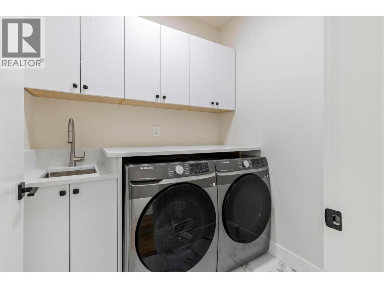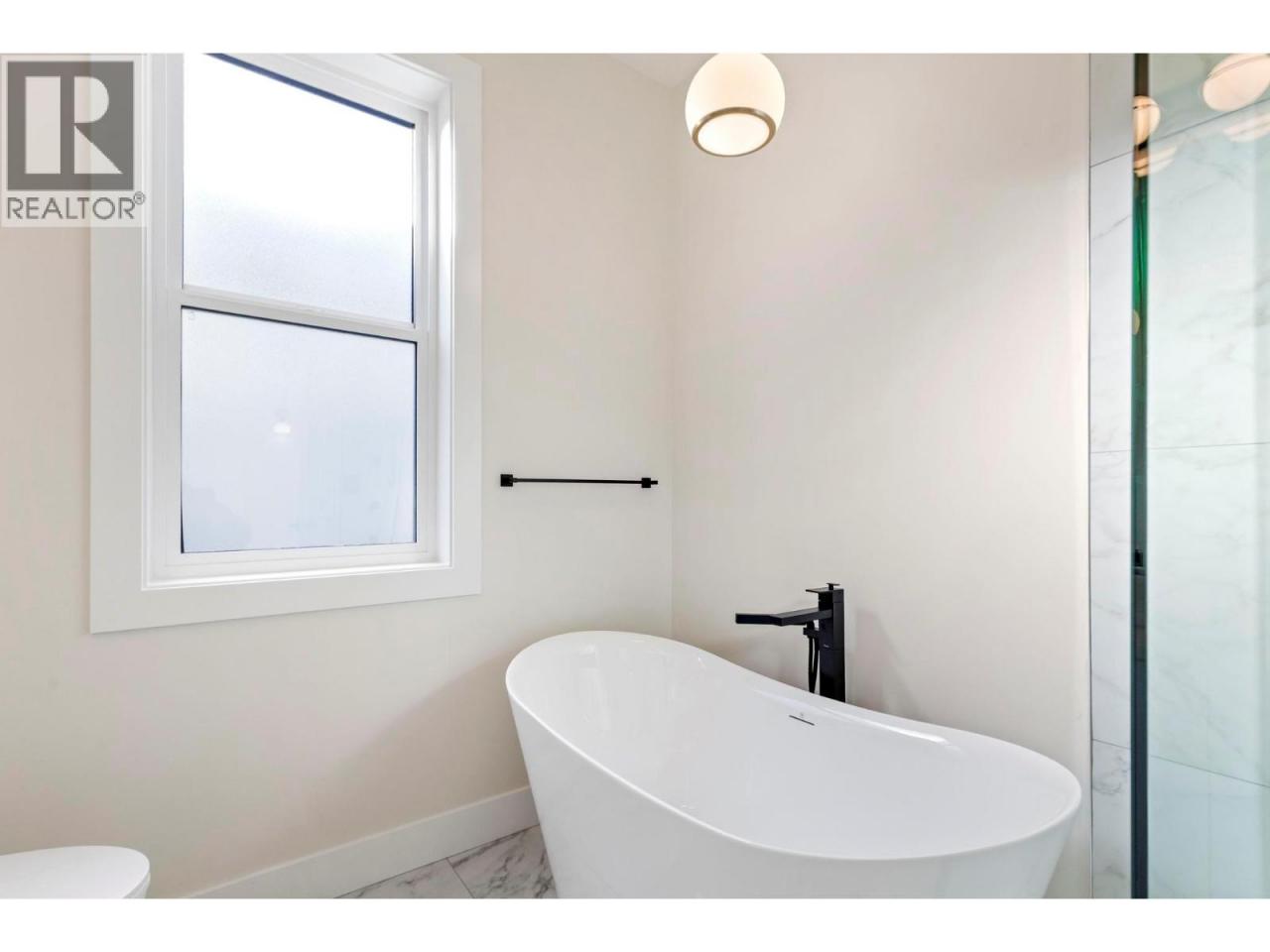 Welcome to The Trails, a stunning new build in one of West Kelowna’s most desirable communities. This 3,248 sq ft, five bedroom, four bathroom contemporary home stands out with its two bedroom legal suite and rooftop patio, offering both lifestyle and long term value. The main floor features an open concept layout with wide plank hardwood floors, quartz countertops, and a feature accent wall that adds warmth and modern character. The kitchen includes stainless steel appliances along with bold black hardware and fixtures. A large mudroom connects to the double garage, providing everyday convenience, while a powder room completes the level. Upstairs, the primary suite delivers a luxurious retreat with deck access, a custom feature wall, walk in closet, and spa inspired ensuite with dual sinks, glass shower, and freestanding tub. Two additional bedrooms, a full bath, and a laundry room with sink complete the upper floor. The bright legal two bedroom suite below offers its own laundry, full kitchen, and private entrance, ideal for extended family or rental income. Enjoy three outdoor decks, including a rooftop patio with gorgeous mountain and valley views, perfect for entertaining or relaxing. The synthetic turf backyard provides low maintenance living that is also great for kids and pets. Additional highlights include Step Code 3 energy efficiency, ample parking and storage, hot water on demand, alarm system, EV ready double garage, and a full blinds package. GST applicable. (id:6769)