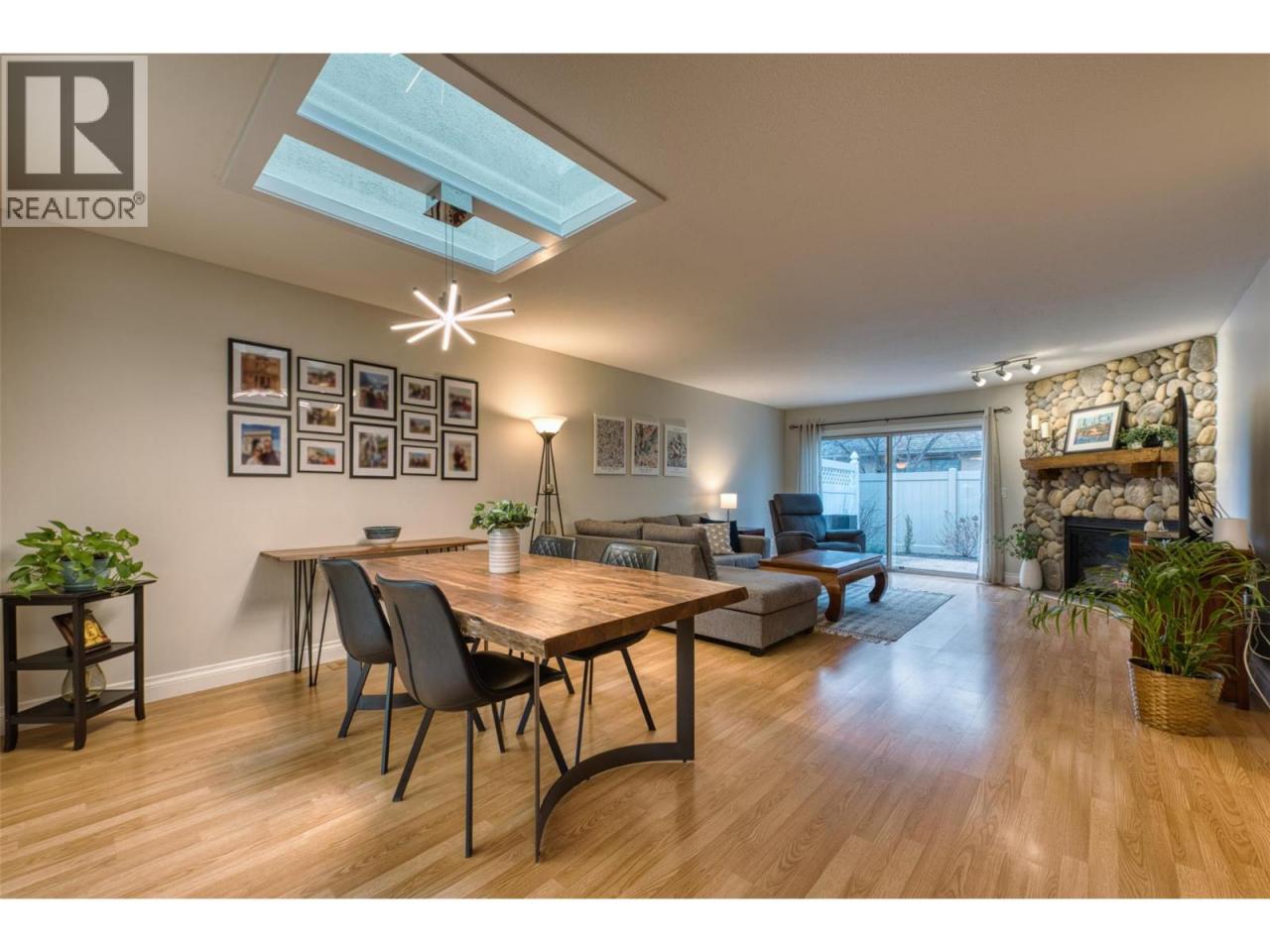 Spectacular townhome in the heart of Lower Mission, just a few blocks from Gyro Beach and Pandosy Shopping Village. With over $40,000 recently invested in a beautiful new kitchen, fresh paint throughout, and a complete ensuite makeover, all the hard work has been done for you—all that’s left to do is move in and enjoy. The heart of the home is the cozy living area, where a floor-to-ceiling river rock fireplace creates a warm, rustic focal point for family gatherings. Sunlight pours in through skylights, making the space feel bright and airy even on quiet winter afternoons. The kitchen is both stylish and practical, featuring durable quartz countertops and high-quality appliances, perfect for morning coffee or hosting friends. The primary bedroom is a true sanctuary, featuring a stunning, newly renovated ensuite. You’ll love the modern feel of the full stand-up shower and the timeless elegance of the new tile work. For guests or hobbies, the second bedroom includes a handy Murphy bed, allowing the room to easily double as a home office. Outside, your private backyard offers a quiet spot to garden or relax, while the friendly community provides wonderful perks like a clubhouse and a sparkling outdoor pool. Best of all, you’re just a short, easy stroll away from the sandy beaches of the lake and the local shops and cafes. It’s the perfect blend of a quiet home life and a vibrant neighbourhood lifestyle. Book your showing today! (id:6769)