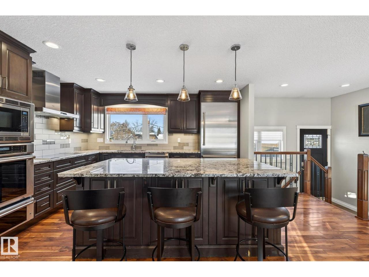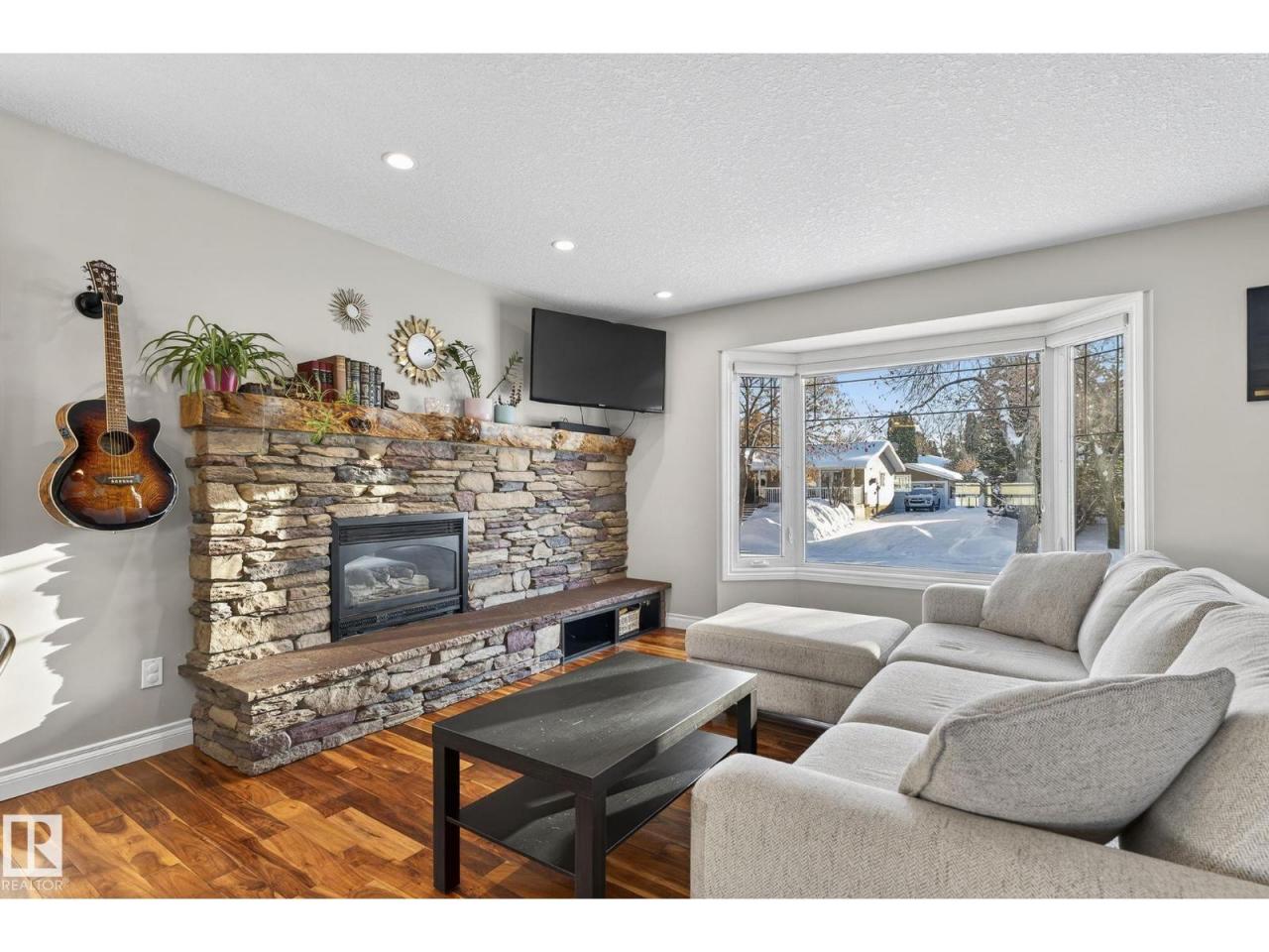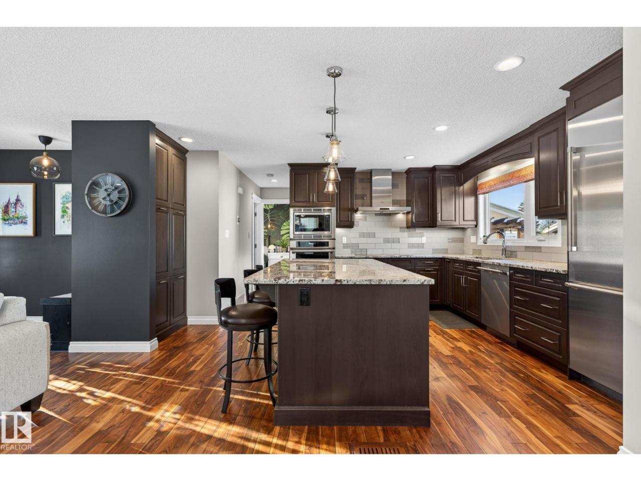 Fully upgraded bungalow tucked into a quiet cul-de-sac in a fantastic neighbourhood, close to schools and parks. The 1083sqft main floor offers 2 large bedrooms, with the original third bedroom thoughtfully converted into a spacious walk-in closet and private ensuite featuring heated floors. The custom kitchen is a standout with granite countertops, stainless wall ovens and a huge seated island. Warm living area highlighted by hardwood flooring and a gas fireplace. The fully finished basement adds incredible versatility with a bedroom, den, large laundry area and a generous recreation room complete with built-in cabinetry and an electric wall fireplace. All 3 bathrooms have been modernized, lighting updated and fixtures have been upgraded throughout the home. Additional features include air conditioning, central vacuum, irrigation in both front and back yards, solar panels, new electrical panel, oversized 26x24 heated garage, new doors, vinyl windows, soffits, facia and eavestroughs. (id:6769)