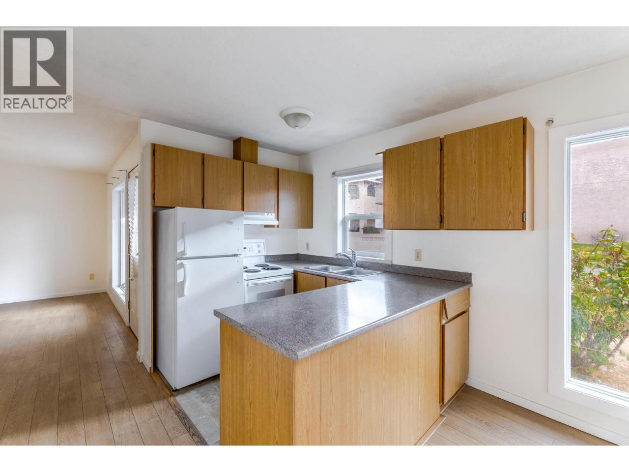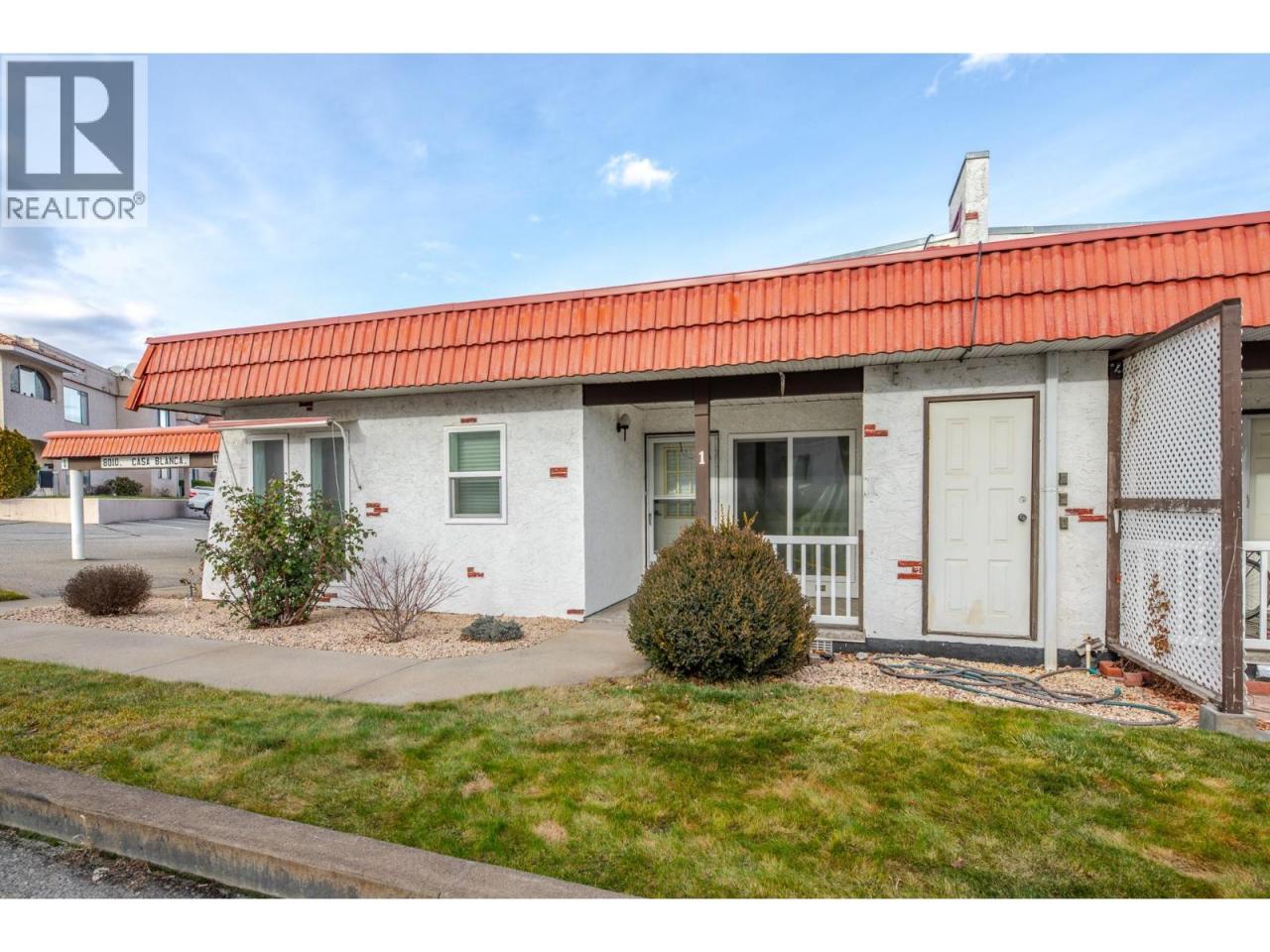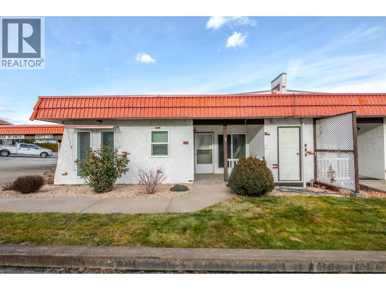 Looking for easy, low-maintenance living in sunny Osoyoos? This well-priced 2-bedroom, 1-bathroom end-unit rancher townhome offers comfortable one-level living in a quiet, well-maintained 55+ community — all for under $250,000. With just over 800 sq. ft., the home features a spacious living room, two generously sized bedrooms, in-suite laundry, and convenient storage. Step outside to the covered front veranda, the perfect spot to enjoy your morning coffee while staying cool in the shade. Additional highlights include a covered carport and a highly walkable location close to shopping, services, and everyday amenities. One small pet is allowed. (id:6769)