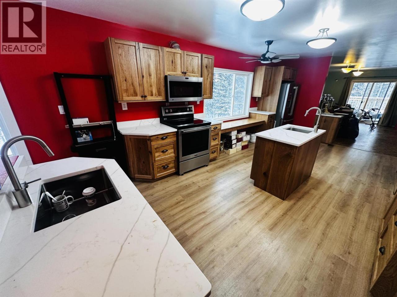 Four-bedroom, three-bath home set on over five acres in a private, treed setting just minutes from town. The main floor features a spacious open-concept layout with a beautiful newer kitchen complete with quartz countertops. Step outside to a large deck, ideal for entertaining or enjoying the peaceful surroundings. Multiple outbuildings offer excellent storage and versatility, with plenty of room to build your dream shop or expand. Enjoy quiet rural living while remaining within 10 minutes of town. (id:6769)