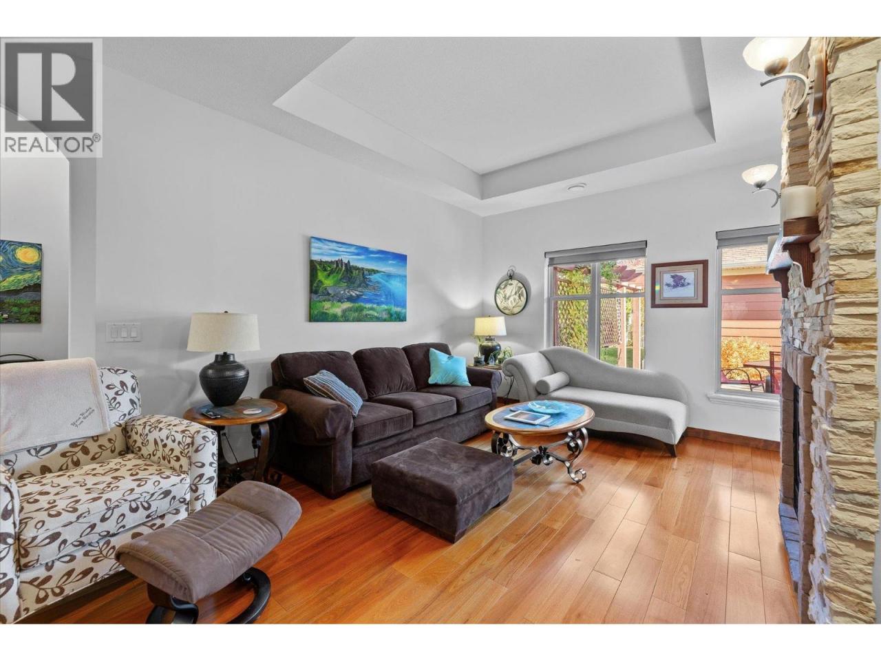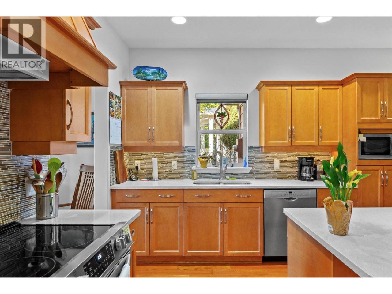 Experience the quintessential Kettle Valley lifestyle in this charming single-family 3 bed 2 bath home. Boasting perfect curb appeal with elegant stone detailing on the front terrace, this residence offers compact yet open-concept living. Check out the wine shrine to store and display your favorite Okanagan vintages! Featuring three comfortable bedrooms, 9 foot plus ceilings, island kitchen, quartz counters, hardwood floors, stainless steel appliances, real wood doors and trim and a wonderful covered terrace (18' x 9'), it provides ample outdoor enjoyment with additional lawn and garden space. The low-maintenance front yard complements a rear garden with complete privacy. This property presents an excellent alternative to strata living, offering control over your environment. A double detached garage (21' x 20') provides generous space for vehicles or hobbies. This meticulously maintained home offers a very livable floor plan, ideal for a single person, couple, or small family. All measurements from i-guide. Please verify if important. (id:6769)