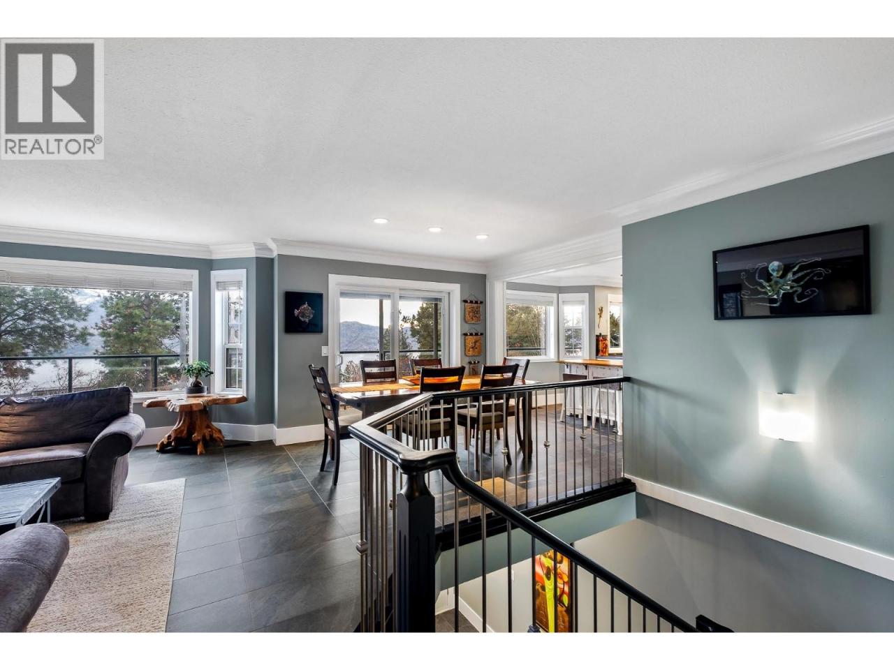 Perched high on the coveted Trepanier Bench, just 10 minutes from downtown West Kelowna and only 3 minutes to Peachland, this immaculate 3-bedroom, 3-bath retreat offers breathtaking 180-degree lake views and exceptional privacy within a charming, West Coast–inspired enclave of estate-sized properties. From the moment you arrive, the inviting Cape Cod–style exterior delivers outstanding curb appeal. Inside, pride of ownership is evident throughout, with thoughtful upgrades and refined finishes at every turn. Newly installed slate tile floors enhance the main living areas, while crown mouldings, three cozy fireplaces, and a warm, welcoming kitchen create a perfect blend of elegance and comfort. The open-concept living space flows seamlessly onto the expansive front deck, where panoramic lake views set the stage for unforgettable sunsets and entertaining. Downstairs, you’ll find a generous recreation area ideal for family and guests, with walk-out access to a beautifully landscaped backyard featuring a large new deck, hot tub and pergola—perfect for relaxing or hosting gatherings. This meticulously maintained home is truly a private sanctuary, yet remains just minutes from all amenities. Ample parking and extra space for a boat or RV complete the package. Priced to sell-this exceptional property is a must-see. Contact us today to arrange your private showing."" (id:6769)