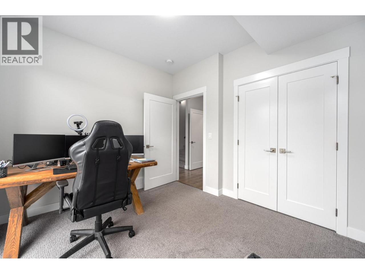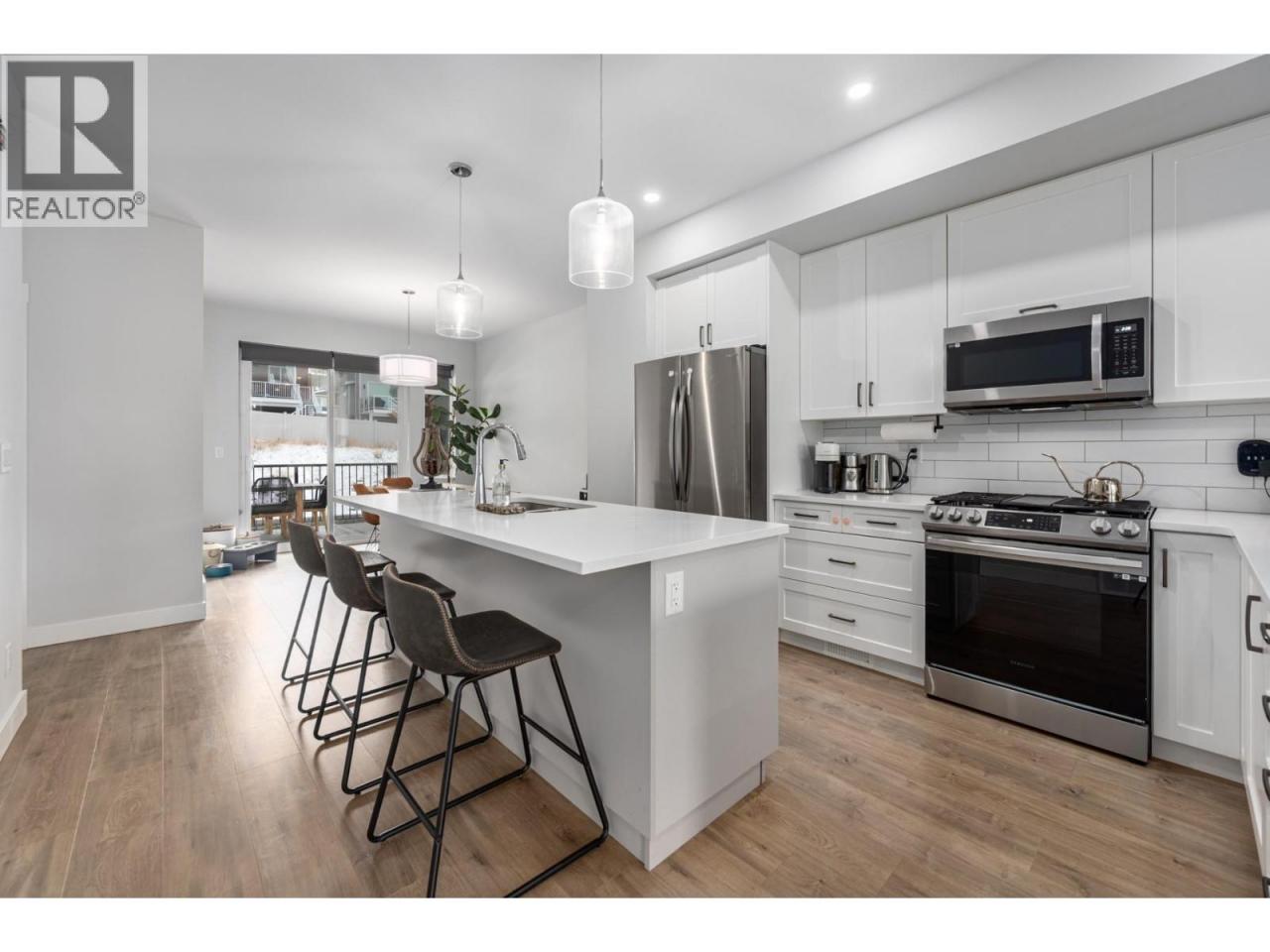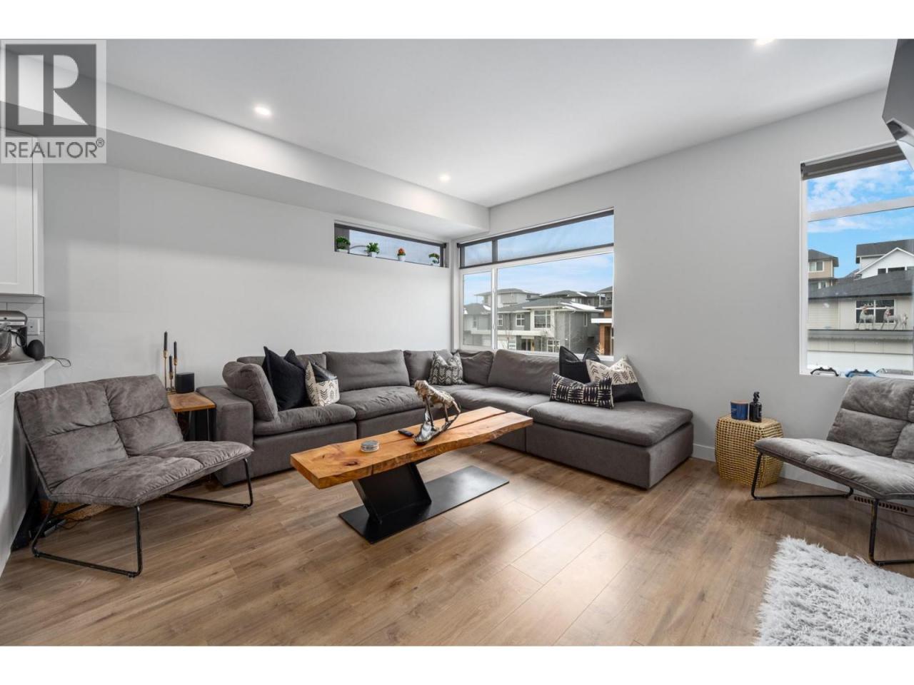 Designed and built with thoughtful selections, this well-appointed townhouse offers an ideal Juniper West lifestyle. Located directly across from a playground and close to a dog park, walking trails, and the Juniper Bike Ranch, the location is hard to beat. Entry level access from the spacious garage leads into a functional mudroom area, along with one bedroom and a convenient 2pc powder room. This level is ideal for guests, a home office, or flexible use. The main floor features an upgraded kitchen with quartz countertops, gas range, and S/S appliances, opening to a large covered deck that’s perfect for outdoor living. This level also includes a powder room and a generous living room with an electric fireplace. As an end unit, the home benefits from extra windows that bring in excellent natural light. Upstairs, you’ll find two well-sized bedrooms plus a den/office space. The main bathroom is a 4pc, while the primary bedroom offers a spacious ensuite with double-sink vanity, a large walk-in tiled shower, and a walk-in closet measuring approximately 13 feet with custom shelving for an extensive wardrobe. The garage accommodates one vehicle plus space for bikes or gear. Parking includes one driveway space and one assigned stall. Notable upgrades include quartz countertops throughout, a 60-gallon HWT, and central A/C. Quick possession is possible. This home is an excellent choice for buyers seeking quality, functionality, & the Juniper West lifestyle. (id:6769)