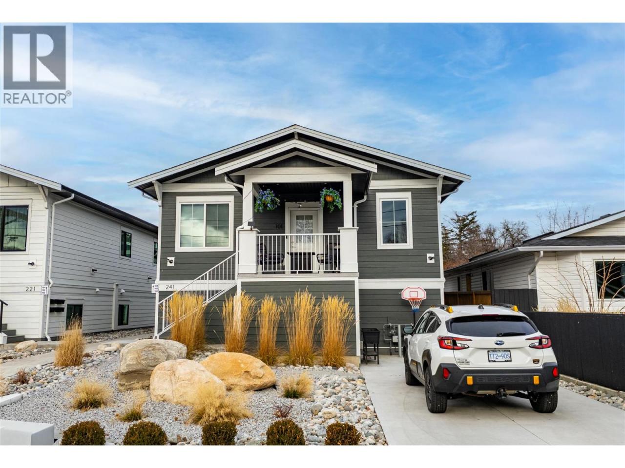 CLICK TO VIEW VIDEO: OPEN HOUSE JAN 18TH 11-1PM. 101–241 Nelson Avenue. A 2023 built half duplex offering 1,260 sq ft of living space with 3 bedrooms and 2 bathrooms. A rare single-level option for a home of this age and price point in Penticton. The first impression is immediate; bright, open and refreshingly modern with 9-foot ceilings and an exceptionally quiet interior that creates a calm, comfortable atmosphere. The kitchen is both stylish and practical. Ample cupboard space featuring quartz countertops ideal for food prep and a coffee bar. Just off the kitchen, you're going to love the lifestyle-driven flex room offering versatility as a home office, playroom, or creative space of your choice. The primary bedroom includes a walk-in closet and 3-piece ensuite. While the secondary bedrooms are spacious enough for queen beds with end tables. Blackout blinds in the bedrooms and automatic blinds throughout add comfort and style. Additional features include full-size stacked laundry, dedicated off-street parking and active building warranty. Outdoors enjoy the Okanagan sun while relaxing on the covered south-facing patio with storage space underneath. This location stacks lifestyle driven urban conveniences with nearby Pen High and KVR Middle schools, The Gym Eternal, La Casa Ouzeria, KVR Trail and daily shopping. If you’re ready to enjoy the best of everyday living in Penticton, book your showing today. (id:6769)