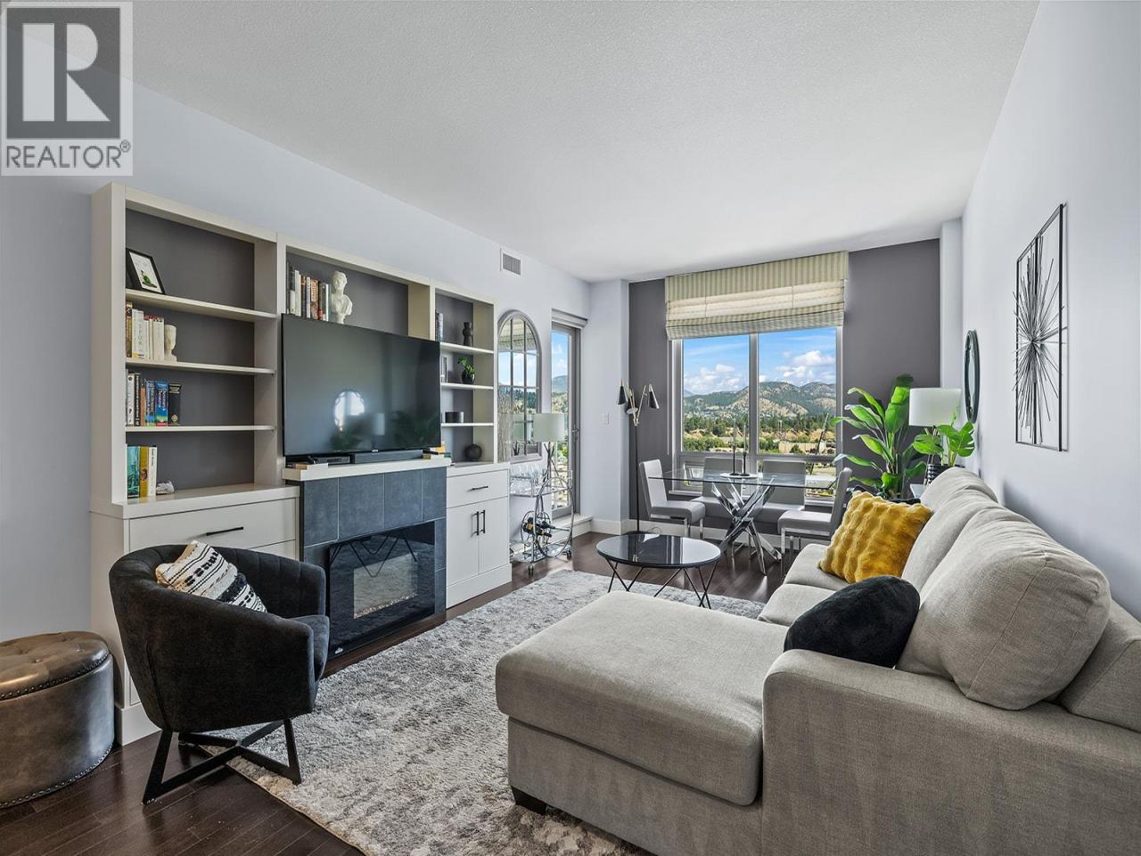 Experience contemporary urban living at INvue with this stylish sub-penthouse condo. that comes with TWO underground parking stalls—a rare and highly desirable feature. Updated with fresh paint, new carpets, blinds, modern faucets, extra shelves and cabinetry in the living room, and a new electric fireplace, enhancing both style and functionality. Located in a well-maintained concrete tower, this 2-bedroom, 2-bathroom unit offers 1,011 sq. ft. of split-layout space—perfect for young families, first-time buyers, or empty nesters. Bright & airy with floor-to-ceiling windows, it features dual balconies with mountain, city, and Okanagan Lake views in the distance ideal for relaxing or entertaining. Quick occupancy is possible, and there is an optional high-end furniture package available. The open-concept living area now includes additional storage and a cozy electric fireplace. The primary bedroom has dual closets and a luxurious five-piece ensuite with double vanities. Building amenities include a 15th-floor rooftop pool, hot tub, fitness center, dog wash, and a residents lounge with pool table and games. In-suite laundry and pet-friendly policies add convenience. Its prime location offers easy access to groceries, retail stores, restaurants, Orchard Plaza, and Orchard Park Shopping Centre. This condo combines modern updates, excellent amenities, rare parking, and a coveted location—an ideal Kelowna home. (id:6769)