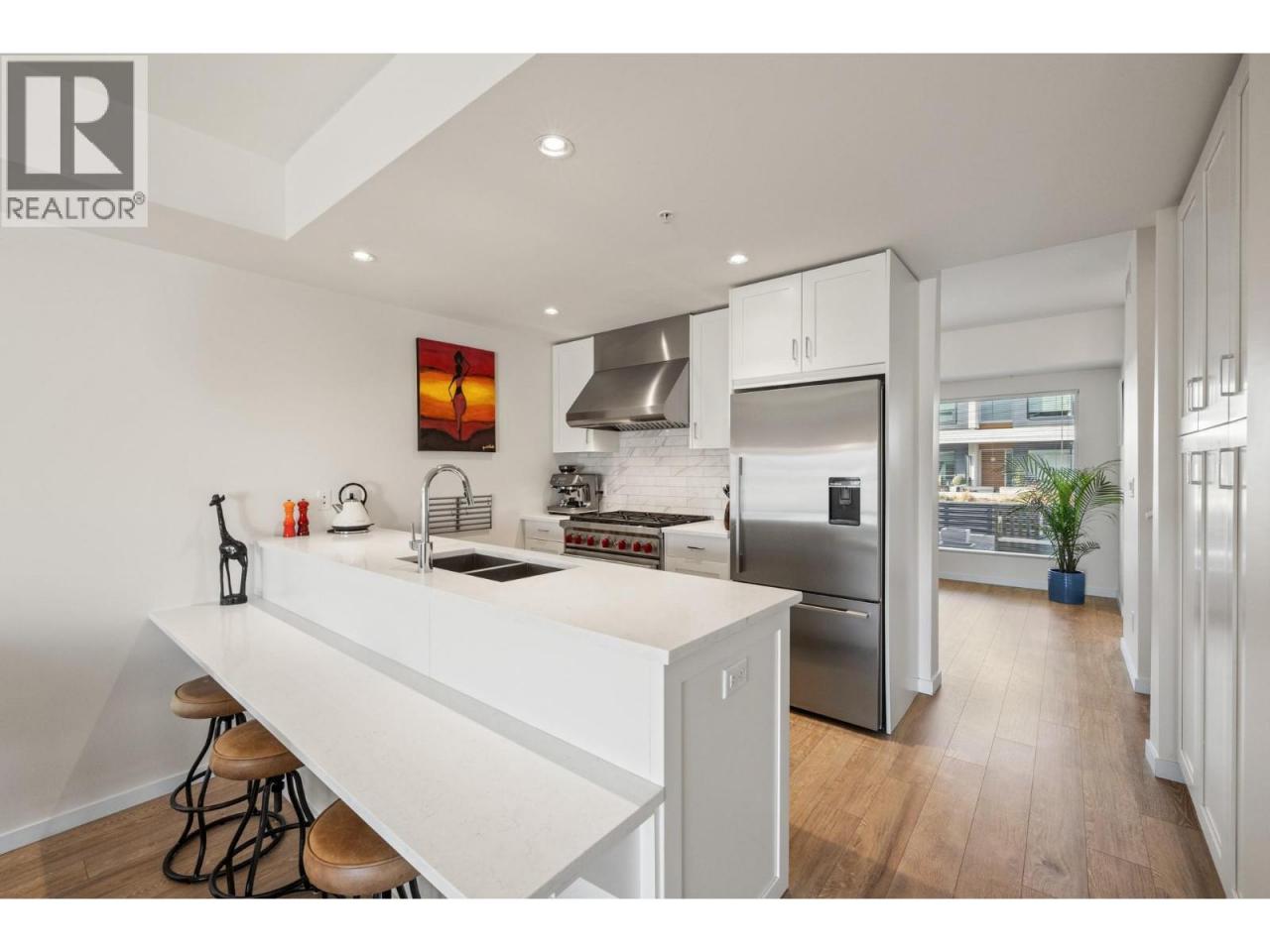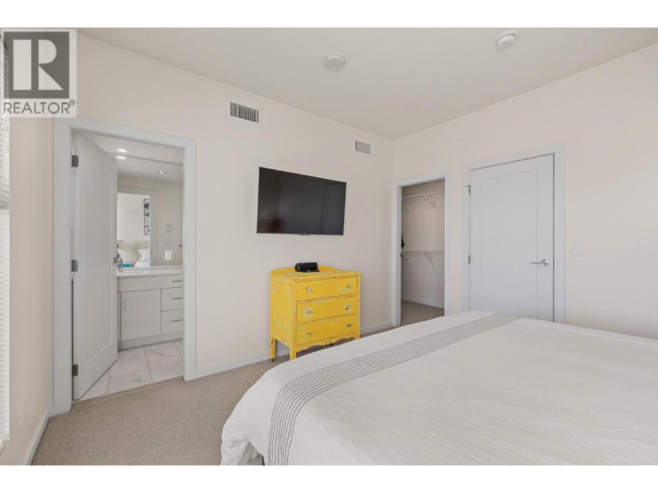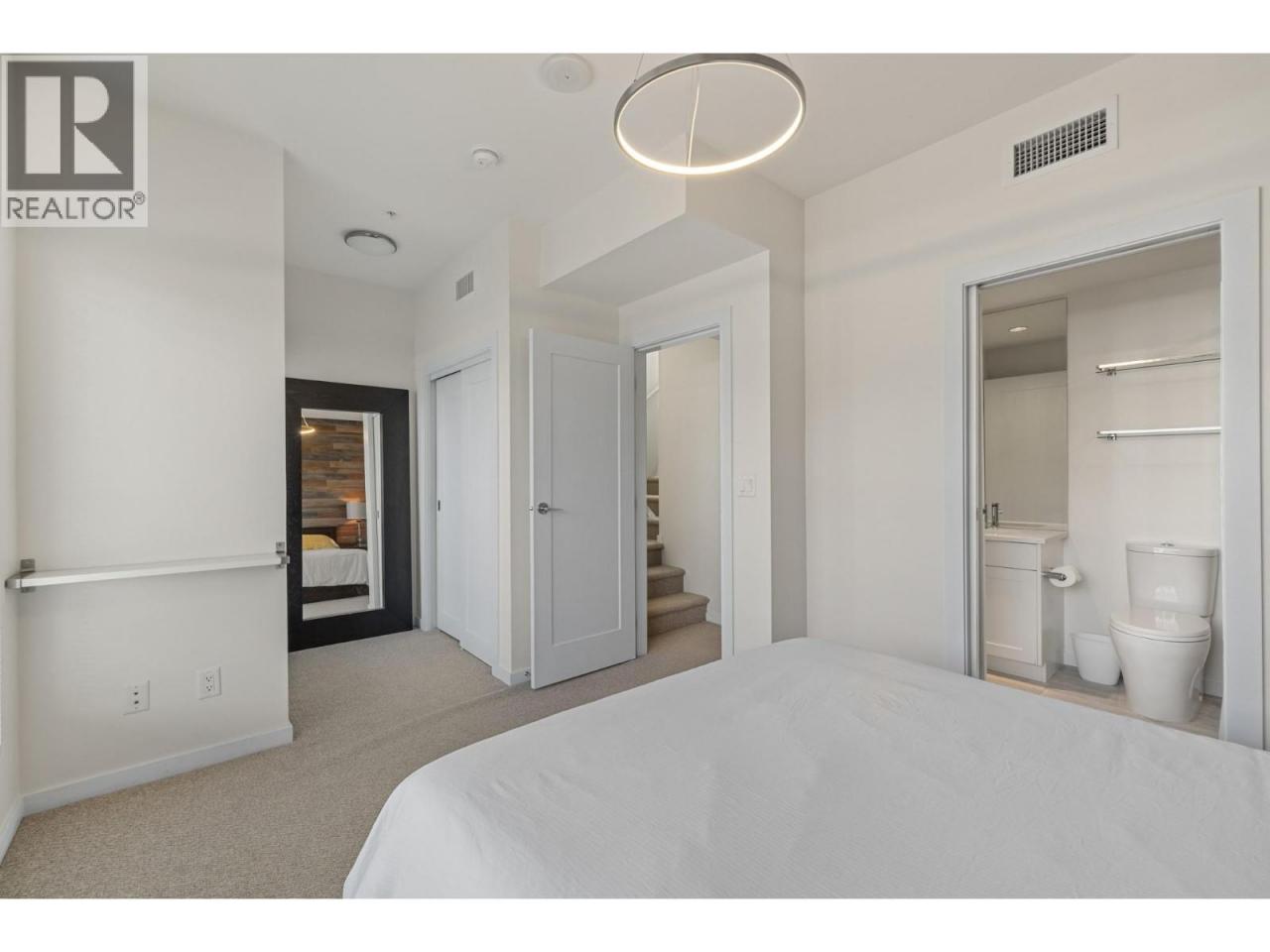 Welcome to luxury living at SOPA Square. This exceptional townhouse-style residence offers breathtaking mountain views, beautiful eastern exposure with glowing morning light, and rare privacy—highlighted by your own rooftop deck complete with a hot tub and peek-a-boo lake views. The interior delivers a true boutique, high-end feel with premium Wolf and Fisher & Paykel appliances, a massive kitchen island, and an open-concept layout that flows seamlessly to a spacious outdoor deck—perfect for entertaining or unwinding against a stunning mountain backdrop. Featuring two generous bedrooms, each with its own ensuite, plus a large den easily convertible to a third bedroom, this home lives large and feels private with its own entrance and patio. Enjoy the convenience of two secure parking stalls with extra-high ceilings—ideal for oversized vehicles and trucks. Set within a safe, secure, and beautifully landscaped third-level courtyard, residents also enjoy access to SOPA’s first-class amenities including a lakeview lap pool, hot tub, gym, fire pit lounge, and private boardroom. All of this is located in the vibrant Pandosy Village, just steps to boutique shopping, restaurants, coffee shops, yoga studios, and more. (id:6769)