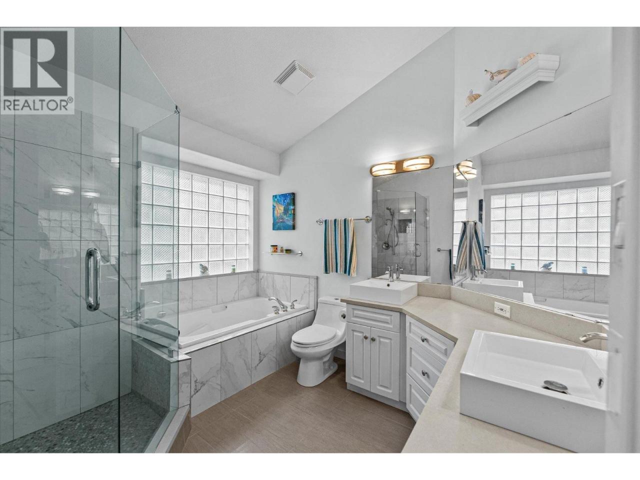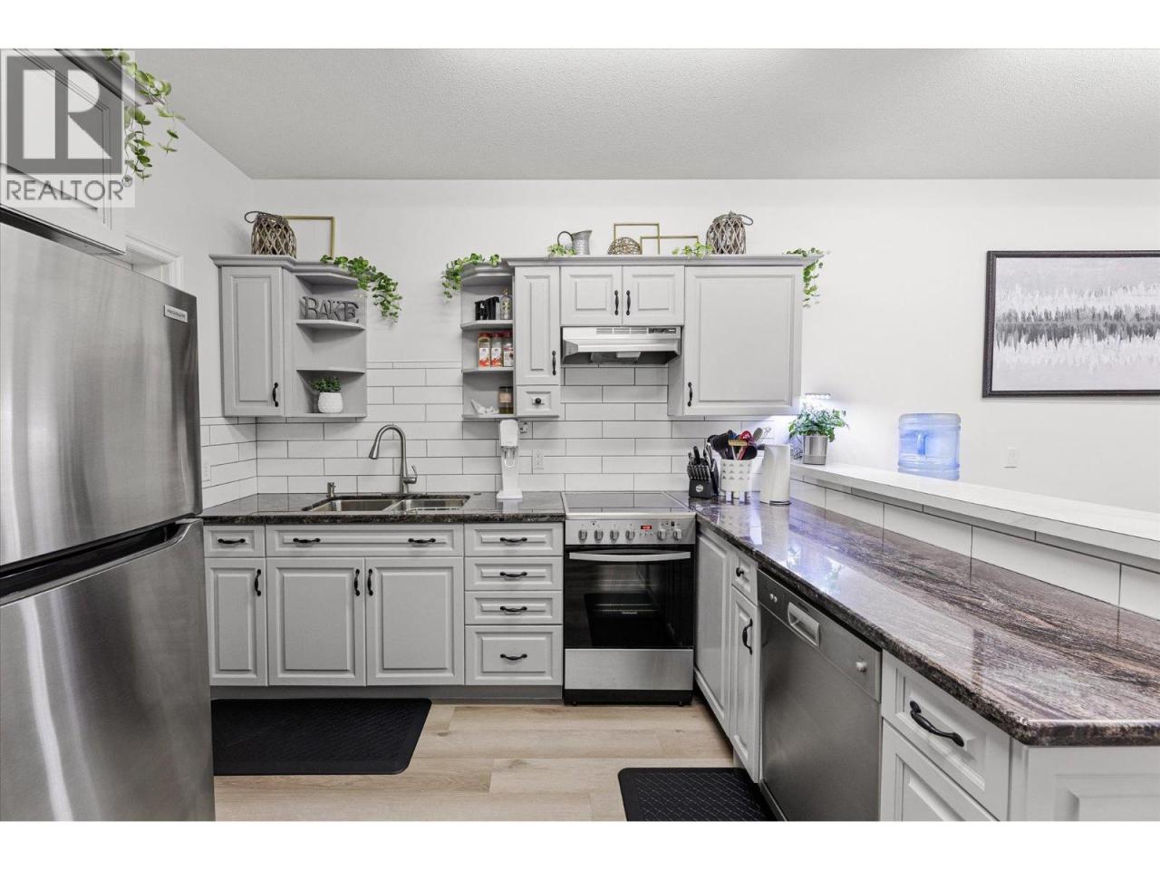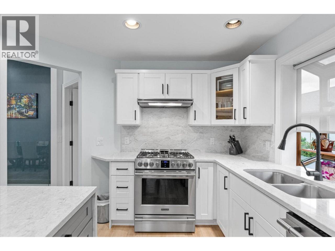 Discover the finer life in this beautifully updated home, nestled in one of Kelowna’s most sought-after enclaves, surrounded by exciting amenities. The main living space welcomes you with soaring vaulted ceilings and a breathtaking fireplace, perfectly framed by a statement feature window. The chef’s kitchen is a showstopper, complete with quartz backsplash, waterfall edge countertops, stainless steel appliances, and eat-at island with ample storage and prep space. Modern finishes shine throughout with new flooring and fresh paint, adding to the sleek and sophisticated feel. The main floor features a spacious primary with deck access, updated 5-piece ensuite, and a large walk-in closet. Upstairs, you’ll find a second bedroom and a bedroom-sized den. Step outside to a private deck surrounded by greenery, perfect for outdoor entertaining and relaxation. Downstairs, a bright 2-bed self contained in-law suite with a new kitchen and separate entrance offers flexibility, easily convertible into a summer kitchen & hosting space with a games/media room. The exterior is freshly landscaped & wired for security, while the tranquil backyard oasis features a fish pond and wiring for a hot tub. Enjoy a 2 car garage that also has room for your golf cart! Located in the vibrant Gallaghers Canyon Golf Community which offers top-notch amenities like a gym, pool/spa, games room, library, workshops, fitness classes, social clubs, tennis courts and more. This exceptional home is waiting for you. (id:6769)