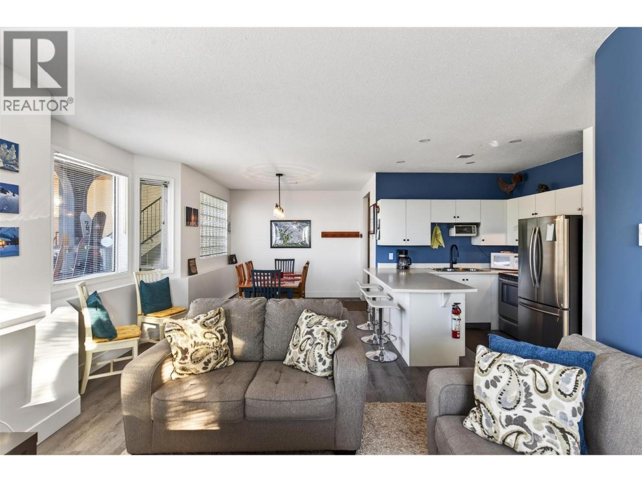 Incredible ski-in, ski-out three-bedroom, two-bathroom corner residence at Chateau on the Ridge at Big White Ski Resort, perfectly positioned directly on the ski run above the Plaza Chair with true door-to-slope access and its own private entrance with no stairs, making it ideal for families, kids, and dogs. The bright open-concept living space is filled with natural light from oversized windows and anchored by a cozy corner fireplace, creating the perfect après-ski atmosphere while showcasing peaceful alpine views. The spacious kitchen features a newer stainless steel appliance package, ample cabinetry, and a counter bar for casual seating, flowing seamlessly into a generous dining area designed for entertaining and gathering. Additional highlights include fresh paint throughout, in-suite laundry, heated underground parking, no noise pollution, and the convenience of coming fully furnished so you can move in and start enjoying immediately. Chateau on the Ridge has recently completed major upgrades including new siding, with the special levy fully paid, and offers excellent amenities such as shared outdoor hot tubs, a full-time building manager, and a quiet yet central location just steps from the Village. Exempt from the Foreign Buyer Ban, foreign buyer tax, speculation tax, empty homes tax, and short-term rental restrictions, this property offers exceptional value and flexibility. With newly expanded access to Big White via direct flights from Los Angeles, Toronto, and Montreal, and located just one hour from YLW, this is a rare opportunity to live where you play. (id:6769)