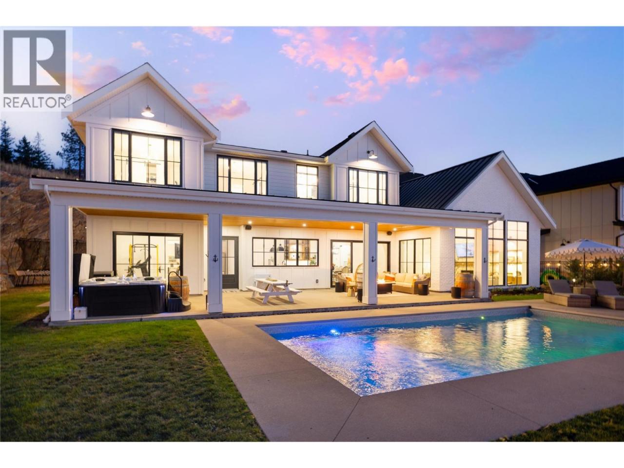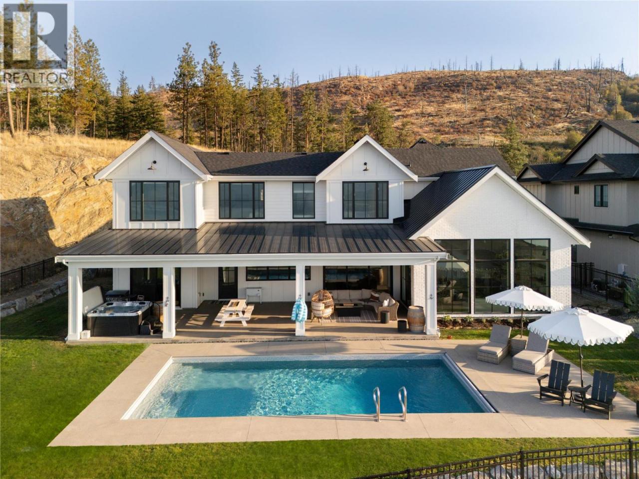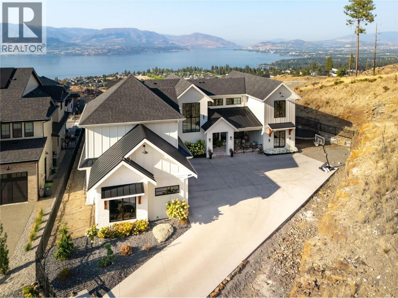 The Ultimate Upper Mission Family Estate—Modern Farmhouse Luxury on 1.1 Acres! Beyond the gates, a private spacious setting captures sweeping lake, mountain & city views while the residence itself is an architectural showpiece of flawless design. The main level is defined by volume & light: soaring ceilings, expansive windows, arched doorways & timeless shiplap details. At its heart is a chef’s kitchen crafted for both beauty & function—Thermador appliances, a striking 3-tone palette, custom hood fan, farmhouse sink & a butler’s pantry with direct access to the pool deck. The adjoining dining space & living room (anchored by a stone fireplace & custom built-ins) open completely to the outdoors, where seamless entertaining takes centre stage. The outdoor living environment is resort calibre: a saltwater pool, hot tub, firepit, covered patio with heaters and speakers & a perfectly flat lawn for kids to play. Upstairs, the family-friendly floor plan shines—four bedrooms together, a generous rec room for children or teens & a private primary retreat with spa-inspired ensuite & walk-in closet. Additional luxuries include a wine room, fitness room, expansive mudroom & oversized garage. Every detail was designed to elevate daily living while creating a backdrop for family memories. Rarely does a home offer this much land, this calibre of finish & this level of lifestyle—minutes to schools, shops, wineries & the lake. (id:6769)