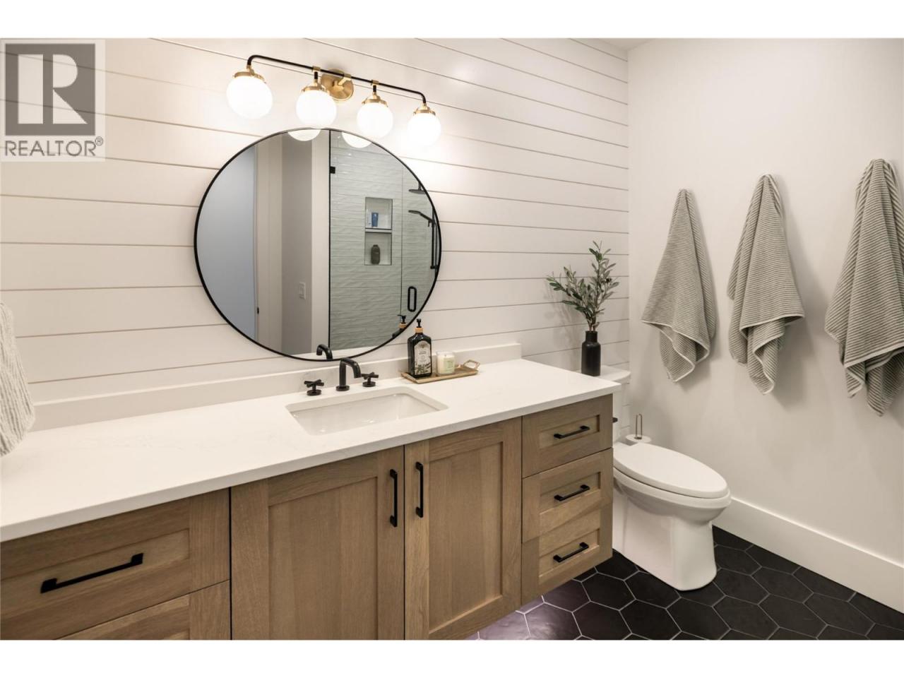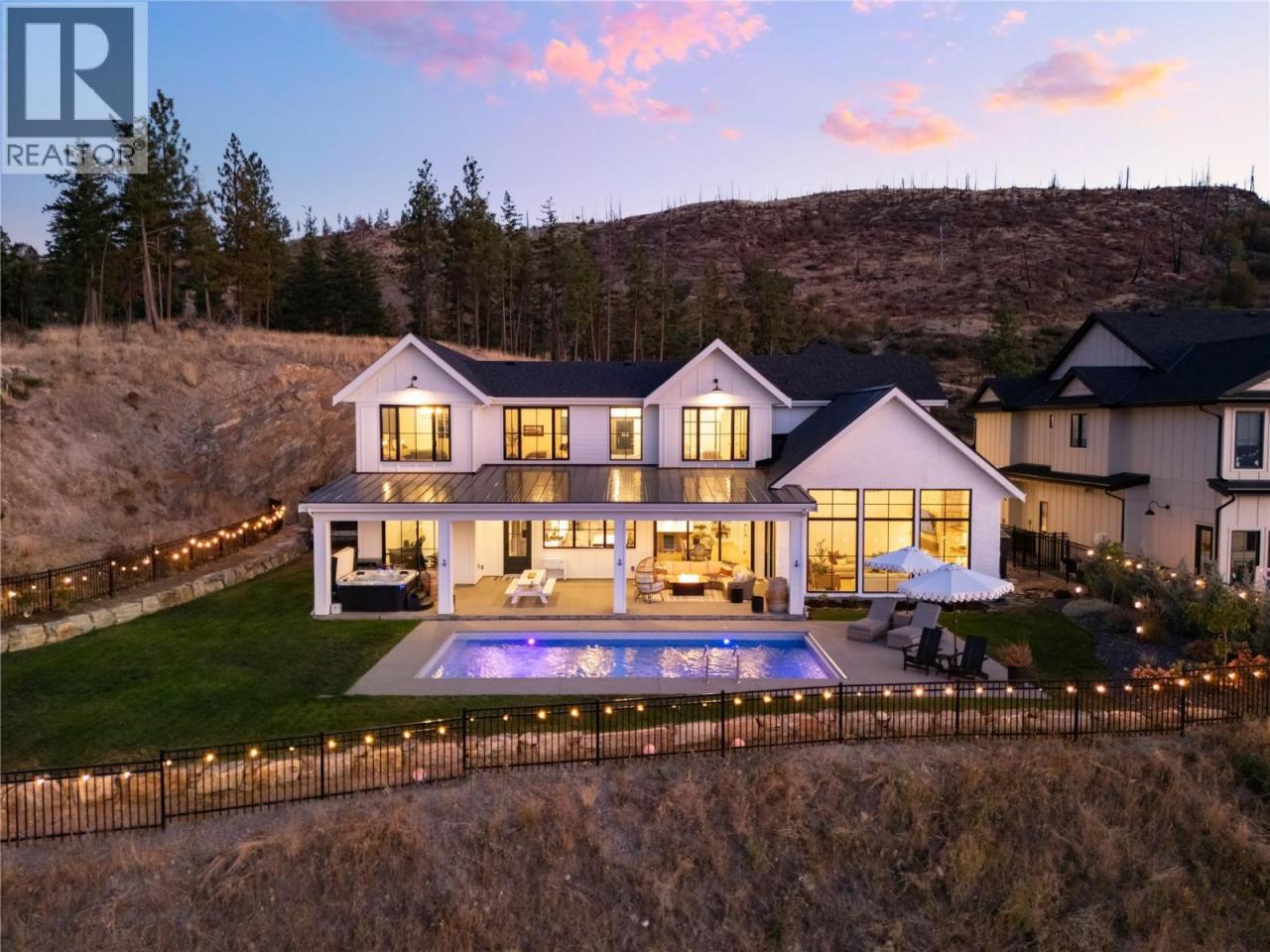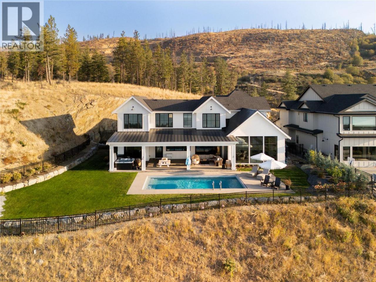 The Ultimate Upper Mission Family Estate—Modern Farmhouse Luxury on 1.1 Acres! Beyond the gates, a private spacious setting captures sweeping lake, mountain & city views while the residence itself is an architectural showpiece of flawless design. The main level is defined by volume & light: soaring ceilings, expansive windows, arched doorways & timeless shiplap details. At its heart is a chef’s kitchen crafted for both beauty & function—Thermador appliances, a striking 3-tone palette, custom hood fan, farmhouse sink & a butler’s pantry with direct access to the pool deck. The adjoining dining space & living room (anchored by a stone fireplace & custom built-ins) open completely to the outdoors, where seamless entertaining takes centre stage. The outdoor living environment is resort calibre: a saltwater pool, hot tub, firepit, covered patio with heaters and speakers & a perfectly flat lawn for kids to play. Upstairs, the family-friendly floor plan shines—four bedrooms together, a generous rec room for children or teens & a private primary retreat with spa-inspired ensuite & walk-in closet. Additional luxuries include a wine room, fitness room, expansive mudroom & oversized garage. Every detail was designed to elevate daily living while creating a backdrop for family memories. Rarely does a home offer this much land, this calibre of finish & this level of lifestyle—minutes to schools, shops, wineries & the lake. (id:6769)