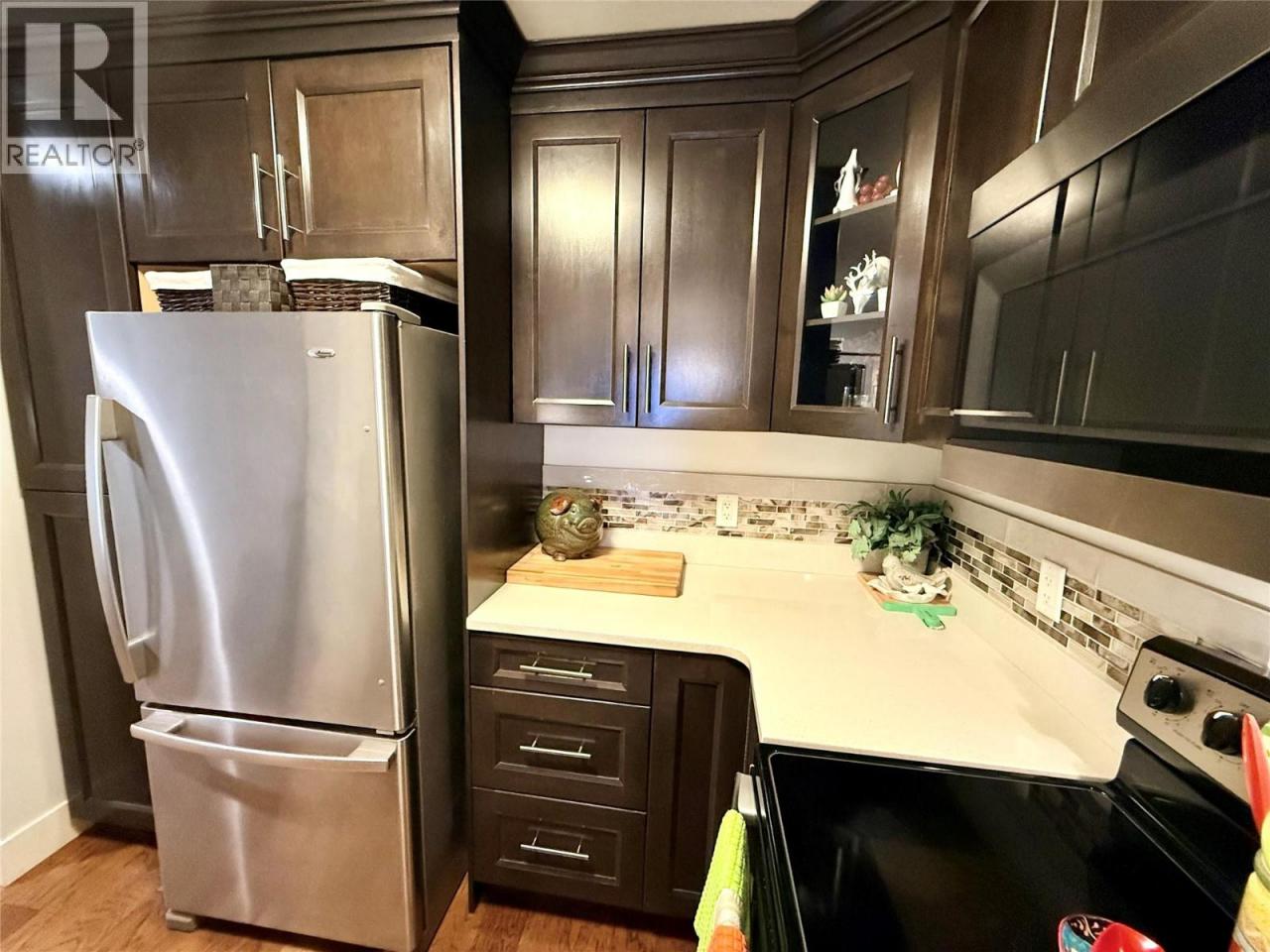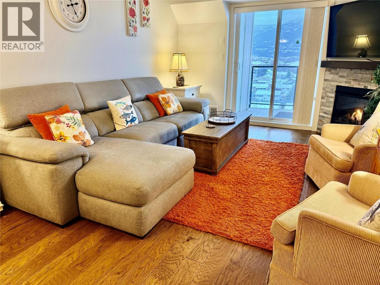 *WELCOME TO IMPERIAL HEIGHTS* one of Salmon Arm's most desirable 55+ strata complexes. This impressive top floor unit is quiet and move-in ready, featuring panoramic views of Mount Ida, Fly Hills, and downtown Salmon Arm - imagine watching the sunset from your deck each evening. This home checks all the boxes for convenient and secure living, with close proximity to downtown and several parks and trails. Quality finishings are featured throughout, including full height quartz countertops, hickory hardwood flooring, crown mouldings, stainless steel appliances and newer bedroom carpeting. Both the primary and second bedrooms are spacious enough for king/queen beds and have west facing mountain views. Secure underground parking with available guest and extra parking on site; the property is also fully landscaped with heated concrete sidewalk and front entrance for resident convenience and safety. Pets allowed with restrictions. **Please click Multimedia icon under listing photos for virtual 3D tour** (id:6769)