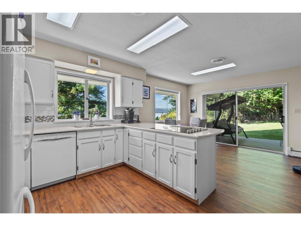 Lake & Mountain Views with Space for Everyone! Set on a private 0.36-acre lot at the end of a quiet no-thru road, this 3-bedroom, 3-bathroom home offers peace, space, and stunning views—ideal for families or those seeking flexibility. The main floor features a welcoming kitchen with a bright dining nook, a formal dining room, and a versatile den perfect for a home office or craft space. The spacious primary bedroom includes a full ensuite, walk-in closet, and its own balcony to take in breathtaking lake views and sunsets. A second bedroom and full bathroom complete the main level. Downstairs, the fully finished basement is perfect for extended family or guests, offering a living room, kitchen, bedroom, bathroom, rec room, and laundry with direct access to the heated double garage. With its layout, the lower level could easily be converted into a suite for added flexibility. Outside, enjoy a landscaped, mostly fenced yard with underground irrigation and ample parking—including room for an RV. Additional features include on-demand gas hot water, excellent storage, and an efficient, functional layout throughout. This home blends comfort, views, and versatility—ready for you to move in and enjoy. (id:6769)