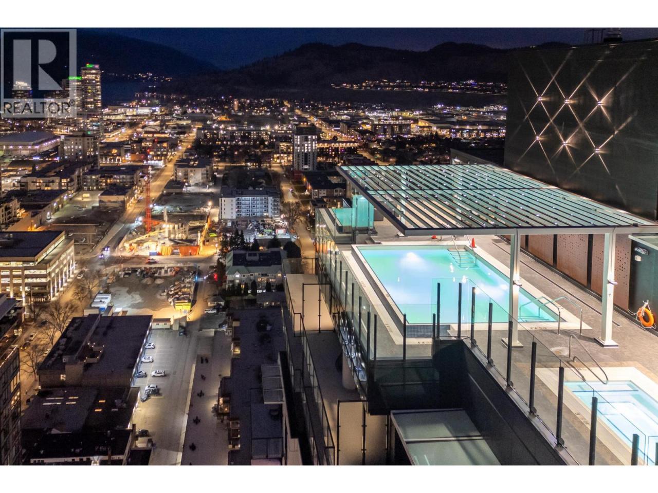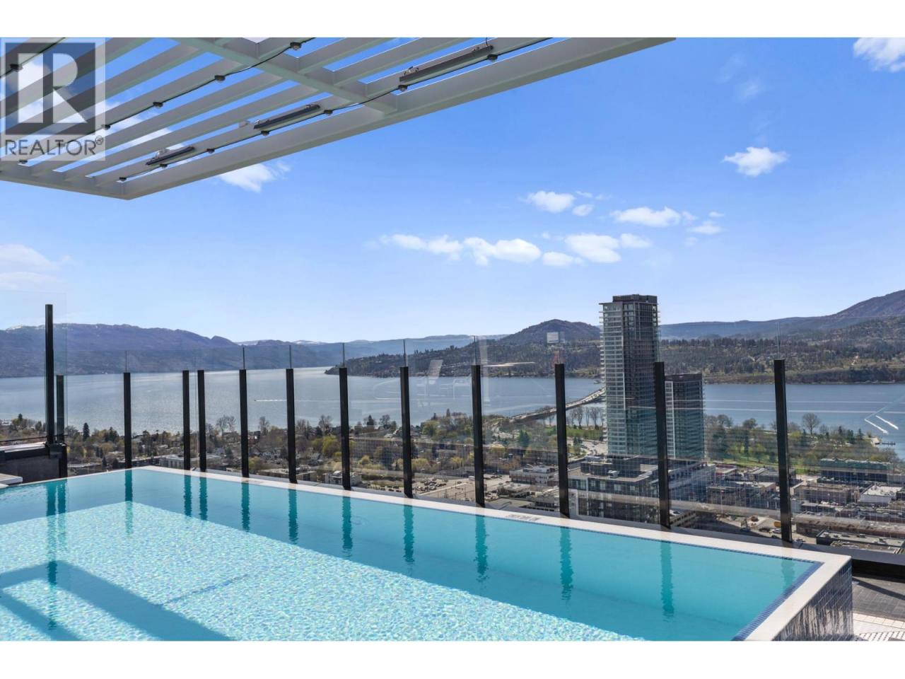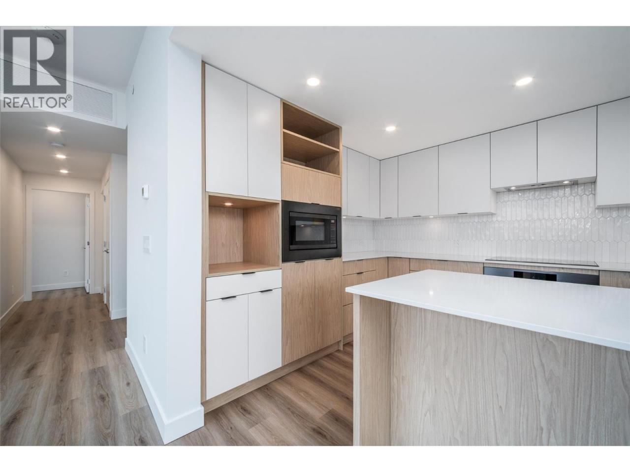 This 2 bedroom, 2 bath PENTHOUSE spans 998 sq. ft. and features a modern natural palette, luxury vinyl plank flooring, and high-end finishes throughout. The bright open-concept layout is framed by walls of windows showcasing sweeping lake, mountain, and city views. The chef’s kitchen boasts UPGRADED Bosch appliances including an induction cooktop, ultra quiet dishwasher, beautiful fridge/freezer and a beverage fridge. There is a large island with bar seating, built-in pantry, charging cubby/coffee station and generous storage, flowing seamlessly into the spacious living area. Step through dual sliding doors to the HUGE 330sqft partially covered deck - perfect for entertaining or unwinding, with a glass railing to take in all of the views. The primary suite includes a walk-in closet and sleek ensuite with walk-in shower, while the second bedroom is paired with a stylish 4-piece bath with tiled tub/shower combo. Enjoy in-suite laundry, pet-friendly living with no height restrictions, two parking stalls (one with EV charger) and storage. Residents have access to world-class amenities including a ROOFTOP POOL and HOT TUB (just a staircase away), outdoor BBQs, fire tables, lounge areas, fitness center, community garden, bocce court, and a dog run with wash station. Downtown living doesn’t get better than this! Just a few blocks from the beach and steps from shops, restaurants, and urban living, Bertram at Bernard offers the ultimate downtown lifestyle. (id:6769)