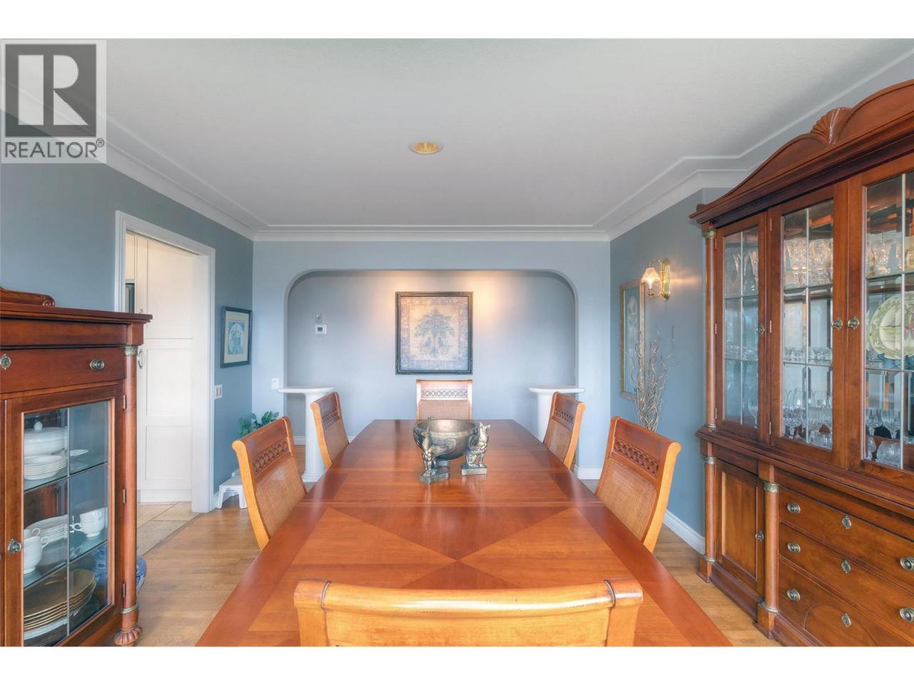 Set on a quiet cul-de-sac in the desirable Dilworth Mountain community, this spacious 4,799 sq. ft. walk-out rancher offers an exceptional blend of space, privacy, and panoramic views. Thoughtfully designed for main-level living, this immaculately maintained residence captures sweeping views of the valley, city, and surrounding mountains from nearly every principal room. The chef’s kitchen is both functional and elegant, appointed with granite countertops, soft-close cabinetry, premium KitchenAid appliances, and a charming bay-window breakfast nook. Seamless indoor-outdoor flow leads to a covered upper deck. The main floor also features a vaulted-ceiling family room with a gas fireplace, a formal dining area, a versatile office or bedroom, and a generously sized primary suite with a private 5-piece ensuite. The fully finished walk-out lower level extends the home’s appeal, offering two spacious bedrooms, a renovated bath, a large recreation room, and an impressive theatre with coffered ceilings and a private kitchenette. Outside, the covered lower patio with hot tub invites quiet relaxation, while the expansive, tiered backyard—complete with mature landscaping and underground irrigation—offers space for a future pool. Situated on a rare, oversized lot in one of Kelowna’s most coveted neighbourhoods, this home blends timeless comfort with boundless potential. Just minutes to downtown, top schools, golf, and trail networks—this is Dilworth living at its finest. (id:6769)