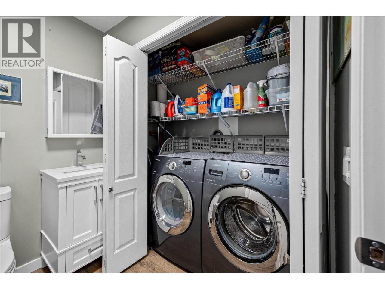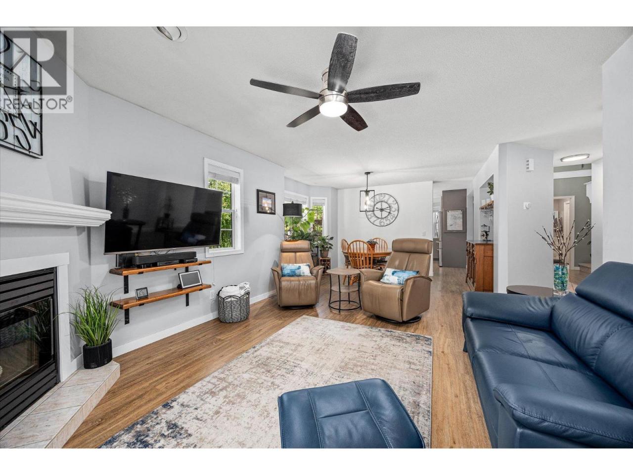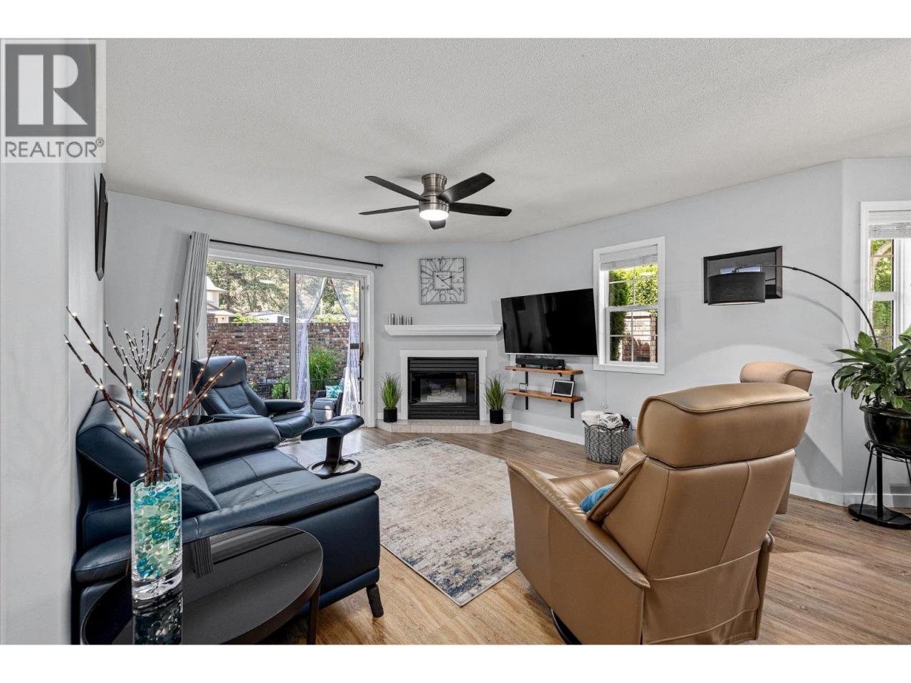 BEAUTIFULLY UPDATED CORNER UNIT AT CHELSEA GARDENS! Upon entry, you're greeted by an airy foyer, overlooked by the upstairs loft. To your right is the premium chef’s kitchen with quartz counters, dimmable under-cabinet lighting, a rolling island, stainless steel appliances, and counter-to-ceiling & counter-to-floor cabinets with custom pull-out drawers. From the kitchen, you step into the living and dining areas, filled with natural light from well-placed windows throughout, as well as through the sliding glass doors leading to the sizeable patio, set in an ideal corner location that enhances privacy. The main floor also features a combined powder/laundry room and, of course, the sizeable primary bedroom, which looks out to the green space and boasts a luxurious 5-piece ensuite with quartz counters, his-and-hers sinks, an upgraded toilet, a soaking tub/shower combo, and vinyl flooring. Upstairs, the home offers a lofted rec room (ideal for a home office or gym), two additional bedrooms, and another full bathroom with tasteful upgrades. The roof was replaced in 2024, the home has PEX piping, and ceiling fans have been added in every bedroom as well as the living room. Residents at Chelsea Gardens enjoy an excellent location with easy access to schools, outdoor recreation, Kelowna International Airport, UBCO, restaurants, and more! All details regarding the updates have been provided by the seller. More info available upon request. (id:6769)
