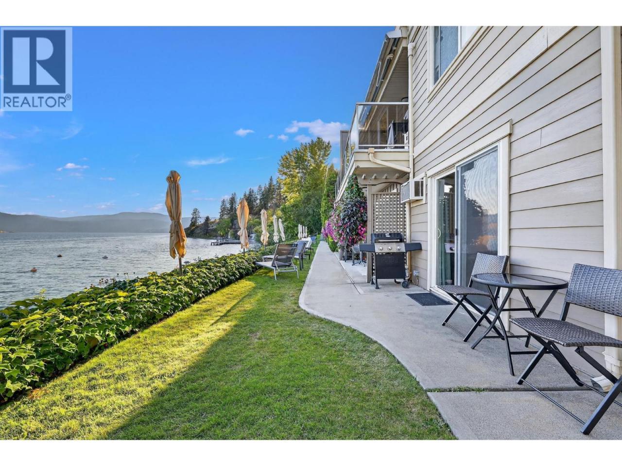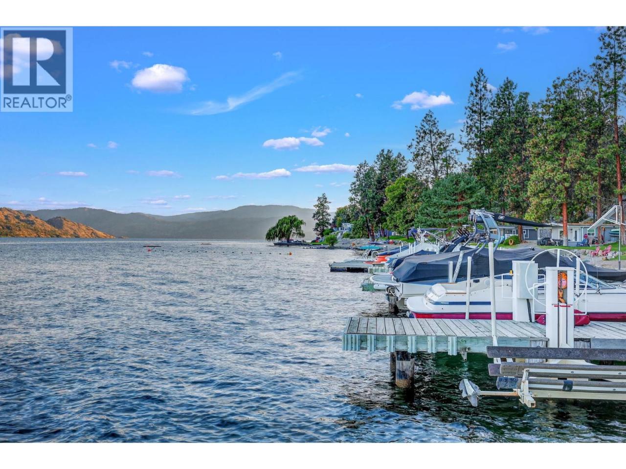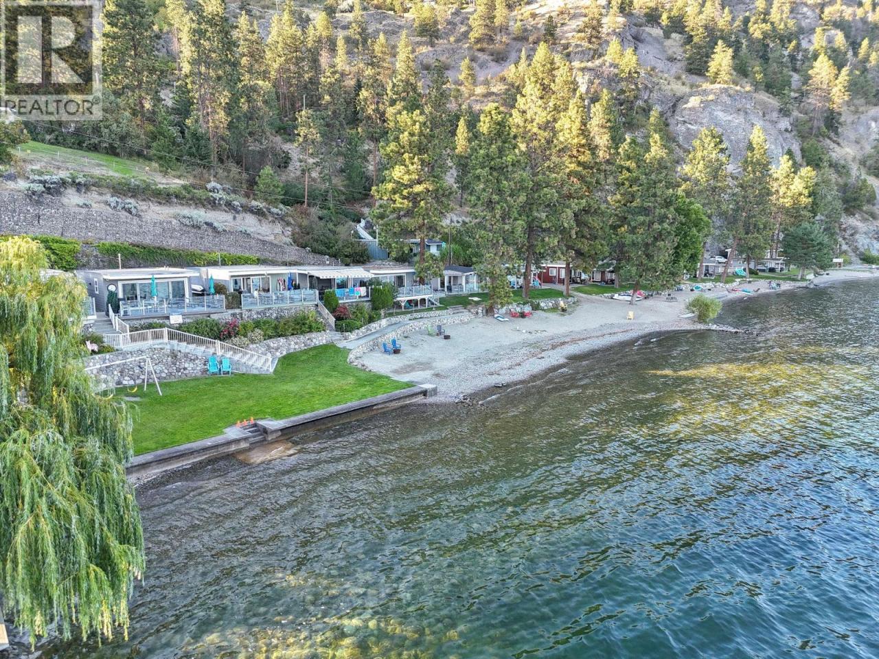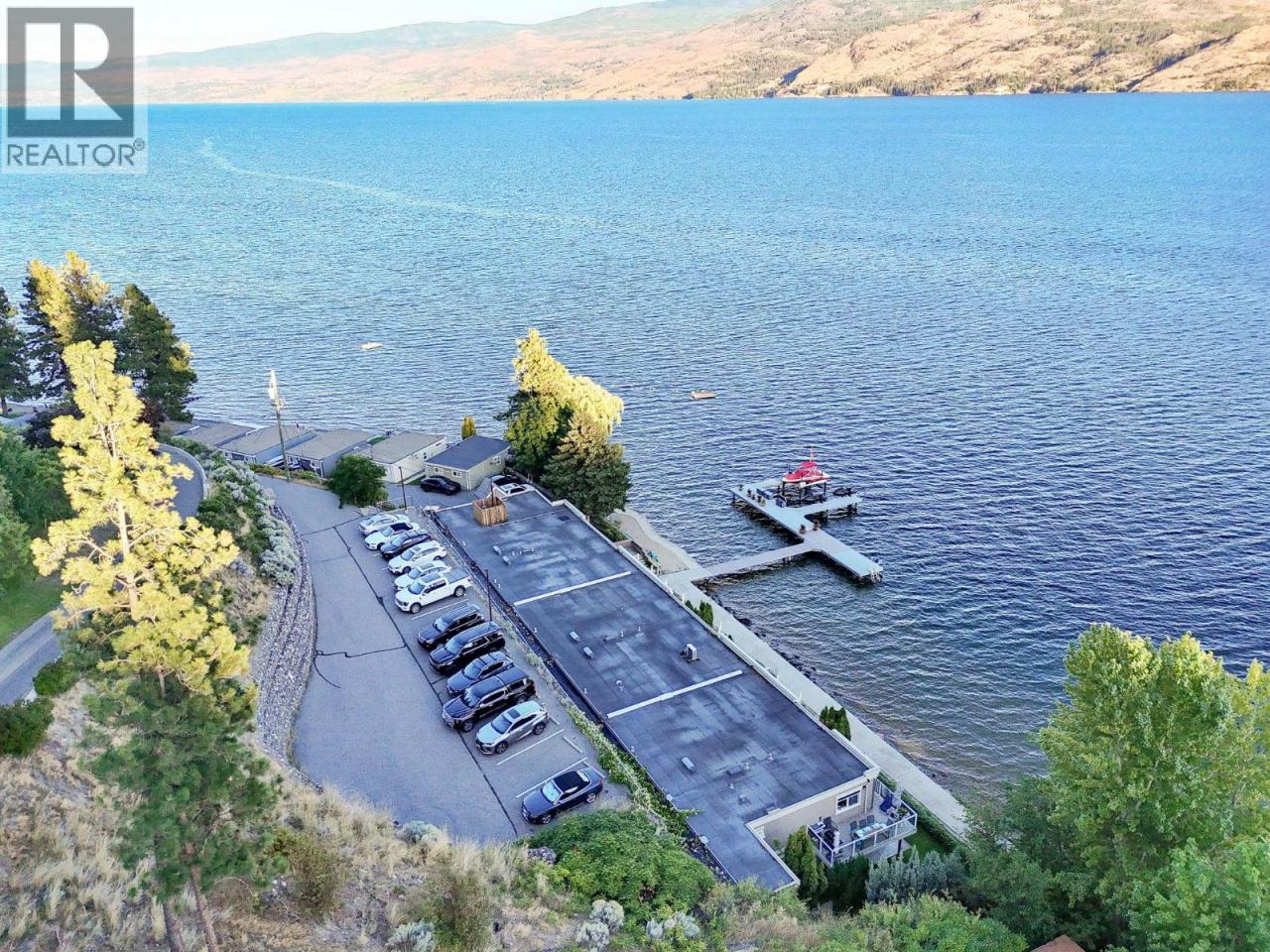 Own your own piece of Okanagan lake front! Best kept secret in the area. This open concept, air conditioned condo in a secure gated community has everything you need to spend your summers on the lake. Sleeps 4, fully furnished, with a new hide a bed, a murphy bed with a new mattress, newer smart TV, tables, chairs and even pots, pans, dishware, glasses, cutlery and a BBQ. New laminate flooring this past year. Wake upright beside the lake and enjoy the lakefront breeze while having a morning cup of coffee on your patio beside the water. Extra storage and 1 assigned parking spot. The resort life comes with many amenities such as boat moorage in the private marina, a clubhouse, private shared dock, boat launch, boat trailer parking, fire pits, coin laundry and ice machine. Telus fibre optic WIFI is available and for extra security the marina and guest parking is monitored by cameras. Great for rental income when you aren't using it yourself. Come see for yourself what lake life can be like. Don't miss out on this great opportunity. These units don't come up for sale very often. (id:6769)