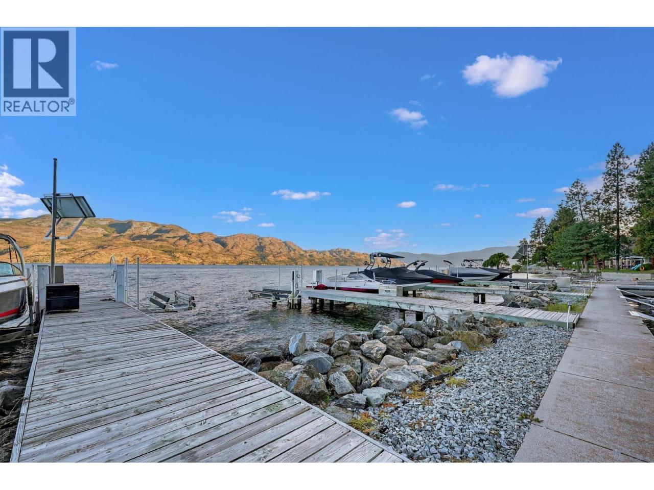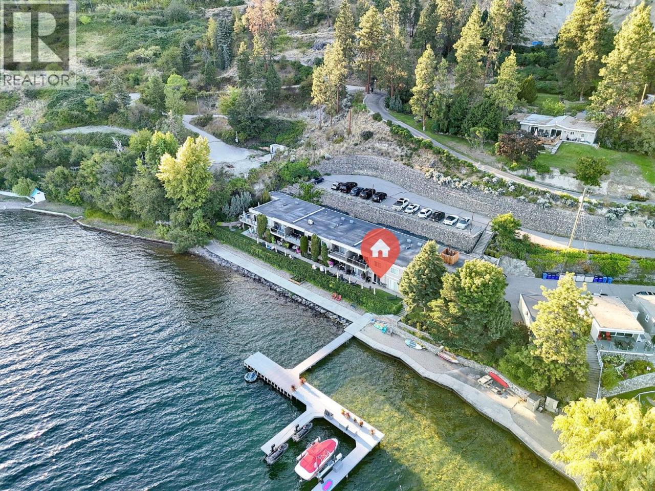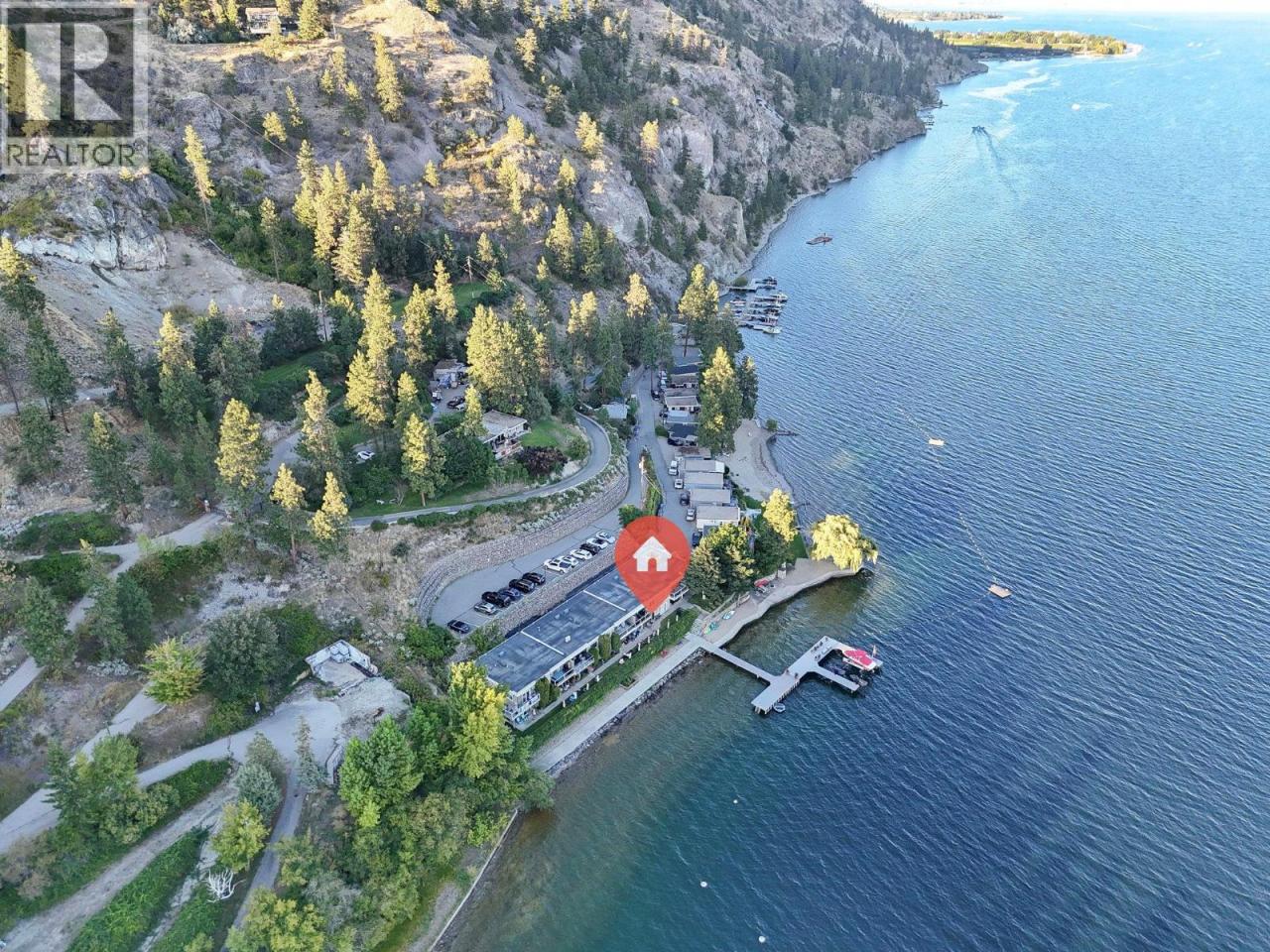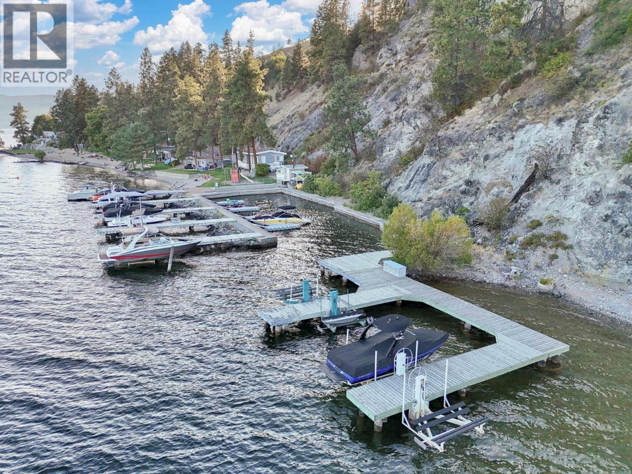 Own your own piece of Okanagan lake front! Best kept secret in the area. This open concept, air conditioned condo in a secure gated community has everything you need to spend your summers on the lake. Sleeps 4, fully furnished, with a new hide a bed, a murphy bed with a new mattress, newer smart TV, tables, chairs and even pots, pans, dishware, glasses, cutlery and a BBQ. New laminate flooring this past year. Wake upright beside the lake and enjoy the lakefront breeze while having a morning cup of coffee on your patio beside the water. Extra storage and 1 assigned parking spot. The resort life comes with many amenities such as boat moorage in the private marina, a clubhouse, private shared dock, boat launch, boat trailer parking, fire pits, coin laundry and ice machine. Telus fibre optic WIFI is available and for extra security the marina and guest parking is monitored by cameras. Great for rental income when you aren't using it yourself. Come see for yourself what lake life can be like. Don't miss out on this great opportunity. These units don't come up for sale very often. (id:6769)