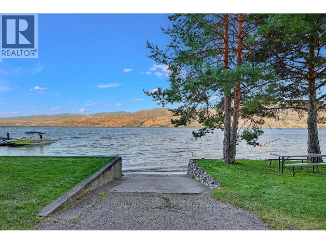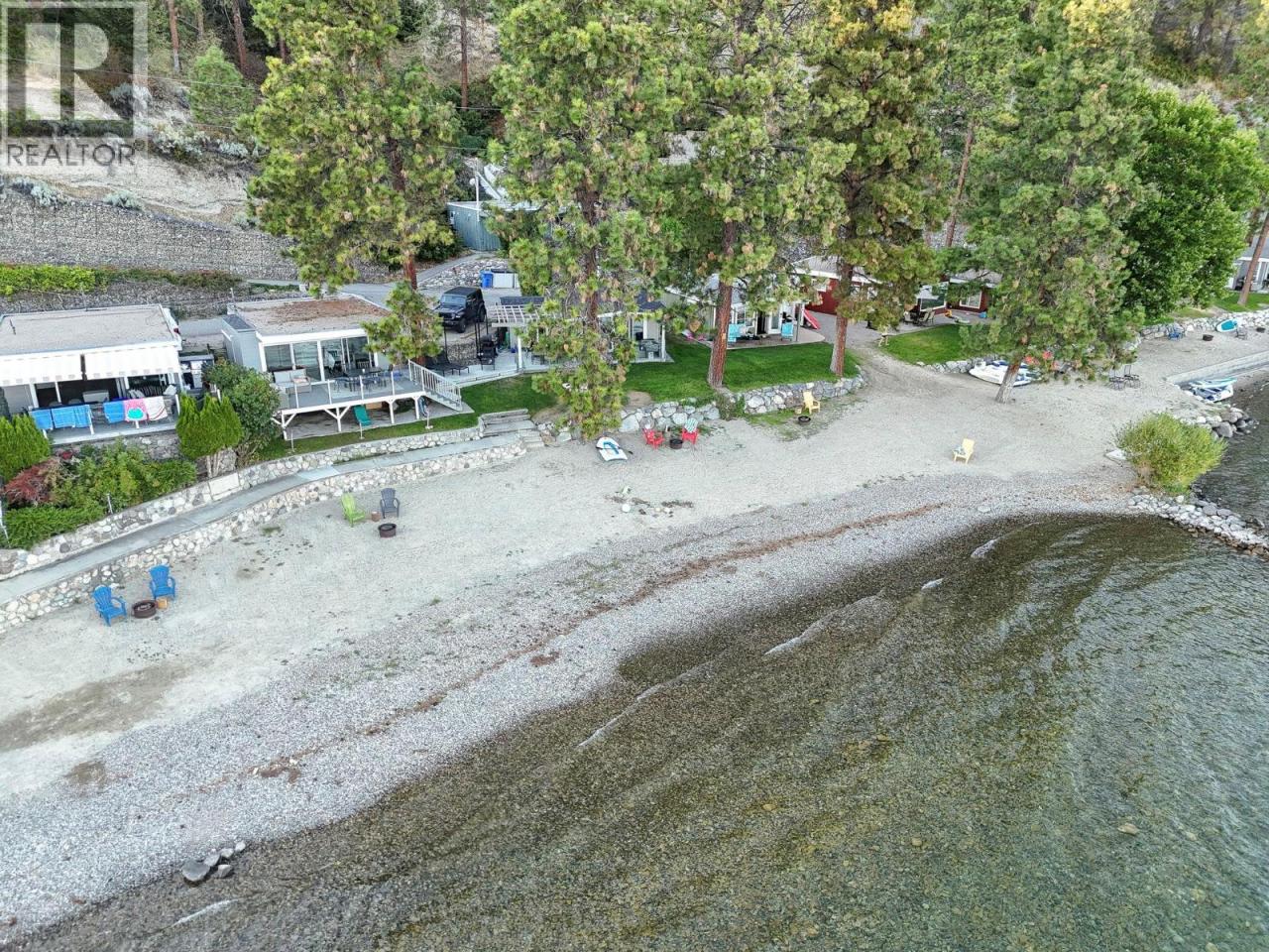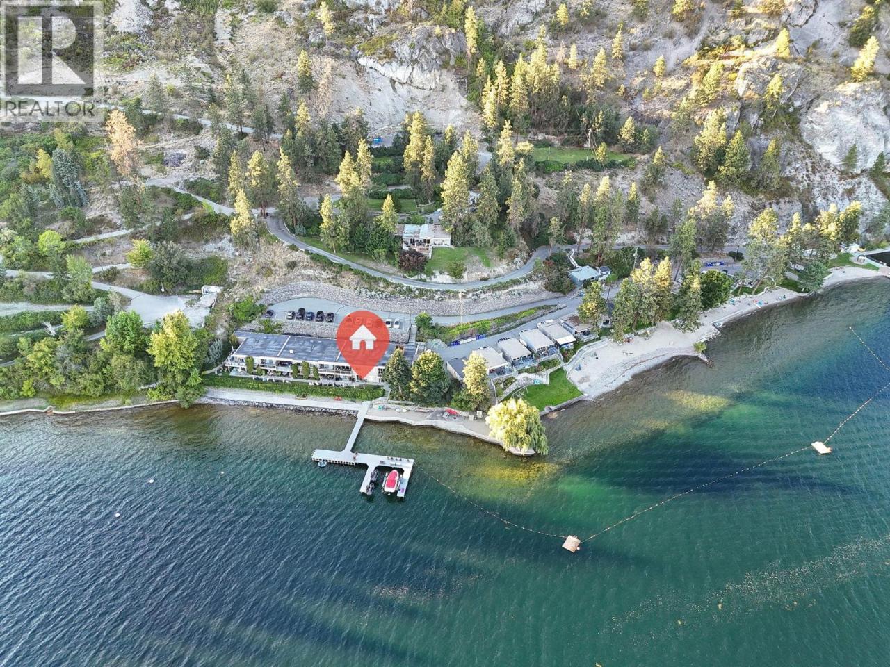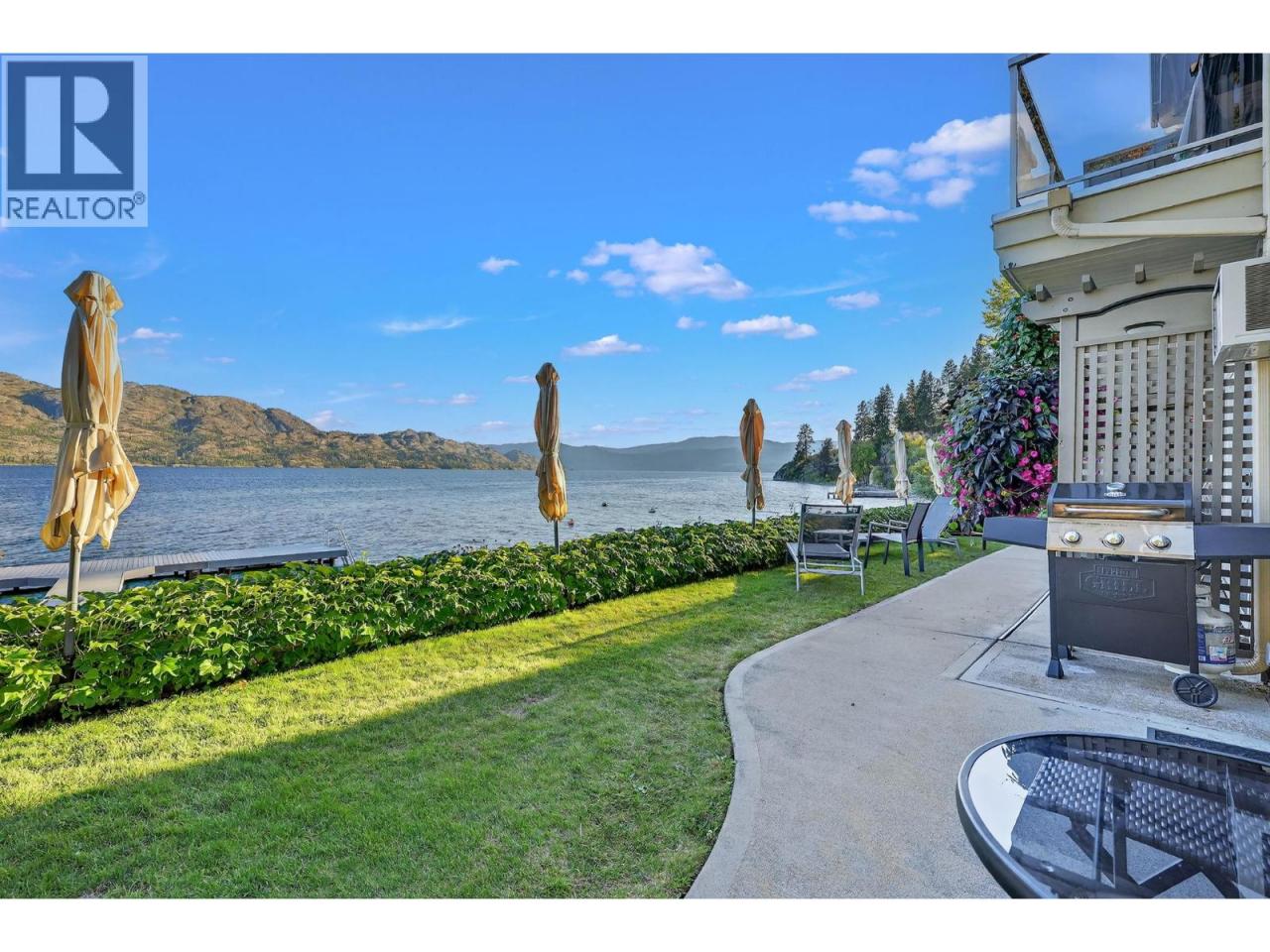 Own your own piece of Okanagan lake front! Best kept secret in the area. This open concept, air conditioned condo in a secure gated community has everything you need to spend your summers on the lake. Sleeps 4, fully furnished, with a new hide a bed, a murphy bed with a new mattress, newer smart TV, tables, chairs and even pots, pans, dishware, glasses, cutlery and a BBQ. New laminate flooring this past year. Wake upright beside the lake and enjoy the lakefront breeze while having a morning cup of coffee on your patio beside the water. Extra storage and 1 assigned parking spot. The resort life comes with many amenities such as boat moorage in the private marina, a clubhouse, private shared dock, boat launch, boat trailer parking, fire pits, coin laundry and ice machine. Telus fibre optic WIFI is available and for extra security the marina and guest parking is monitored by cameras. Great for rental income when you aren't using it yourself. Come see for yourself what lake life can be like. Don't miss out on this great opportunity. These units don't come up for sale very often. (id:6769)