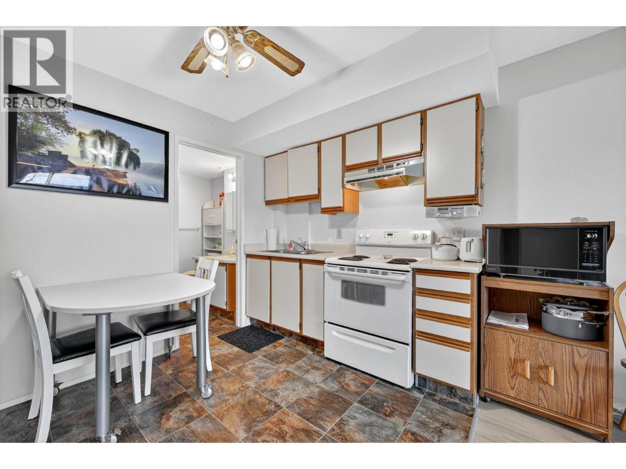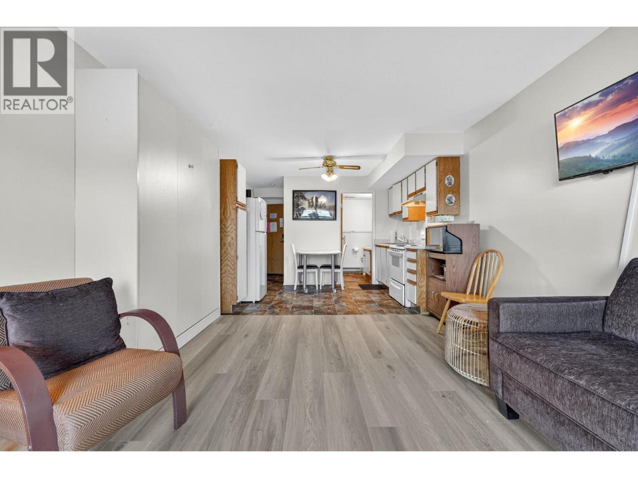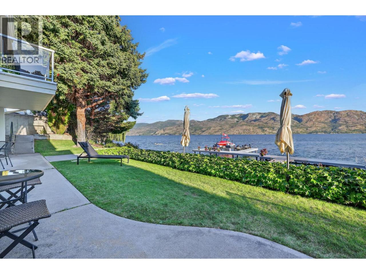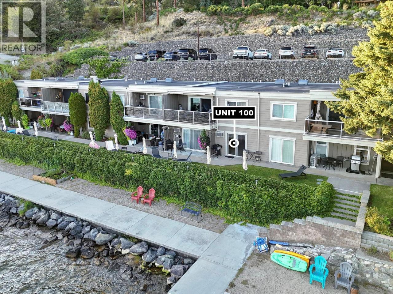 Own your own piece of Okanagan lake front! Best kept secret in the area. This open concept, air conditioned condo in a secure gated community has everything you need to spend your summers on the lake. Sleeps 4, fully furnished, with a new hide a bed, a murphy bed with a new mattress, newer smart TV, tables, chairs and even pots, pans, dishware, glasses, cutlery and a BBQ. New laminate flooring this past year. Wake upright beside the lake and enjoy the lakefront breeze while having a morning cup of coffee on your patio beside the water. Extra storage and 1 assigned parking spot. The resort life comes with many amenities such as boat moorage in the private marina, a clubhouse, private shared dock, boat launch, boat trailer parking, fire pits, coin laundry and ice machine. Telus fibre optic WIFI is available and for extra security the marina and guest parking is monitored by cameras. Great for rental income when you aren't using it yourself. Come see for yourself what lake life can be like. Don't miss out on this great opportunity. These units don't come up for sale very often. (id:6769)