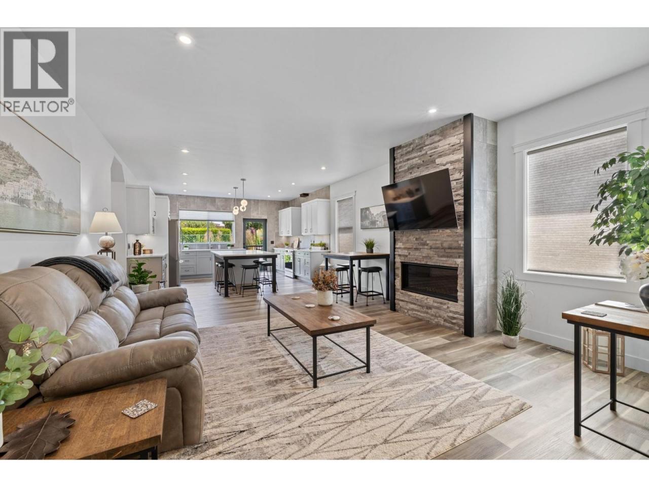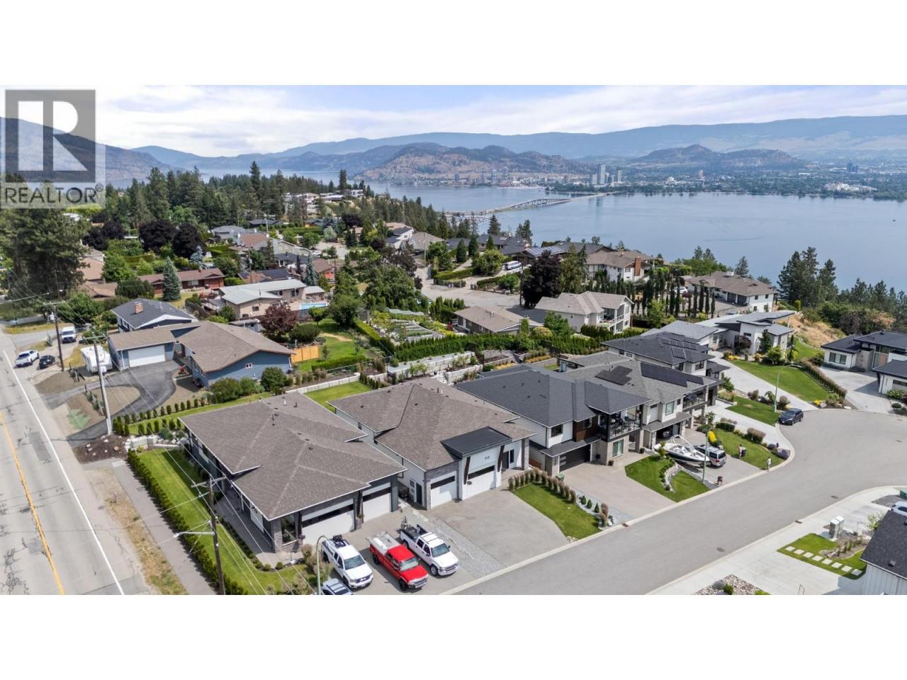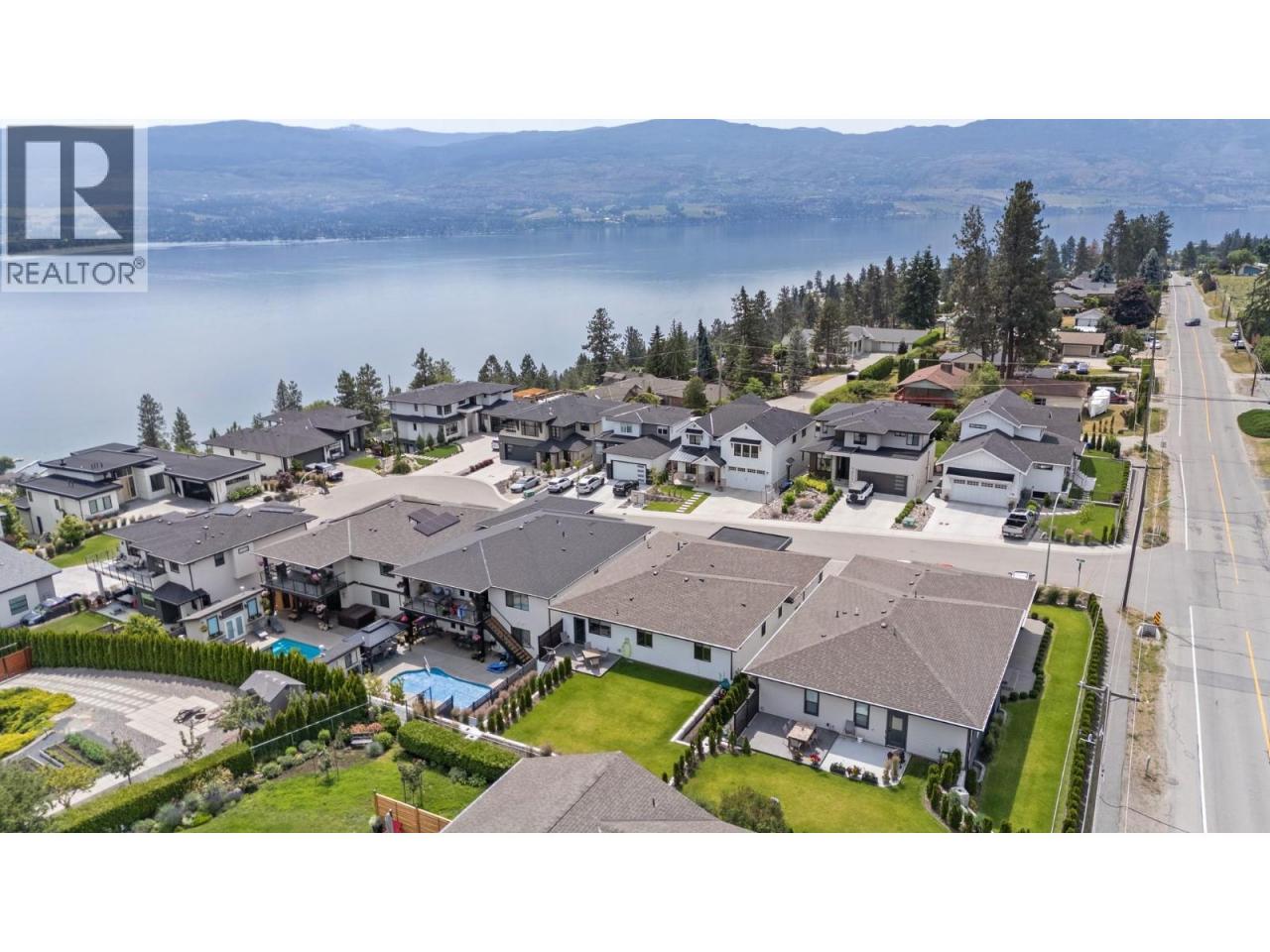 Perched in the highly sought-after Lakeview Heights neighbourhood, this home offers an elevated position with beautiful lake views, quick access to town & exceptional garage space—an ideal combination for modern Okanagan living. With 3,420 sq. ft. of thoughtfully designed space, this home delivers outstanding versatility, including a 1-bedroom legal suite, an oversized garage & a backyard with room for a pool. The main level is bright & welcoming, featuring an open-concept living area anchored by a cozy gas fireplace & seamless access to the backyard & covered patio—perfect for indoor-outdoor entertaining. The spacious, family-friendly kitchen is designed for gathering, complete with a large work island, ample cabinetry & generous storage. The primary bedroom offers a private retreat with a walk-in closet & a luxurious 5-piece ensuite showcasing a double vanity, soaker tub & separate tiled shower. Two additional bedrooms, a full bathroom, a convenient powder room & laundry complete the main floor. Downstairs, the lower level includes a rec room, an additional bedroom & a full bathroom for the main home, along with a self-contained 845 sq. ft. legal suite featuring its own entrance & laundry—ideal for extended family or excellent rental income potential. Set in a prime Lakeview Heights location just minutes to shopping, schools, wineries, beaches and downtown West Kelowna, this home delivers elevated views, everyday convenience and space to grow—all in one exceptional package. (id:6769)