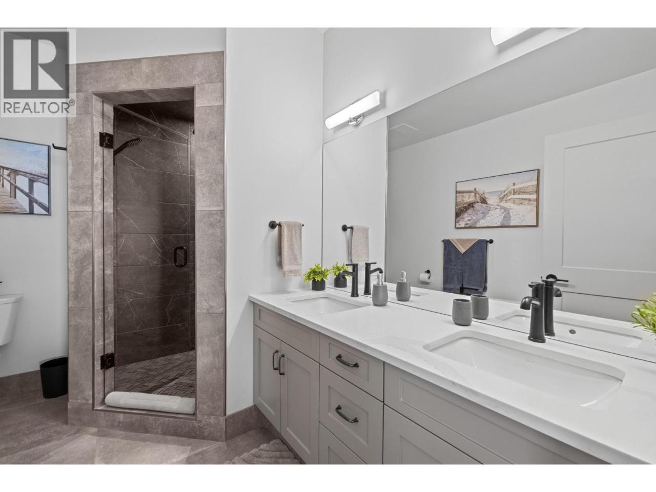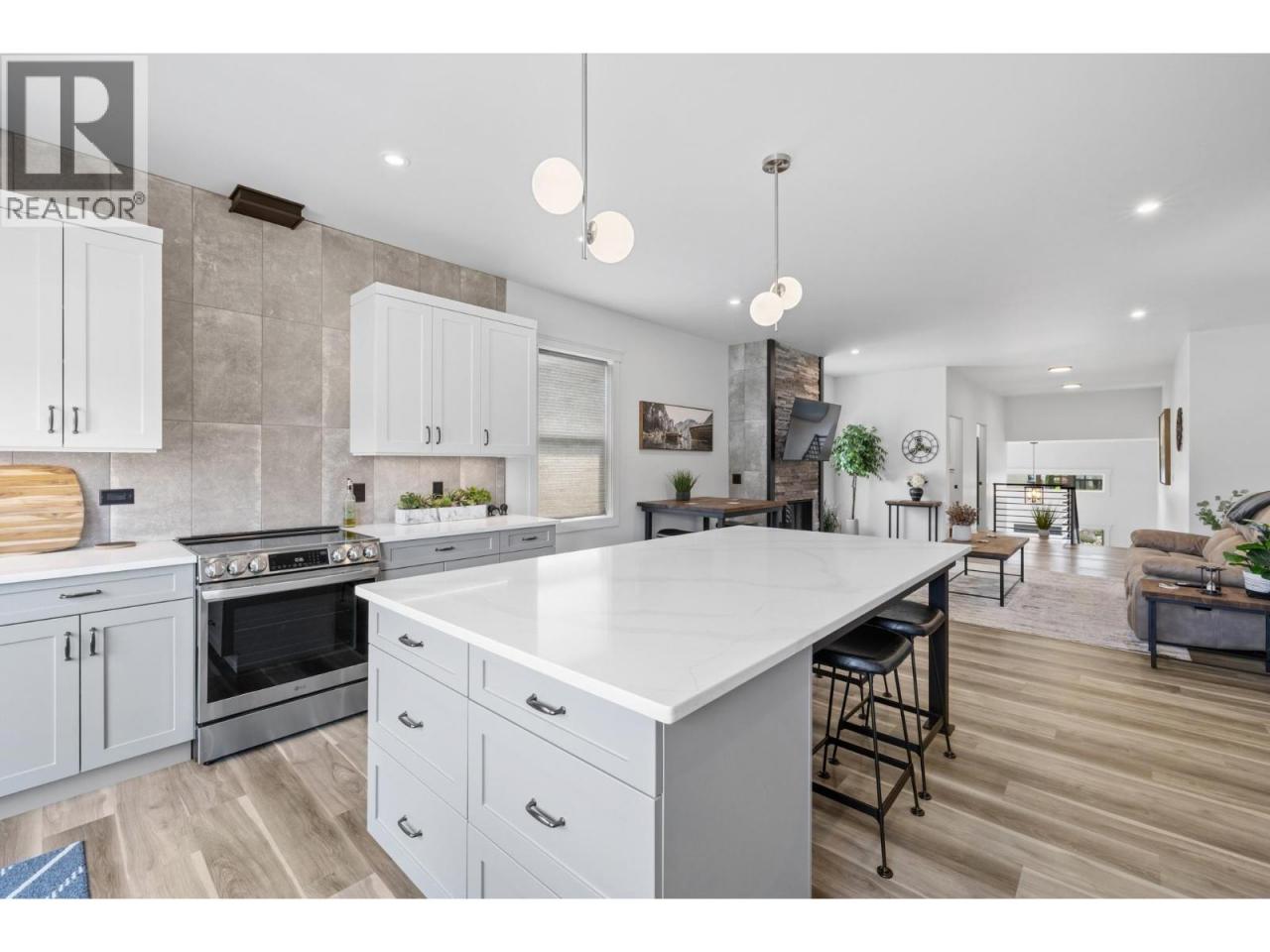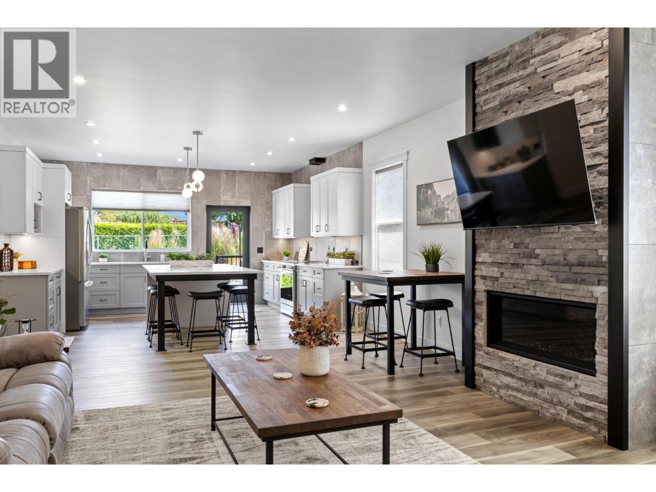Perched in the highly sought-after Lakeview Heights neighbourhood, this home offers an elevated position with beautiful lake views, quick access to town & exceptional garage space—an ideal combination for modern Okanagan living. With 3,420 sq. ft. of thoughtfully designed space, this home delivers outstanding versatility, including a 1-bedroom legal suite, an oversized garage & a backyard with room for a pool. The main level is bright & welcoming, featuring an open-concept living area anchored by a cozy gas fireplace & seamless access to the backyard & covered patio—perfect for indoor-outdoor entertaining. The spacious, family-friendly kitchen is designed for gathering, complete with a large work island, ample cabinetry & generous storage. The primary bedroom offers a private retreat with a walk-in closet & a luxurious 5-piece ensuite showcasing a double vanity, soaker tub & separate tiled shower. Two additional bedrooms, a full bathroom, a convenient powder room & laundry complete the main floor. Downstairs, the lower level includes a rec room, an additional bedroom & a full bathroom for the main home, along with a self-contained 845 sq. ft. legal suite featuring its own entrance & laundry—ideal for extended family or excellent rental income potential. Set in a prime Lakeview Heights location just minutes to shopping, schools, wineries, beaches and downtown West Kelowna, this home delivers elevated views, everyday convenience and space to grow—all in one exceptional package. (id:6769)