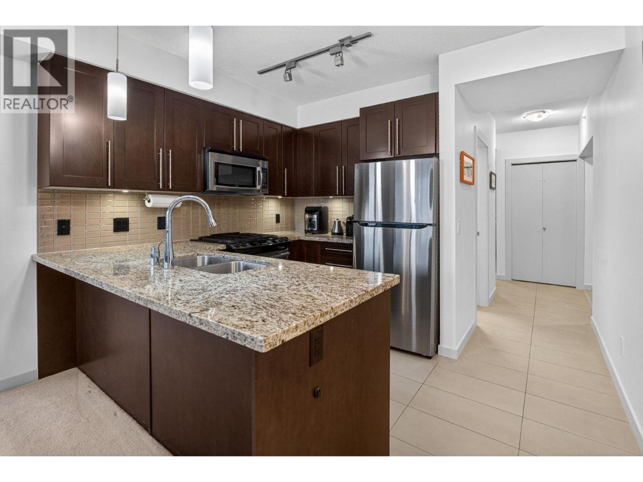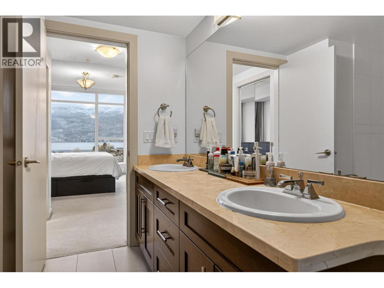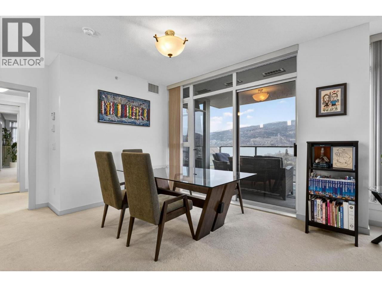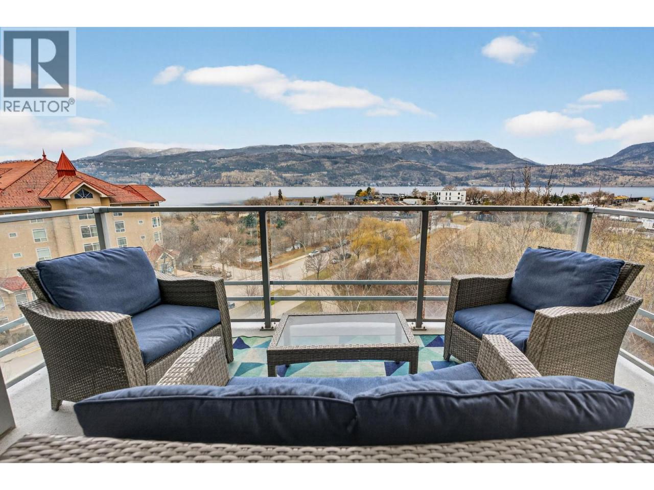 Gorgeous 8th-floor condo in the Skye Tower at Waterscapes. This 2-bedroom plus den, 2-bath home offers a sought-after layout with Okanagan Lake and mountain views. Floor-to-ceiling windows fill the space with natural light, paired with a modern kitchen featuring granite countertops, stainless steel appliances, a gas stovetop range, and peninsula seating. The living room includes a built-in electric fireplace and access to a lakeview patio. Bedrooms are thoughtfully separated for privacy, with the primary suite offering a walk-in closet and 5-piece ensuite. Includes one parking stall and storage locker. Enjoy resort-style amenities with a gym, outdoor pool, and two hot tubs, steps from the waterfront and downtown Kelowna. (id:6769)