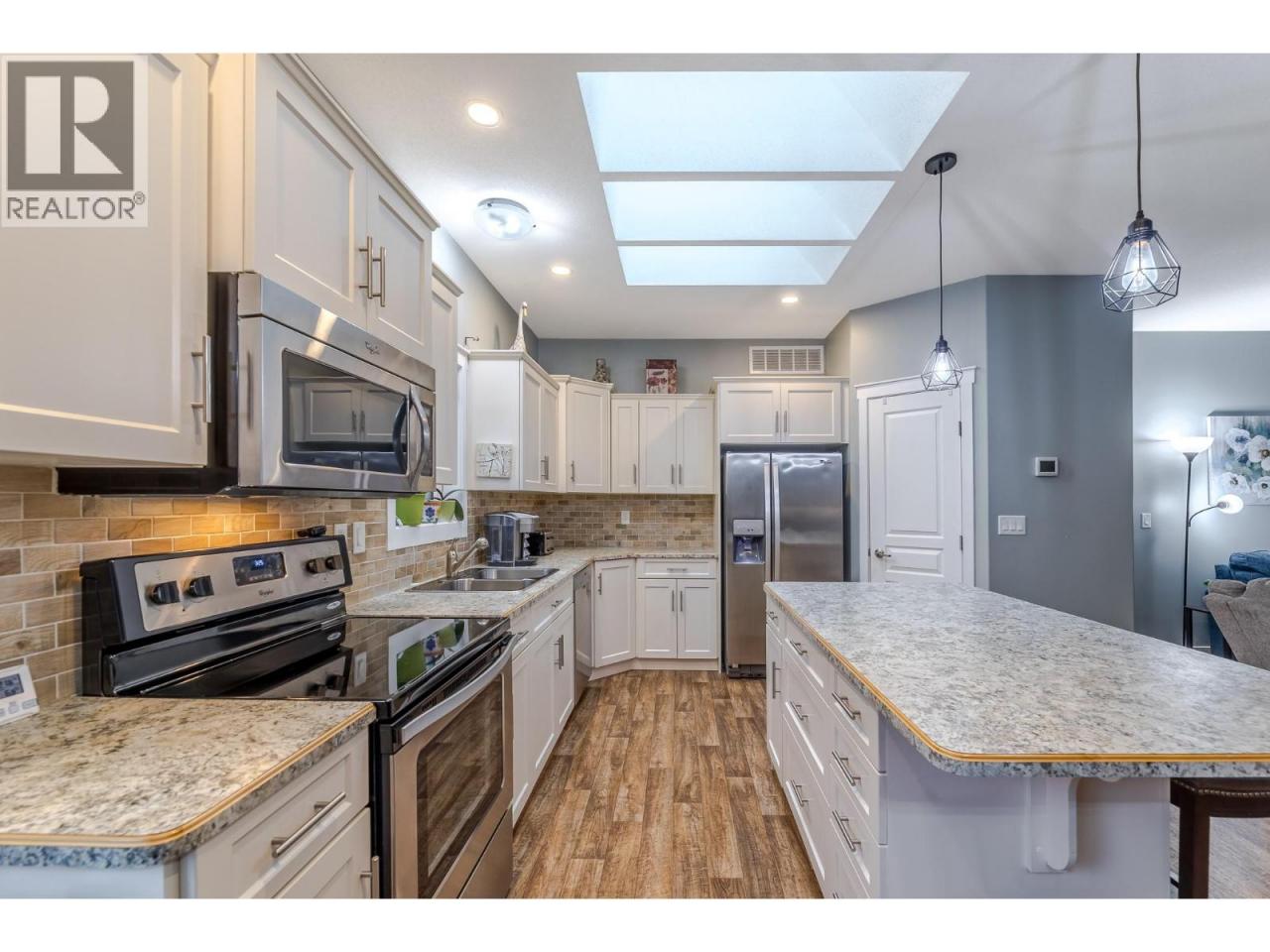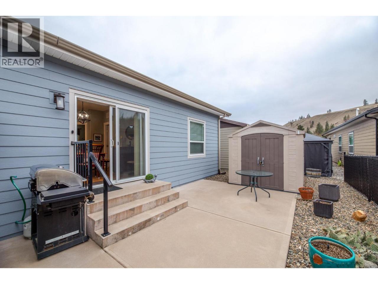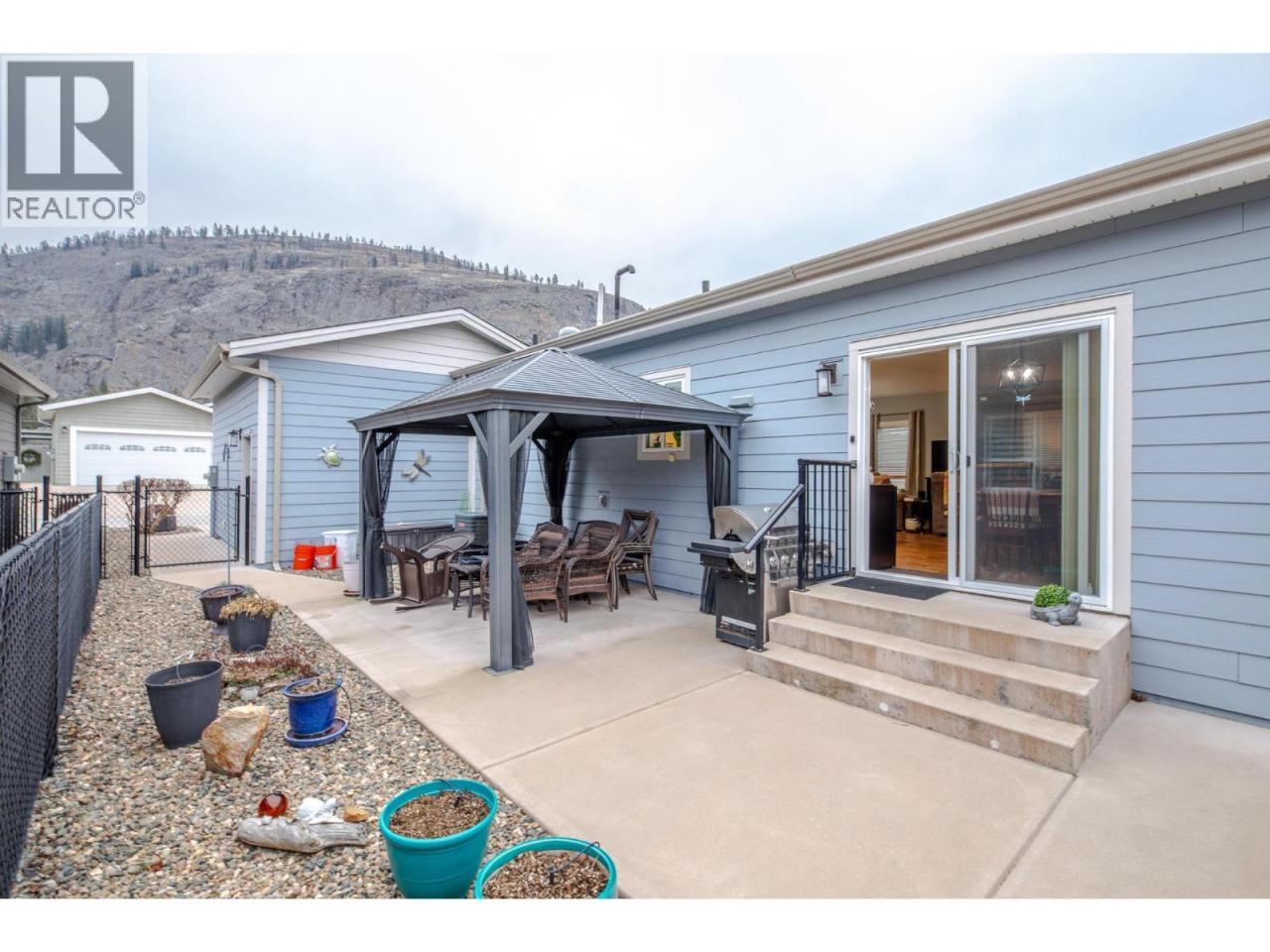 Immaculate 3-bedroom, 2-bathroom home offering just under 1,400 sq. ft. of thoughtfully designed main-level living with a full double car garage and flat driveway. The interior features a warm, inviting colour palette with ivory cabinetry, a full island kitchen, walk-in pantry, skylights throughout, and excellent storage. Quality upgrades include hot water on demand, a grid-tied solar panel system, underground irrigation, and a spacious concrete patio with metal gazebo—ideal for enjoying the South Okanagan climate. The generous primary suite offers walk-in closets with custom built-ins and a beautifully finished ensuite with double vanities, millwork, and a 5’ walk-in shower. The third bedroom includes solid French doors and a closet, making it well suited as an office or activity room. Bedrooms are spacious and well laid out. A deluxe main-level laundry room includes a high-efficiency washer and dryer, laundry sink, and additional storage. Durable wood-plank style linoleum flooring is paired with comfortable carpeted bedrooms. Custom exterior paint complements the desert-inspired landscape, with picturesque views of McIntyre Bluff. The complex features a private riverfront walking trail along the Okanagan River, offering a peaceful connection to nature while remaining close to the comfort and security of a well-built home. Secure RV parking is available in the complex for an additional fee, with pad rental at $750 per month. Quick possession available. (id:6769)