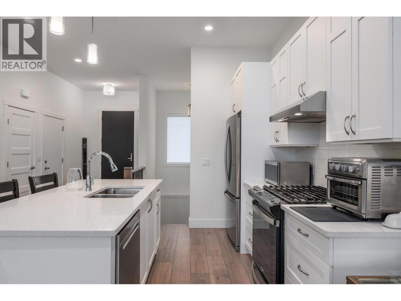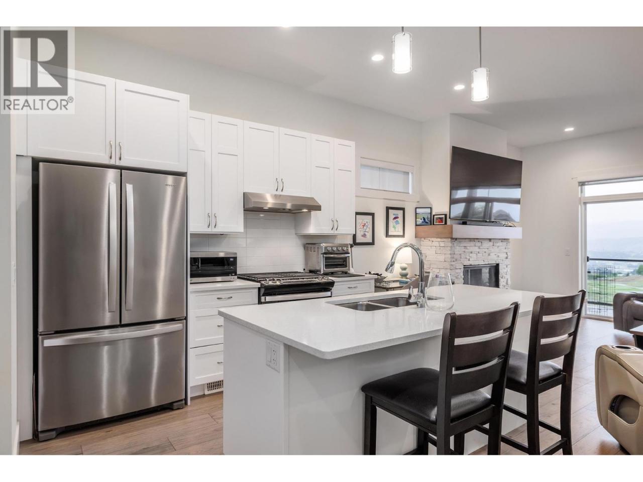 $200/MO LEASE CREDIT FOR THE 1ST 12MONTHS | $100/MO CREDT FOR THE 2ND 12MONTHS. Effortless living overlooking Tower Ranch Golf Course. Welcome to Solstice at Tower Ranch, where serene, low-maintenance living meets panoramic fairway views and upscale finishes. This 2 bedroom plus recreation room, 3 bathroom leasehold home is perfectly positioned to capture the sunsets, lake views, and sweeping green space from both levels. Thoughtfully upgraded throughout, the home features engineered hardwood flooring, quartz countertops, heated tile floors, and soft-close cabinetry. The bright kitchen is a chef’s delight, with a gas range, centre island, and Whirlpool stainless steel appliances. The open-concept living area centers around a fireplace with stone surround and flows seamlessly to a covered upper deck with gas BBQ hookup, making it ideal for year-round entertaining. The spacious primary retreat offers deck access, a custom closet, and a spa-inspired en-suite with a floating vanity with two undermount sinks and tiled glass door shower. Downstairs, enjoy a bright walk-out recreation room, guest bedroom with walk-in closet, and a private lower patio with city, lake, and golf course views. Extras include central air conditioning, central vacuum, HRV system, and single garage with driveway parking. Just minutes to YLW, wineries, and hiking trails, this is Okanagan living made easy. (38743735)"" (id:6769)