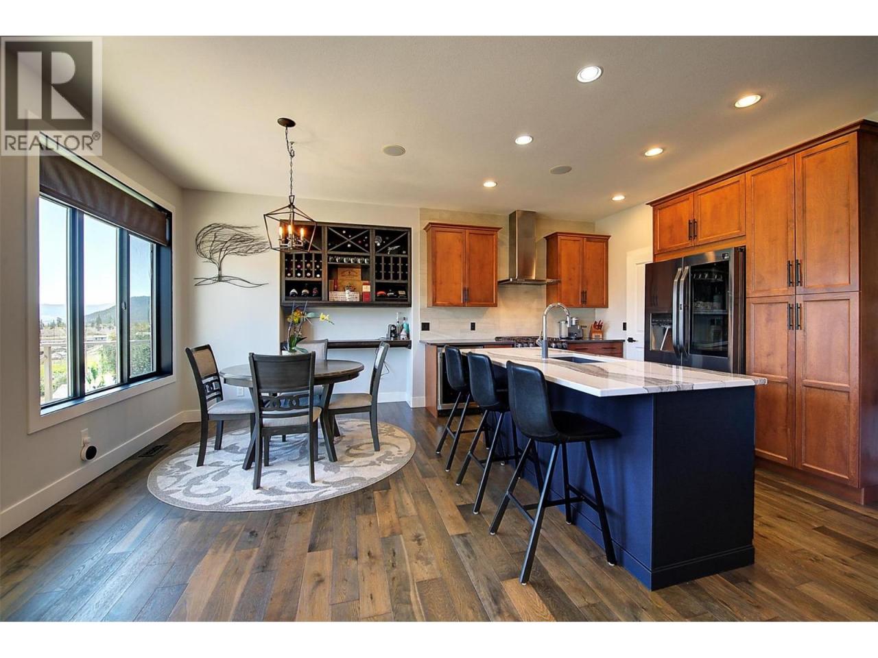 Quick Possession Available. Welcome to this beautifully updated 4-bedroom walkout rancher in scenic Lake Country, complete with a fully self-contained 1-bedroom executive legal suite (717 sq ft) featuring brand-new carpet installed July 8, 2025 — perfect for extended family, guests, or added rental income. The main floor offers three spacious bedrooms, two full bathrooms, and a dedicated laundry area, with recent upgrades including new hardwood flooring and fresh carpet on the stairs and lower family room. The dining room now showcases a stylish wine and coffee bar, while the open-concept living space flows effortlessly into a bright, functional kitchen with quartz countertops, a large island, walk-in pantry, and upgraded stainless steel appliances, including a natural gas range. Step out from the living room onto the upper deck with gas BBQ hookup and take in sweeping views of the valley, surrounding mountains, and Lake Country farmland. A connecting staircase links the upper and lower decks for easy backyard access — perfect for pets and everyday convenience. Downstairs, unwind on the covered lower deck with your favourite drink and enjoy uninterrupted views of the rolling countryside. Located just minutes to town, 10 minutes to UBCO and the airport, and only 20 minutes to downtown Kelowna, this exceptional home delivers the perfect balance of comfort, flexibility, and location, ideal for families, investors, or those seeking space with income potential. (id:6769)