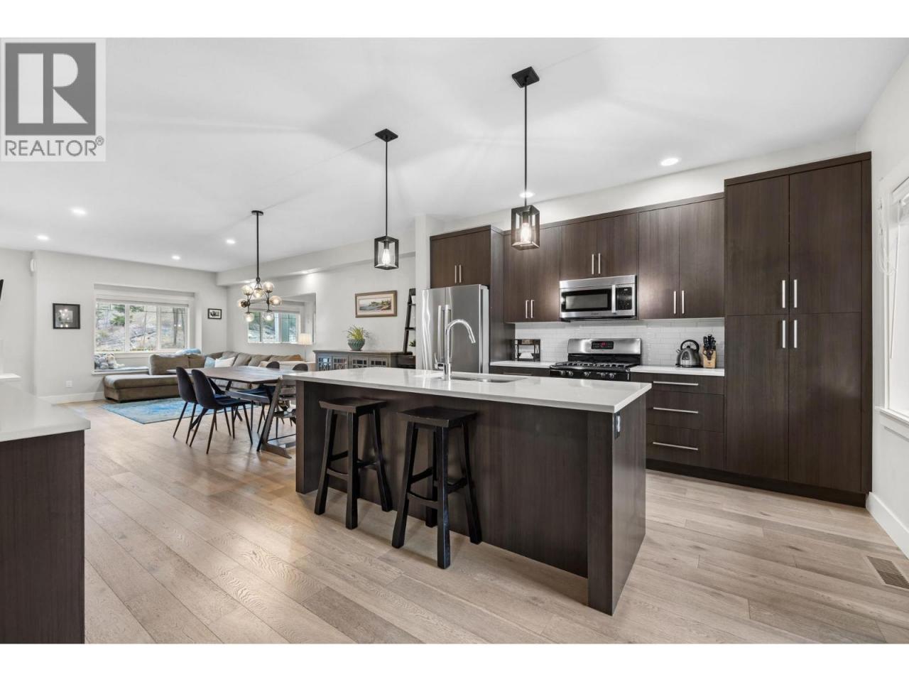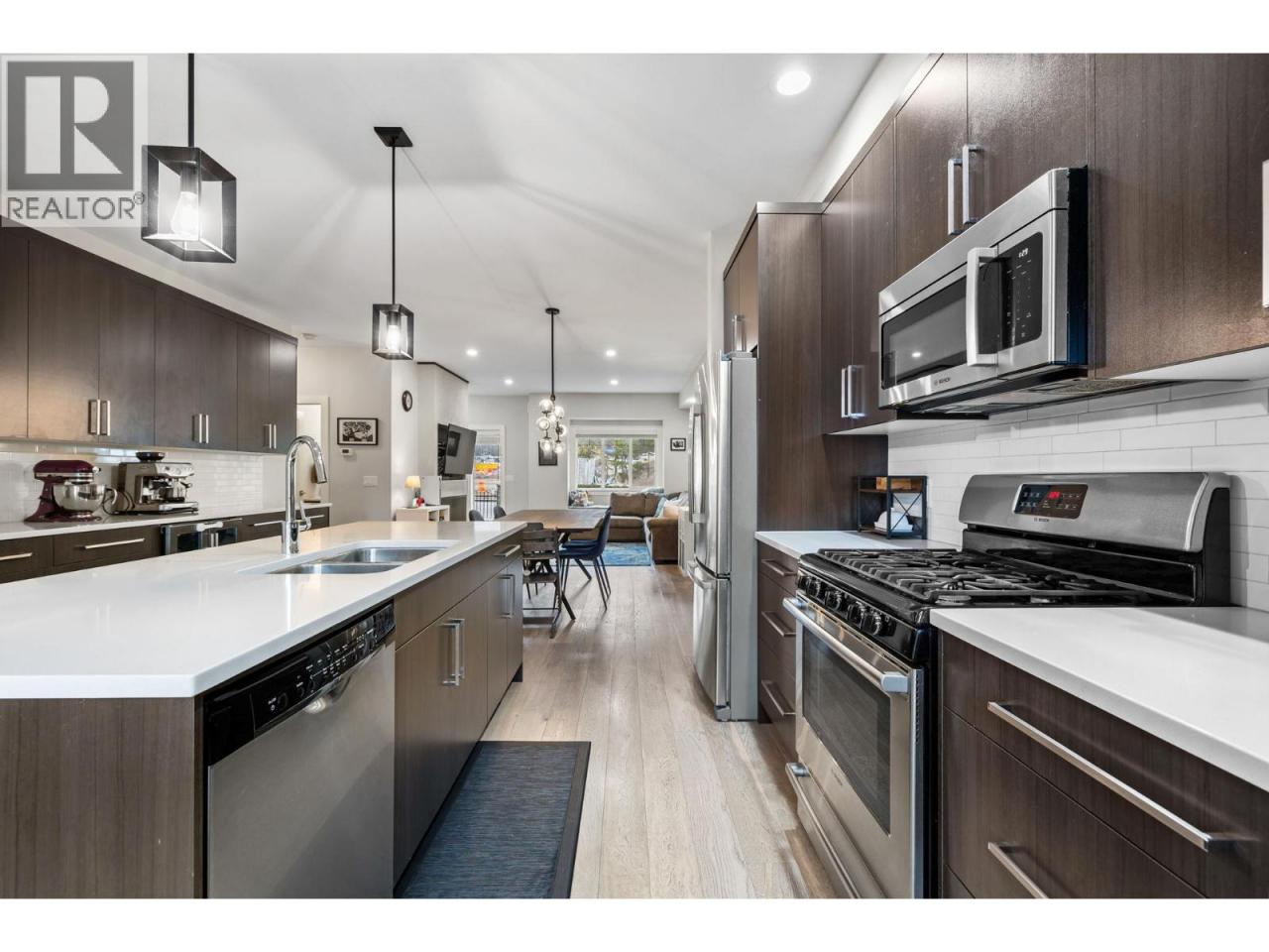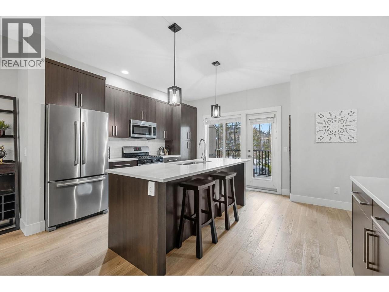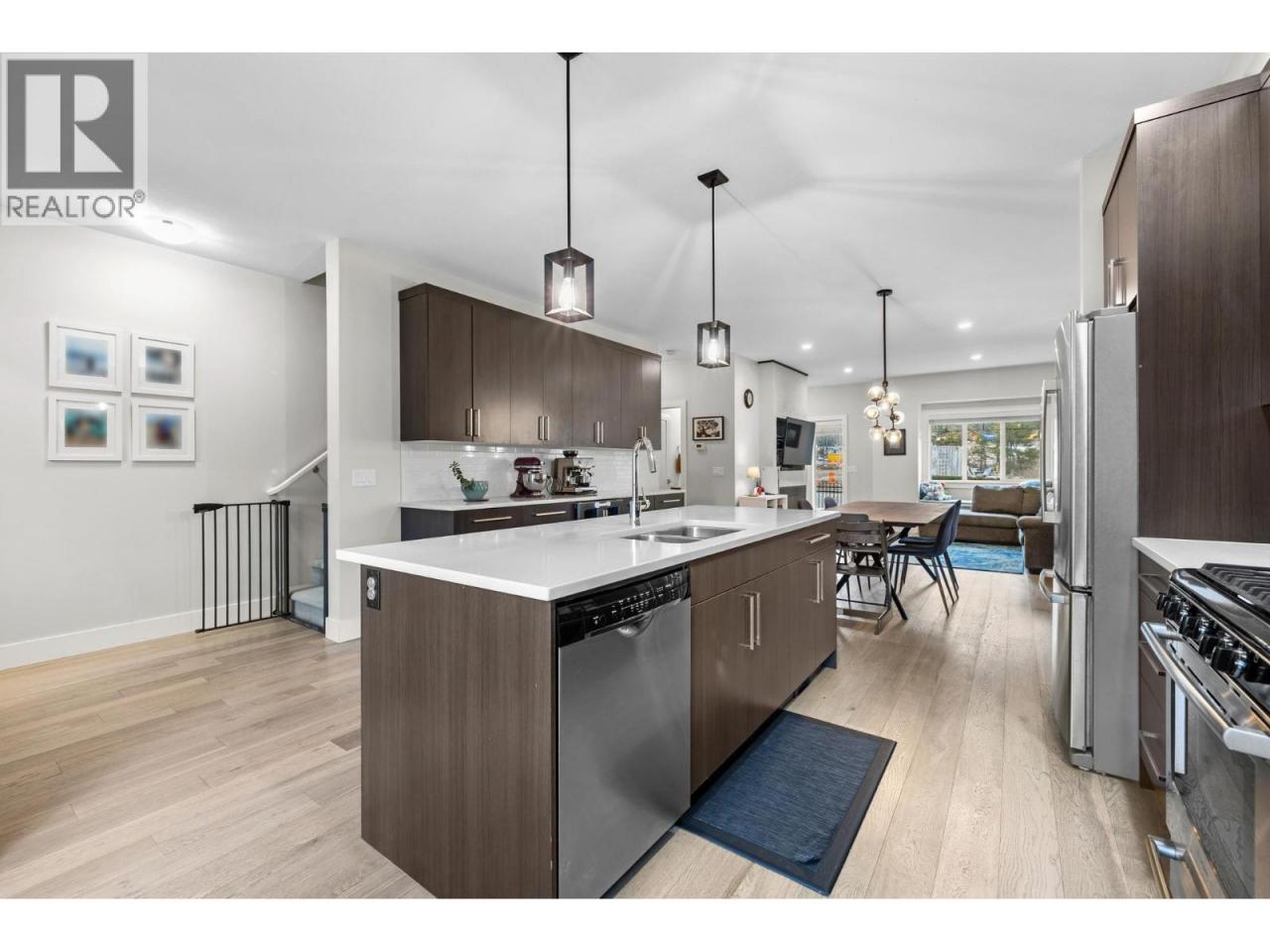 Welcome to Hidden Lake Lookout, a quaint and lovely townhouse community in the highly sought-after family friendly neighbourhood of Wilden. This stunning 3-bedroom, 2 1/2-bathroom home with a wonderful sightline of the local pond is perfect for people who love to live near nature but still prefer a location closer to town. Featuring the always popular “open concept” floor plan on the main, you’ll enjoy the flow of over 500 sqft of living & dining space with east and west facing views ensuring plenty of natural light throughout the day. The kitchen boasts sleek stone countertops, stainless steel appliances, and ample cabinet storage, making it the perfect space for both casual meals and entertaining guests. The upper level showcases a large primary bedroom with ensuite, two additional generous sized bedrooms, and a beautiful main bathroom. This property also features a large double tandem garage complete with a workshop space ideal for DIY projects or extra storage. You will also appreciate the lower utility costs with geothermal and natural gas heating & cooling systems, ensuring year-round comfort. Wilden's Future ""Market Square"" is under construction just down the street and will provide residents many exciting opportunities such as parkland, restaurants, shopping, and other lifestyle amenities including a new elementary school. Surrounded by nature but just 10 minutes from downtown Kelowna, the airport, and the university, get ready to enjoy the beauty of Wilden living! (id:6769)