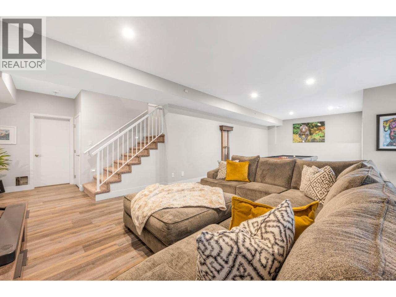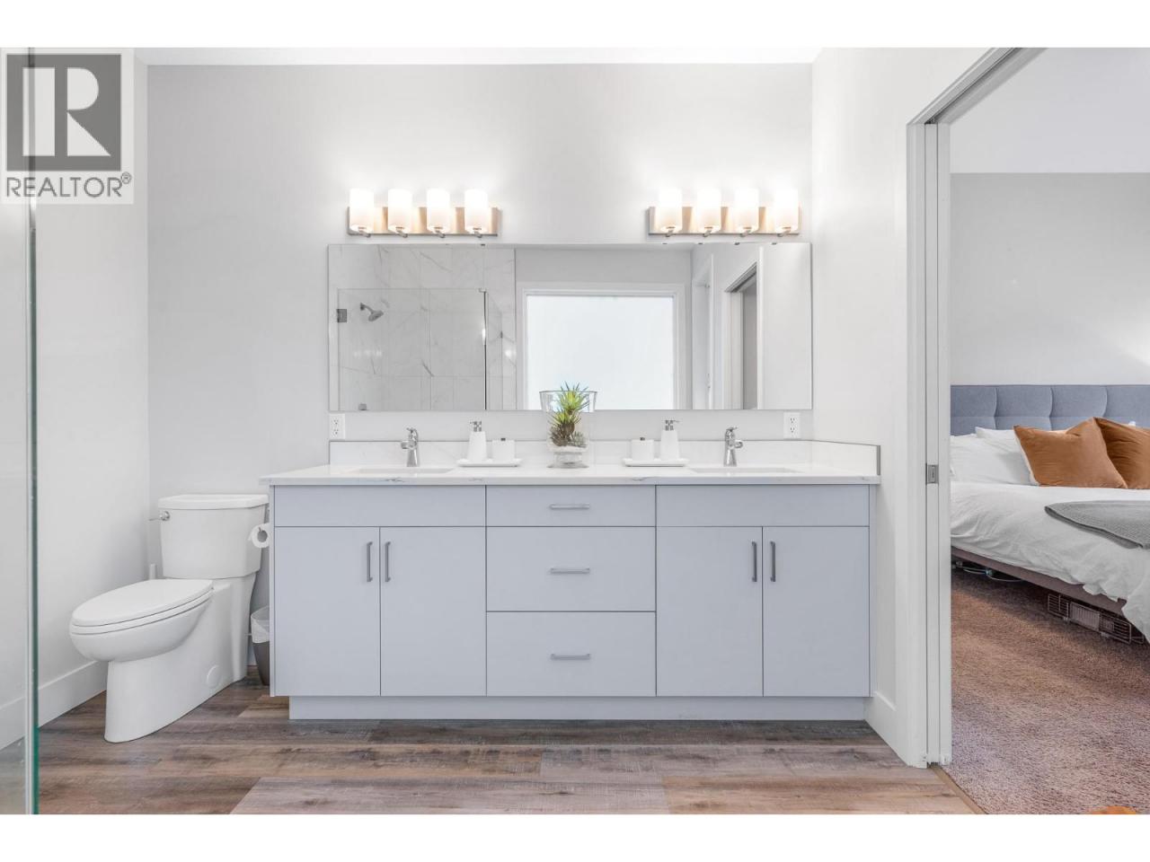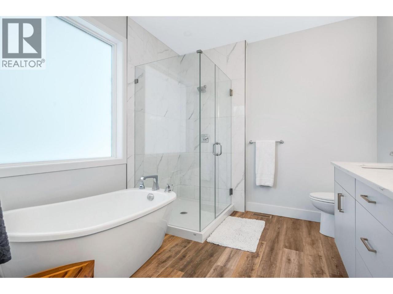 Set within the sought-after Canadian Lakeview Estates, this newly built walk-out rancher offers a refined blend of comfort, functionality, and lifestyle. Designed with entertaining in mind, the open main living area is filled with natural light and showcases a modern kitchen with stainless steel appliances, a generous island, and stone countertops. The adjoining living room is anchored by a gas fireplace feature wall and opens onto a large covered deck with beautiful mountain views. Thoughtful design details continue throughout the home, including three private en-suites that provide added privacy and convenience for family and guests. Residents enjoy exclusive access to a private beach featuring showers and a picnic area, tucked away on a quiet side street, along with a shared boat launch for easy lake access. Additional highlights include quartz countertops throughout, provisions for future boiler and in-floor heating, and pre-wiring for a hot tub and electric vehicle. The neighbourhood also offers a community park with tennis and pickleball courts, completing this exceptional lakeside lifestyle. (id:6769)