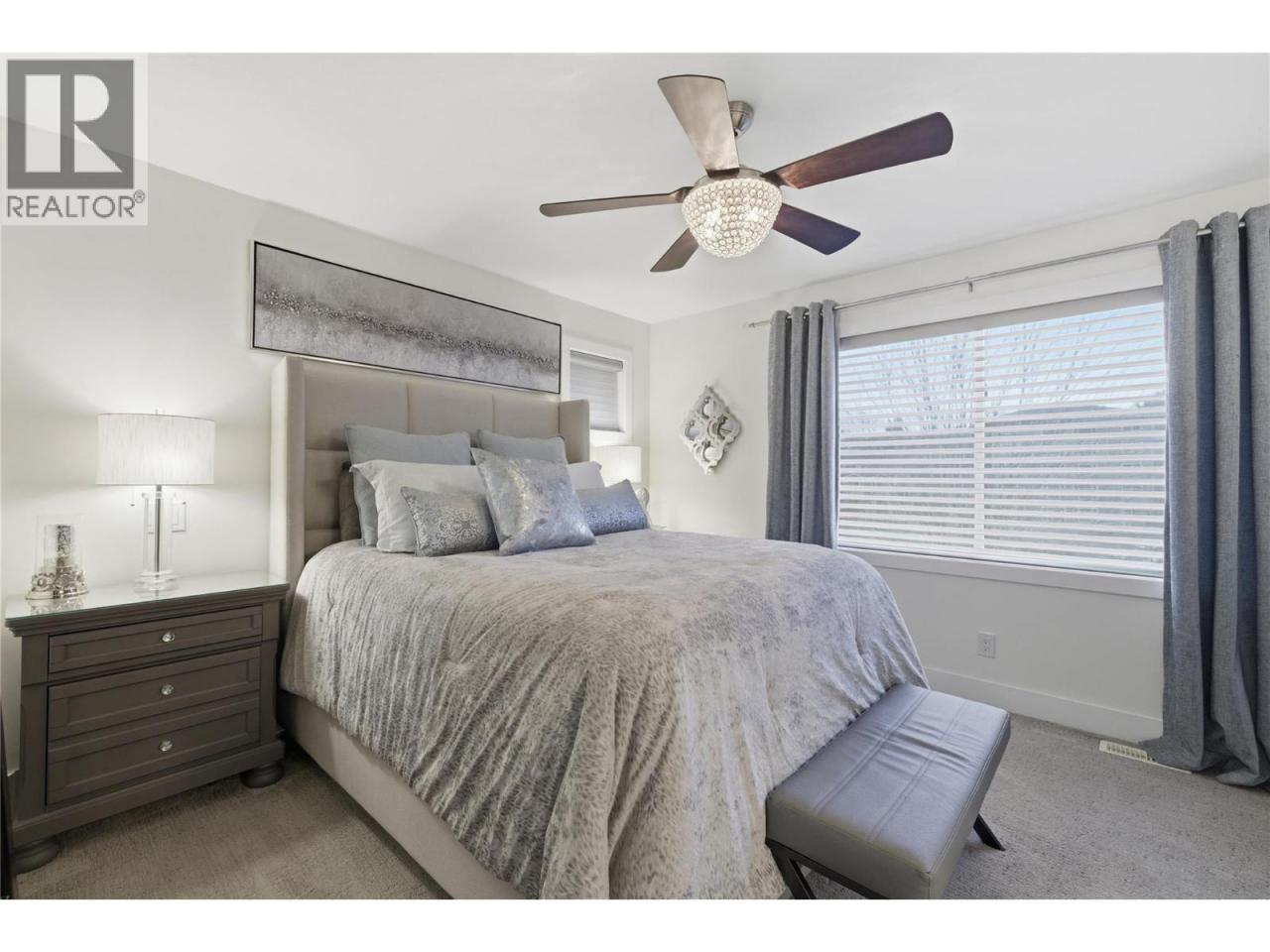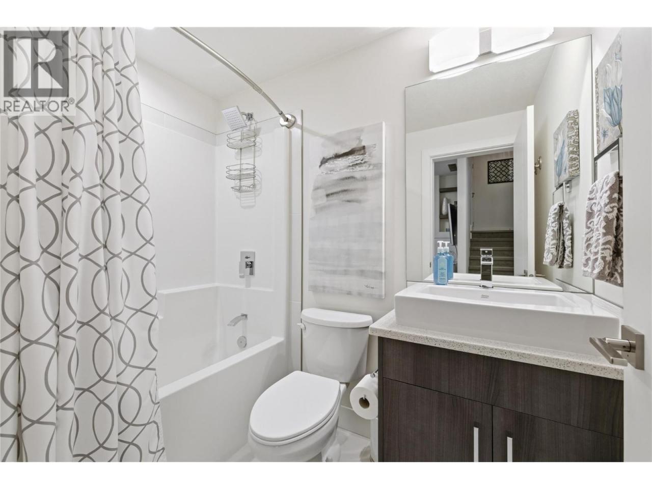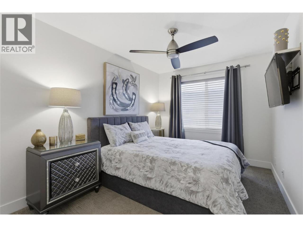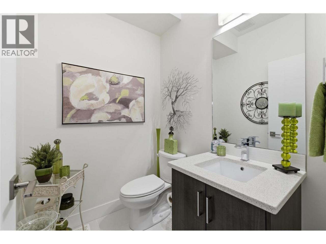 Bright and beautiful corner unit in the highly sought-after Grove development, offering modern lifestyle living in the heart of Glenmore. This like-new 3-bedroom, 4-bath townhome with a finished lower-level flex space is one of the largest units in the complex, blending comfort and style while being flooded with natural light throughout. High-end finishes include wide-plank engineered hardwood floors, high ceilings, and European-tiled bathrooms with luxurious fixtures. The open-concept main level showcases a chef’s kitchen with soft-close cabinetry, oversized island, quartz countertops, stainless steel appliances, and an electric fireplace in the living room. Two distinct outdoor living spaces enhance the home’s appeal: a covered deck off the kitchen—perfect for morning coffee—and a walk-up front patio ideal for entertaining. A heated double car garage and low strata fees add to the convenience. The finished lower-level flex space includes a full 4-piece bathroom and large walk-in closet, offering versatile options for guests, family, or work-from-home needs. Centrally located just steps to shopping, restaurants, Brandt’s Creek Linear Park, hiking trails, and the new Glenmore Recreation Park with skateboard park, pickleball courts, sports fields, and more. Close to Dr. Knox Middle School and three elementary schools. Don’t miss this opportunity for high-end, convenient Okanagan lifestyle living for the whole family. (id:6769)