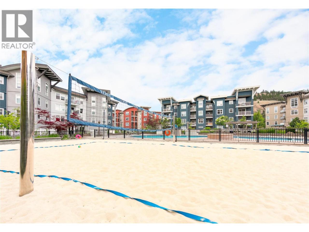 Top-floor corner unit at The Verve in a prime southeast position—quiet, private, and showcasing unobstructed views of Dilworth Mountain and the city skyline. With soaring 13-foot ceilings in the main living area, this home feels bright and spacious, enhanced by large windows that flood the space with natural light. The kitchen features granite countertops and brand-new stainless appliances, seamlessly connecting to the dining and living areas where an electric fireplace adds warmth and character. The smart floor plan includes two bedrooms on opposite sides for privacy, a versatile den, and two full bathrooms. Resort-style amenities make this community stand out: an outdoor pool, hot tub, BBQ patio with plenty of seating, gathering areas, and a dedicated dog run. Everyday living is enhanced by in-suite laundry, a storage locker, bike storage, and two secure underground parking stalls—a rare find. The Verve offers the perfect balance of quiet retreat and convenience, just minutes from shopping, dining, UBCO, and Kelowna International Airport. (id:6769)