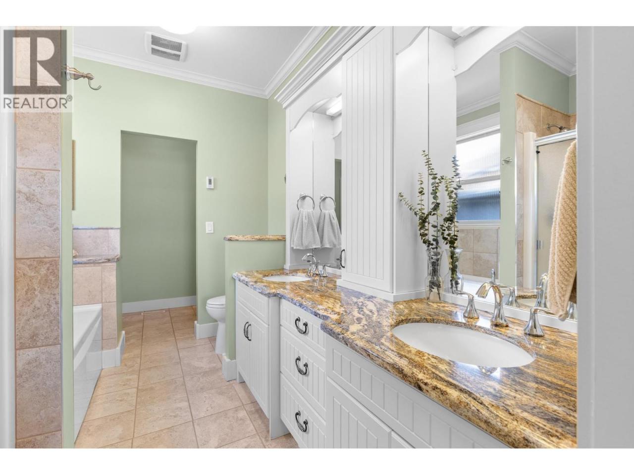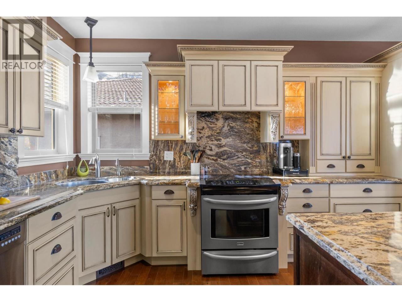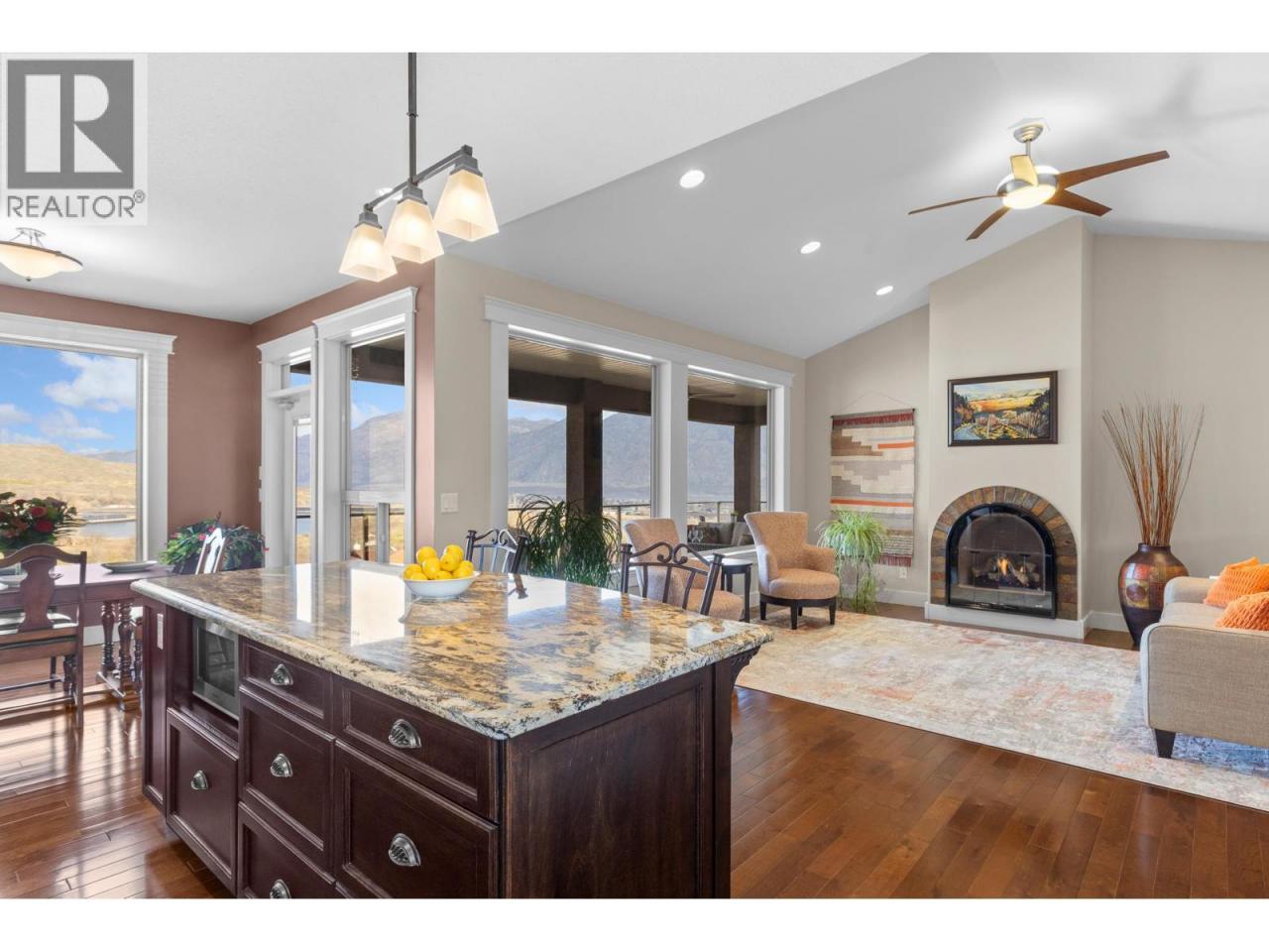 Refined Okanagan living awaits in a prestigious golf course community. This meticulously maintained primary-on-main home welcomes you with a ground-level entry, vaulted ceilings and oversized windows. Stunning lake and mountain views are beautifully showcased while the interior is flooded with natural light. Step onto the covered patio to savour unforgettable sunsets, an ideal backdrop for year-round everyday living and elegant entertaining. The lower level features a separate entrance, offering excellent suite potential or versatile living options. An oversized driveway with RV/boat parking, complemented by a 2-car garage adds exceptional convenience. Just steps from the 36-hole golf course, this home delivers a seamless blend of sophistication, comfort & the coveted Okanagan lifestyle. (id:6769)