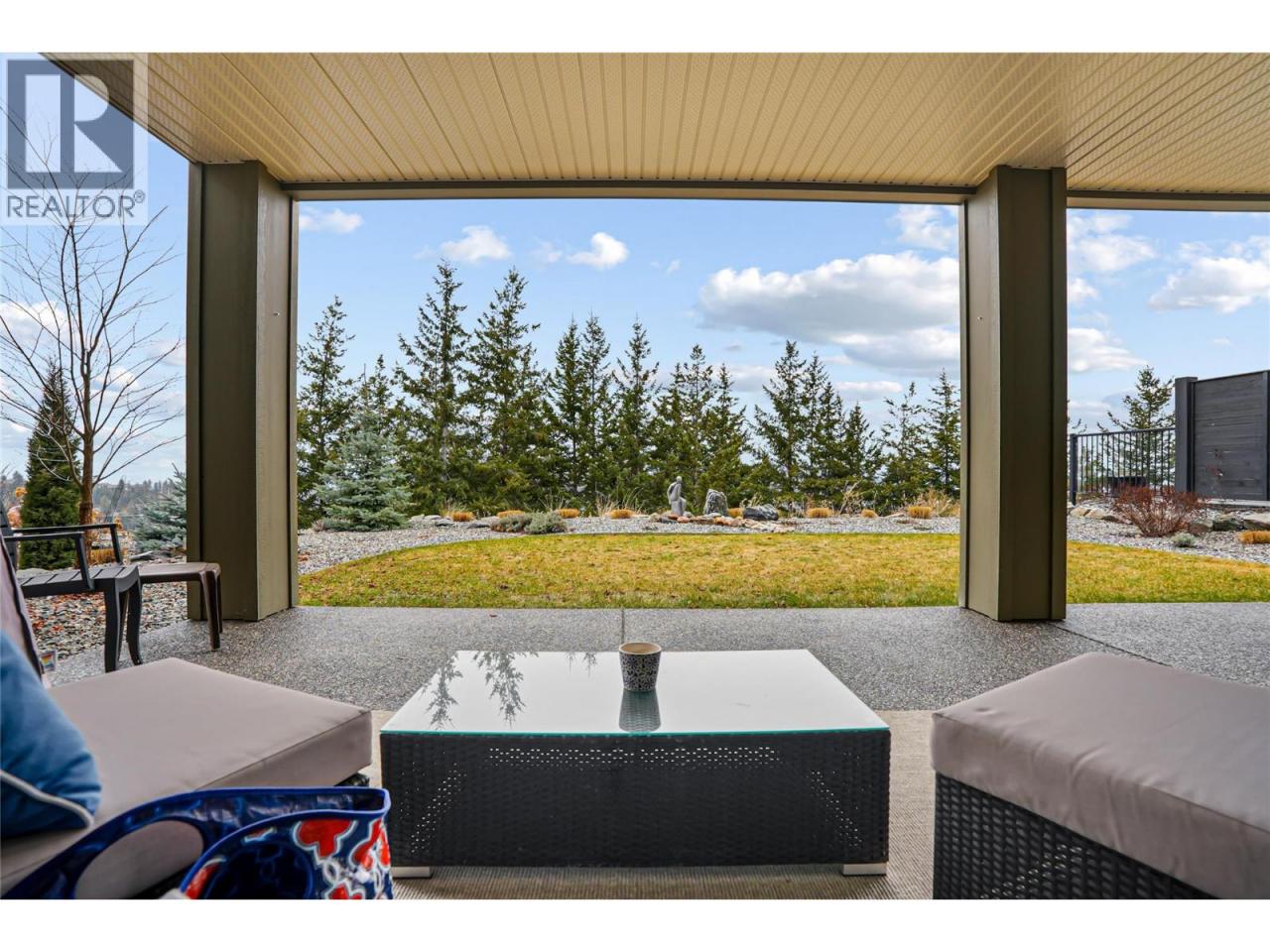 Located at the crest of Commonage, this centrally located property offers a private treed lot perfect for bird lovers with peak-a-boo views of Predator Ridge golf course and the mountains beyond. Just a short walk brings you to the heart of Predator village, enjoying nature on your doorstep every step of the way. A trailhead greets you at your front door taking you to the yoga platform, walking paths, dog park and tennis and pickleball club. Custom built in 2019, the refined and beautifully crafted details of this home ensure you enjoy a blend of modern ranch design with established resort lifestyle. A spacious living area features a vaulted ceiling offering generous natural light throughout. Relax and enjoy the spectacular panoramic views from the gorgeous main bedroom complete with spa ensuite. A cozy den, four piece bathroom, kitchen with coffee station and pantry and laundry room complete the main floor. Fully finished walk-out level is similarly appointed with two bedrooms and four piece bath, family room, plus a completely finished room suitable for use as another bedroom or as flex space. The poured-aggregate lower patio boasts a large grassed and beautifully landscaped private garden. Embrace the Predator Ridge year-round community, offering fabulous amenities and two of Canada’s finest golf courses. Amenities include state of the art fitness centre, pool, hot tub and steam rooms, yoga studio, outdoor yoga platforms, biking, hiking, five tennis courts, and pickleball courts and much more! (id:6769)