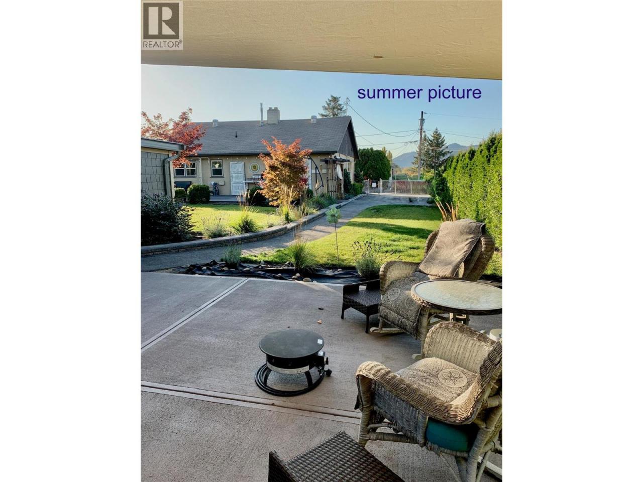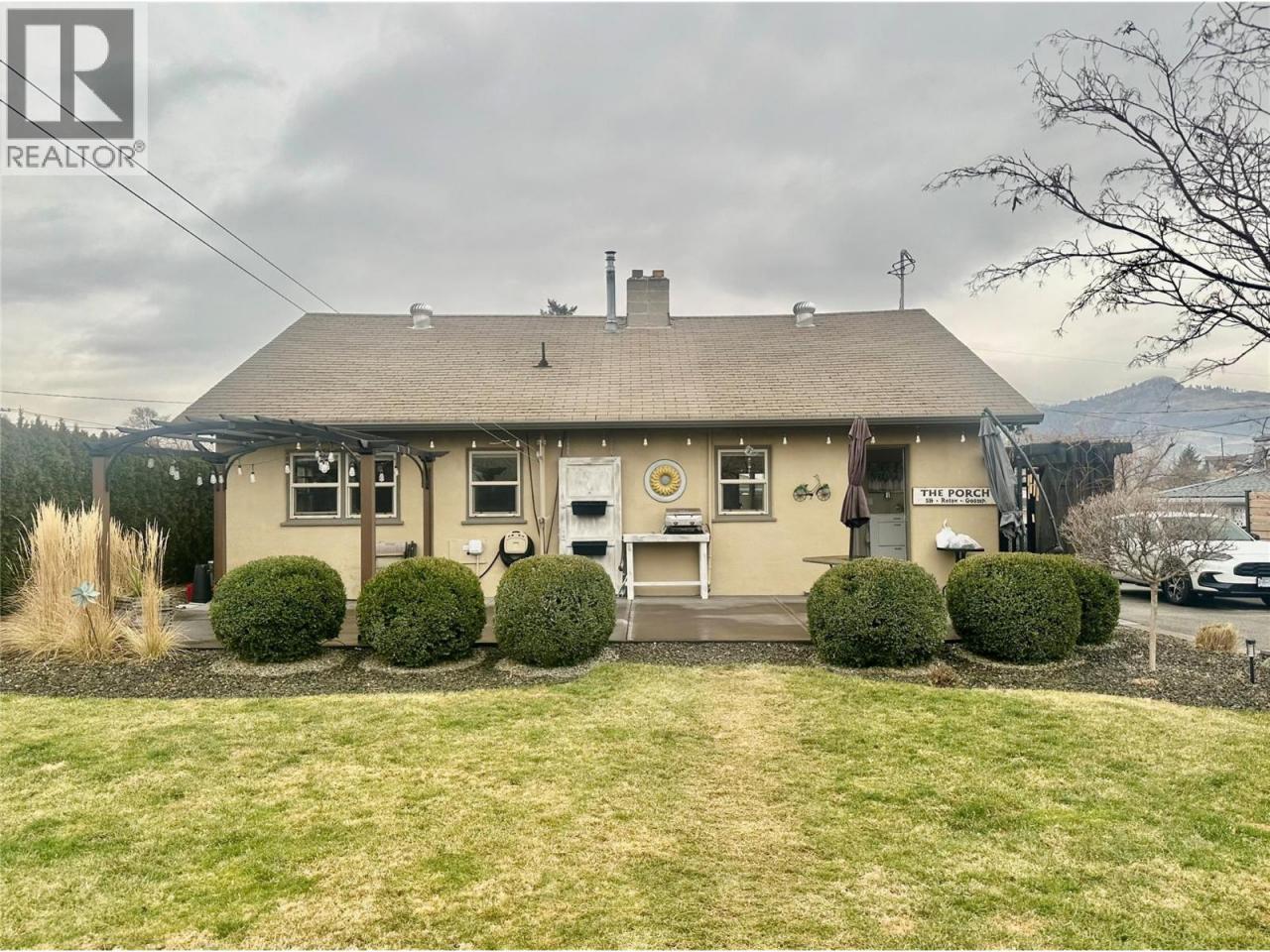 This beautifully renovated 1206 sqft rancher sits on a generous 0.21-acre lot on a quiet lane offering the ideal Okanagan lifestyle just a short walk from the beach, restaurants, pub, shopping and town events. The appealing 2-bedroom, 2-bathroom home with 8.5' ceilings, masterfully combined sleek modern aesthetics with timeless traditional appeal, creating a warm and inviting space. Step outside to enjoy not one, but two private patios—perfect for relaxing, entertaining, soaking in the sunshine or relax under the huge custom shade sail to enjoy laid-back vibes of the region. A standout feature is the impressive 702 sq ft secondary building, was professionally renovated in 2020 and includes a 2-piece 6x7 bathroom plus a kitchenette. This versatile space is ideal as a guest house, in-law suite, home-based business setup, creative studio, add a shower for rental or potential BnB. The fully landscaped fenced yard features a newly installed in 2020 water smart drip irrigation throughout the property, with ample parking, and dedicated RV parking complete with 30 amp power, sani dump and year round water hookup. Major mechanical updates of the main home were completed in July 2017, including a new gas furnace, central AC, hot water tank, and water softener, ensuring comfort and efficiency. Additional improvements fresh flooring throughout, updated bathrooms, windows and doors and stylish custom blinds. Measurements are approximate and should be verified by buyer if deemed important. (id:6769)