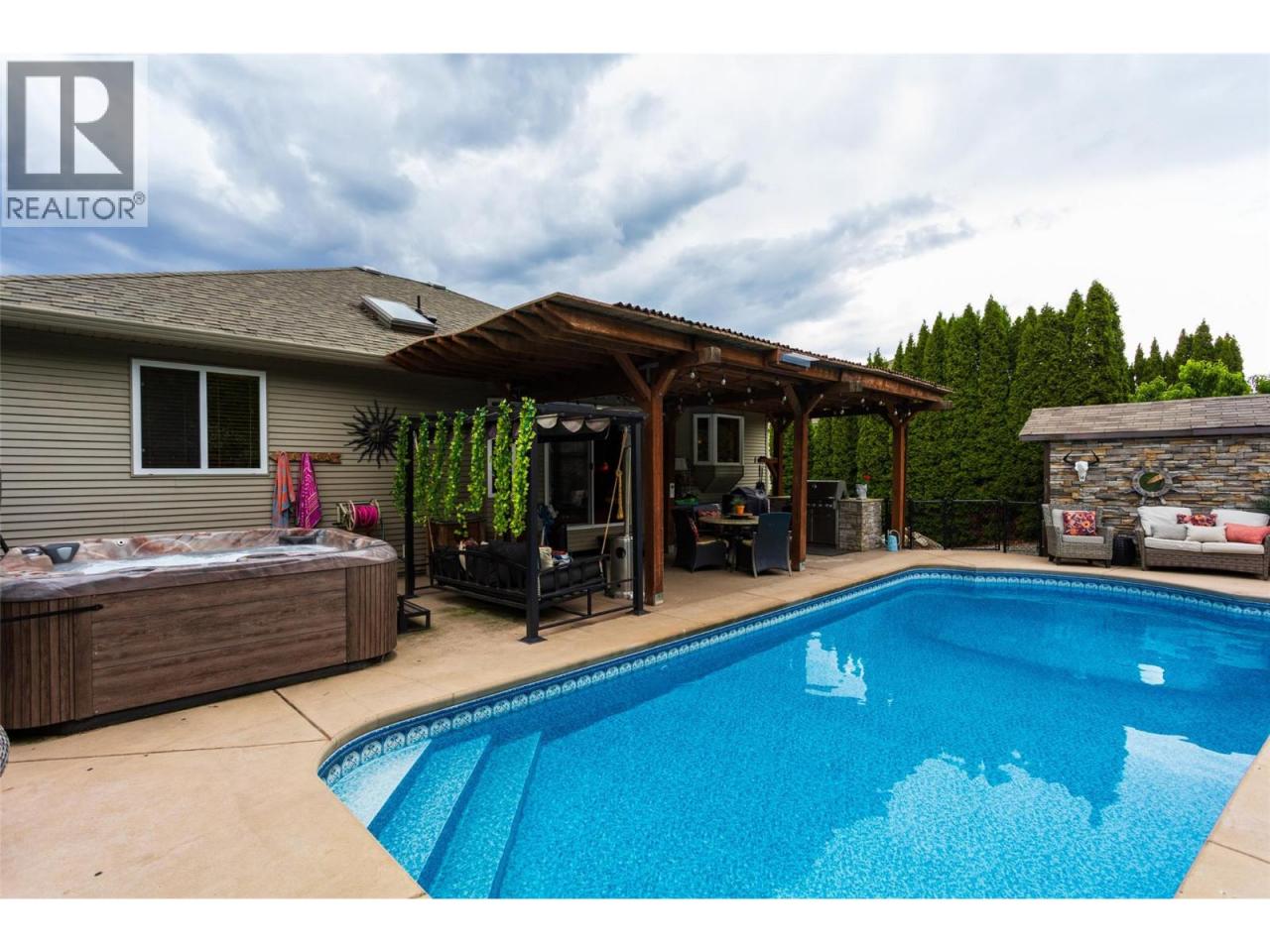 Welcome to 2838 Salish Road in Smith Creek — a beautifully appointed 5-bedroom, 3-bathroom family home that captures the essence of Okanagan living. Enjoy stunning lake, vineyard, and orchard views from this thoughtfully designed residence offering both comfort and style. The main floor features an open-concept layout with a spacious kitchen, ideal for everyday living and entertaining. The inviting living room with a gas fireplace opens to a generous deck where you can relax and take in the expansive valley and lake vistas. From the kitchen, sliding doors lead to a private backyard retreat with a newer in-ground heated pool (pool heater replaced in 2024)—perfect for summer gatherings and outdoor enjoyment. The primary suite provides a peaceful escape with a walk-in closet and a well-appointed en-suite. Two additional bedrooms on the main level offer flexibility for family or guests. The lower level includes two more bedrooms, a full bath, and a spacious recreation room, ideal for a home theatre, gym, or play area. With breathtaking views, a private pool, and a versatile floor plan, this home is perfectly suited for modern family living. Experience the best of the Okanagan lifestyle in this exceptional property. For a virtual tour, view the iGuide walkthrough or contact us today to schedule your private showing. (id:6769)